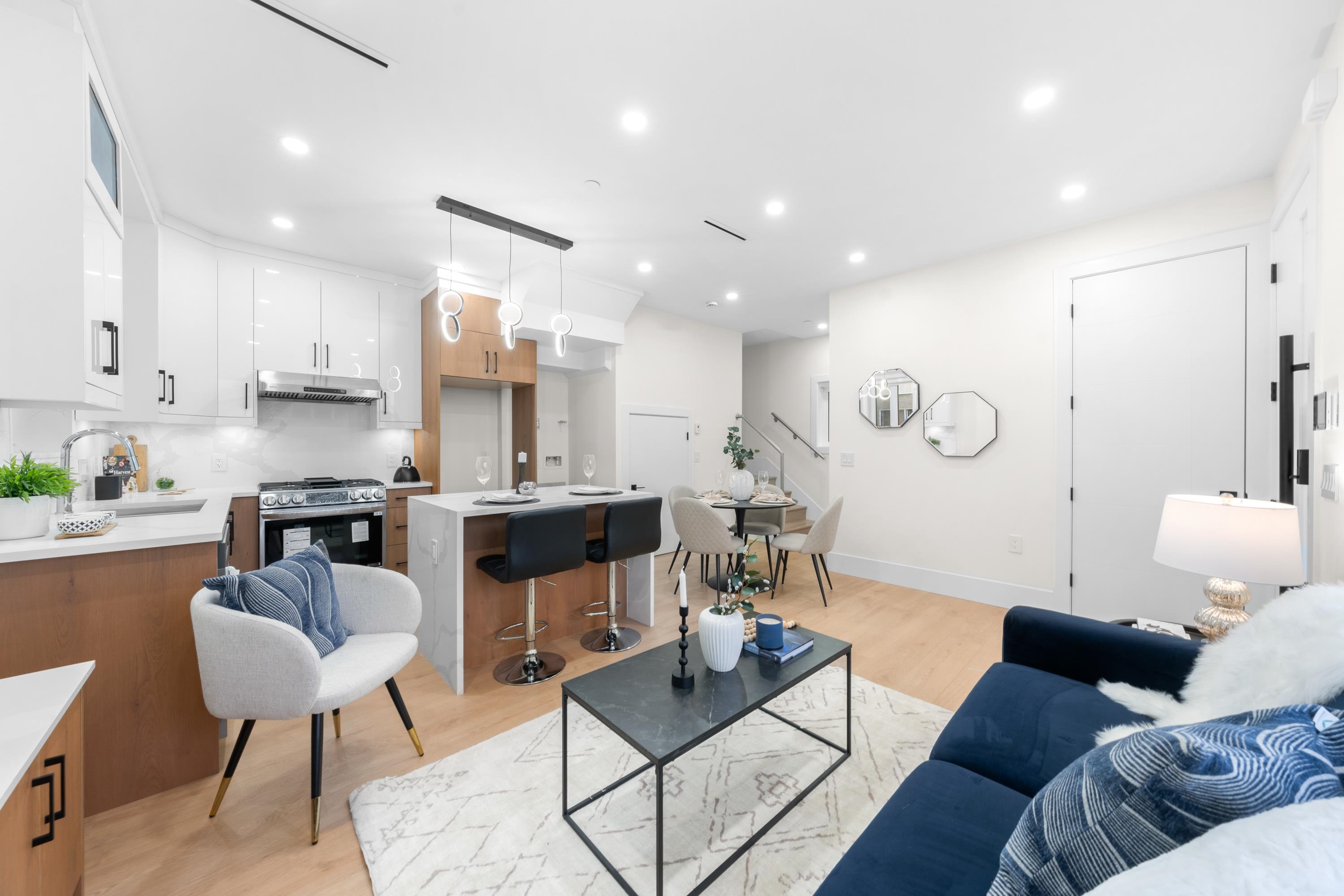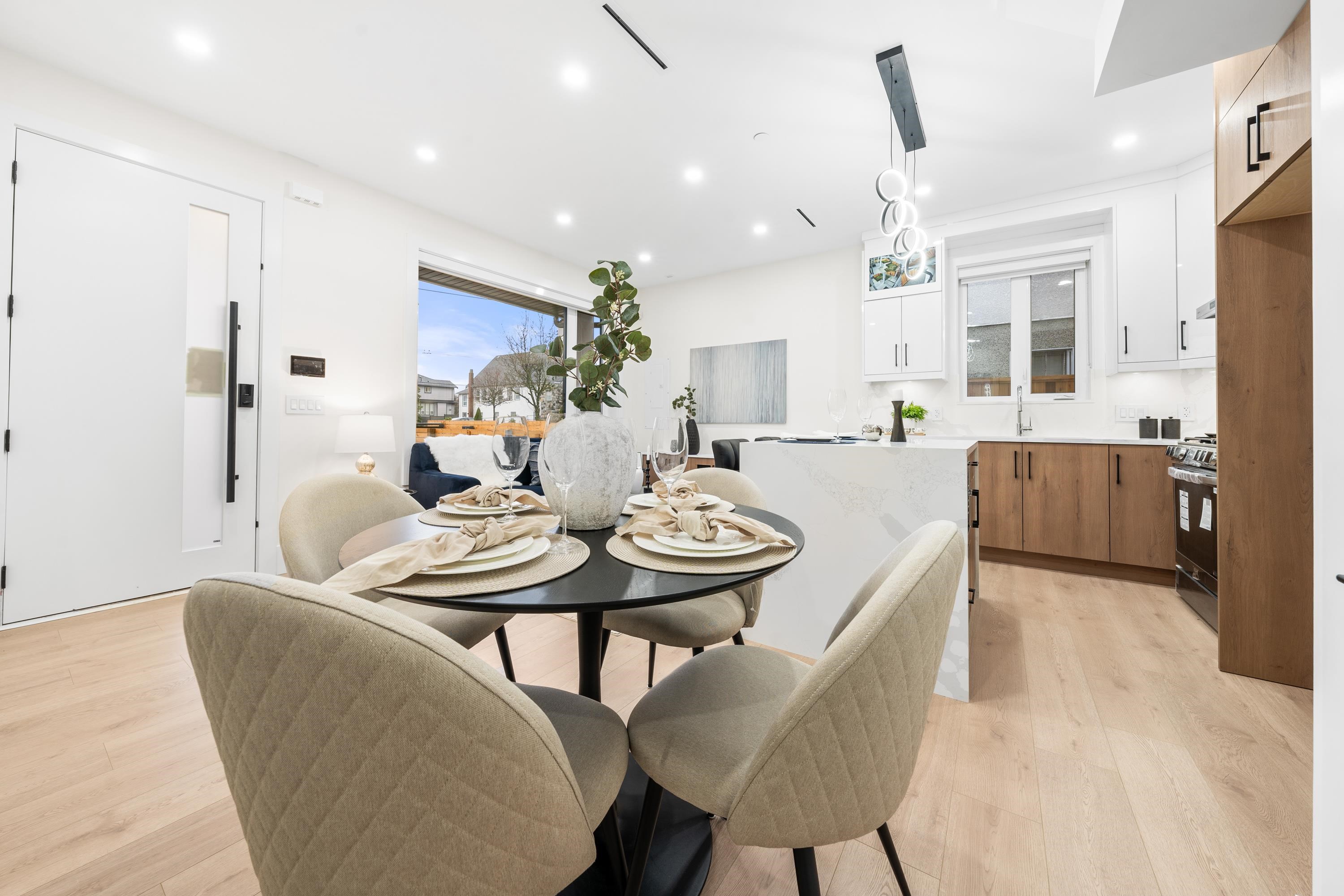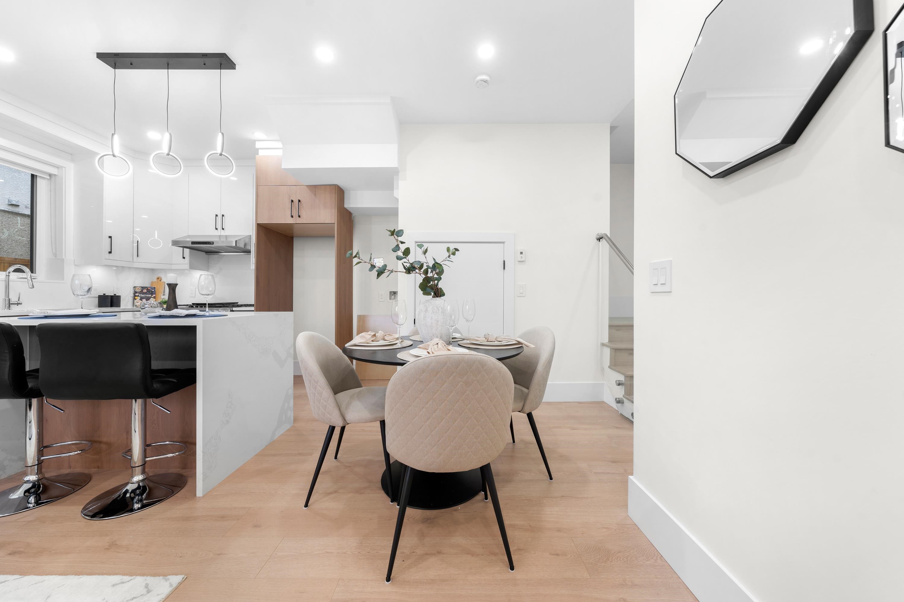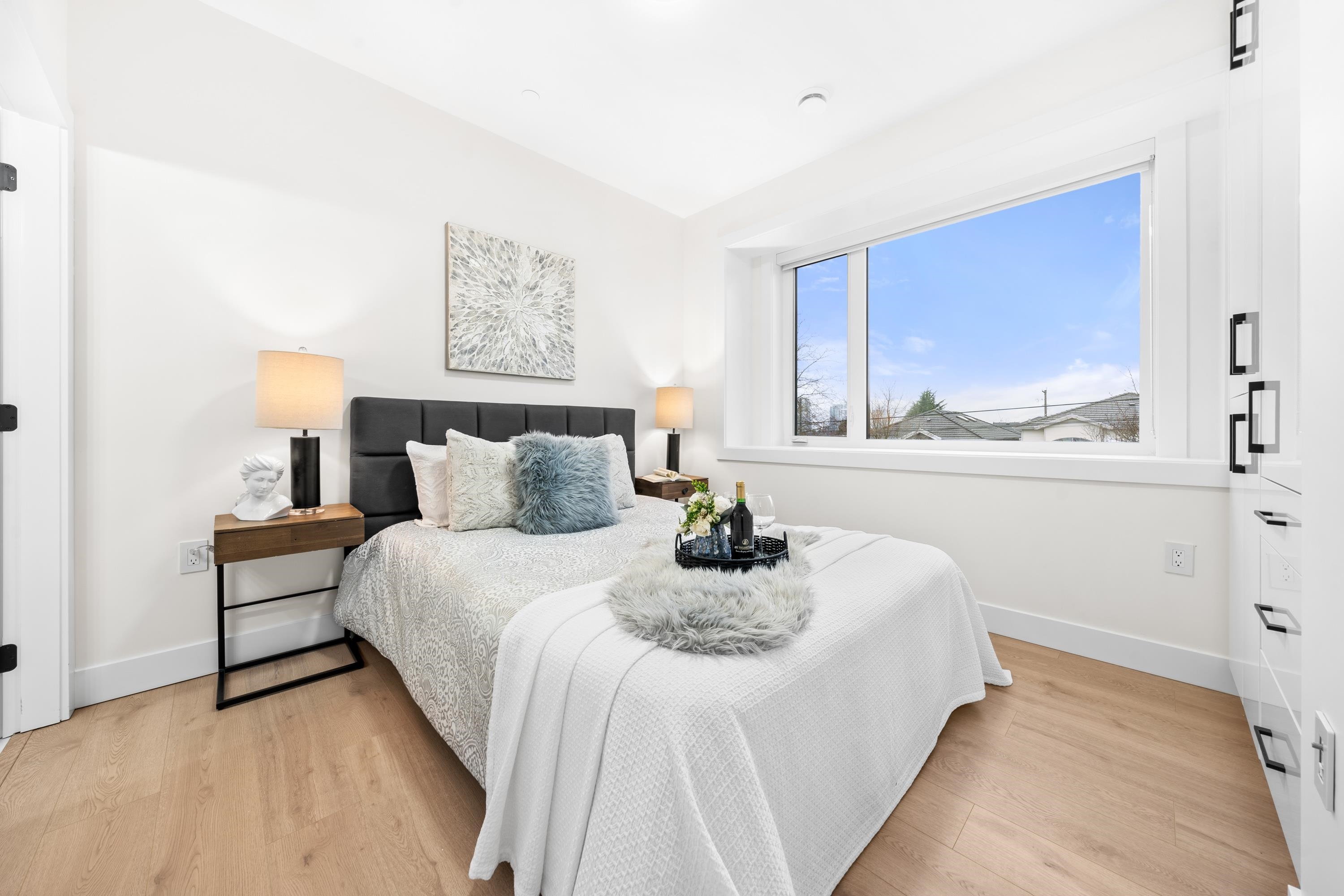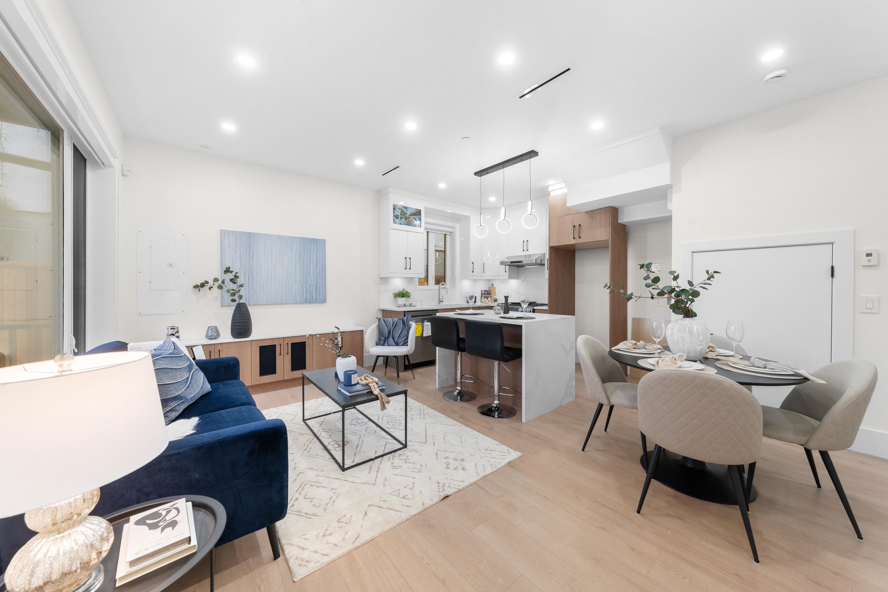 This brand-new Front duplex in South Vancouver offers a perfect blend of modern design and convenience. The upper floor features three bright and spacious bedrooms, including a master suite with a private ensuite bathroom. On the main floor, the open-concept layout showcases a large living area, dining space, and a gourmet kitchen equipped with sleek stainless steel appliances—ideal for both daily living and entertaining. A convenient powder room adds to the functionality of the main floor. Situated in a prime location on Main Street, this home is within walking distance to shopping, schools, and transit. Additionally, it boasts a spacious two-car garage, providing ample parking and extra storage space.