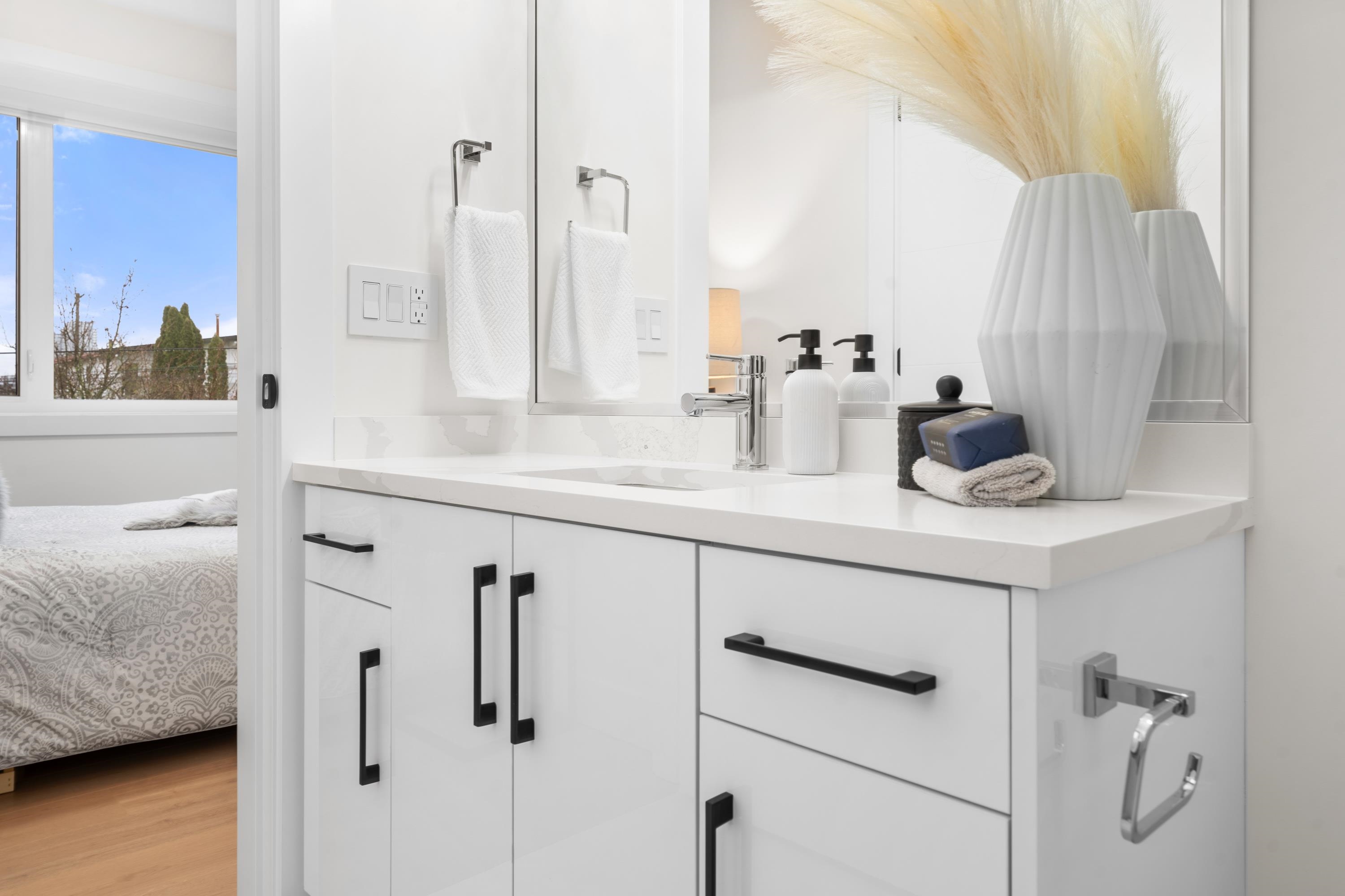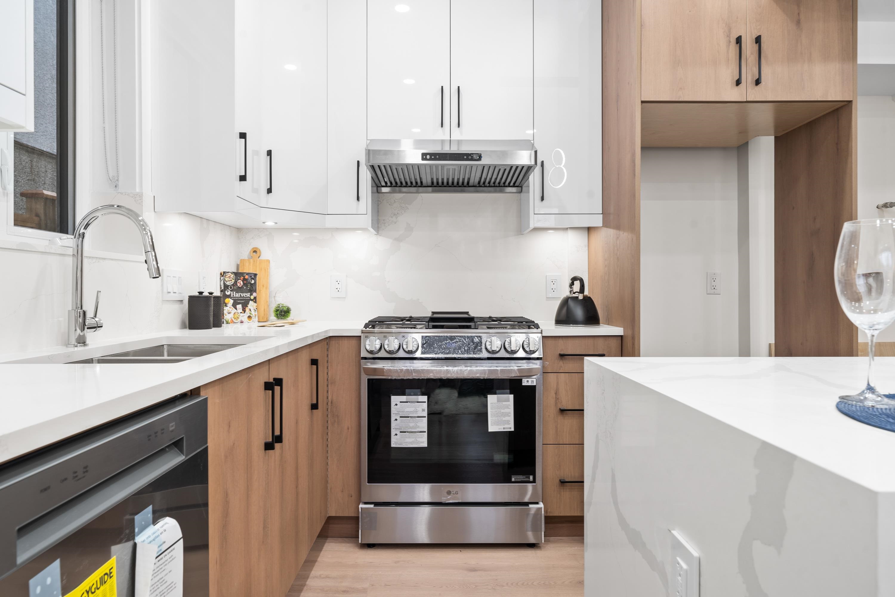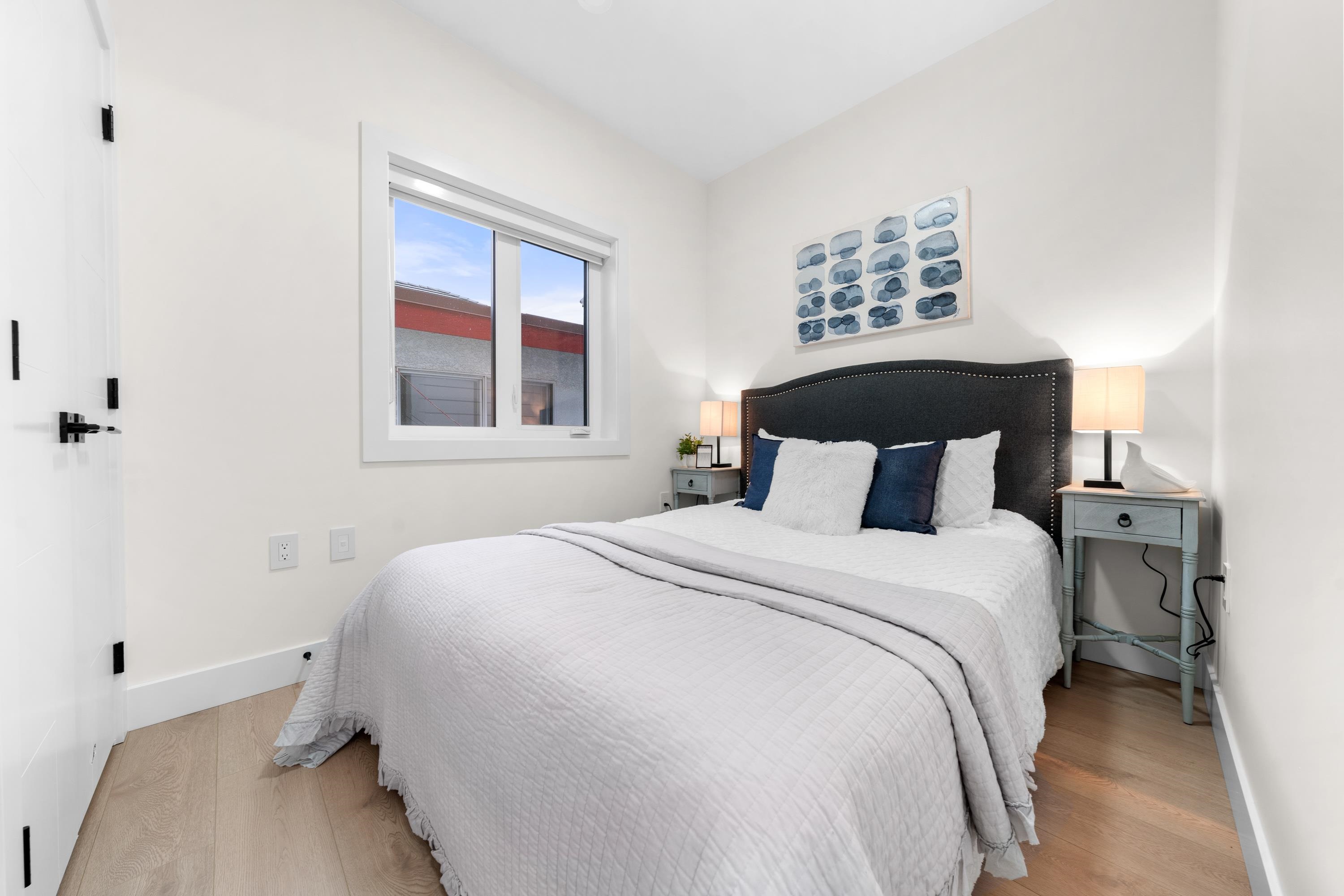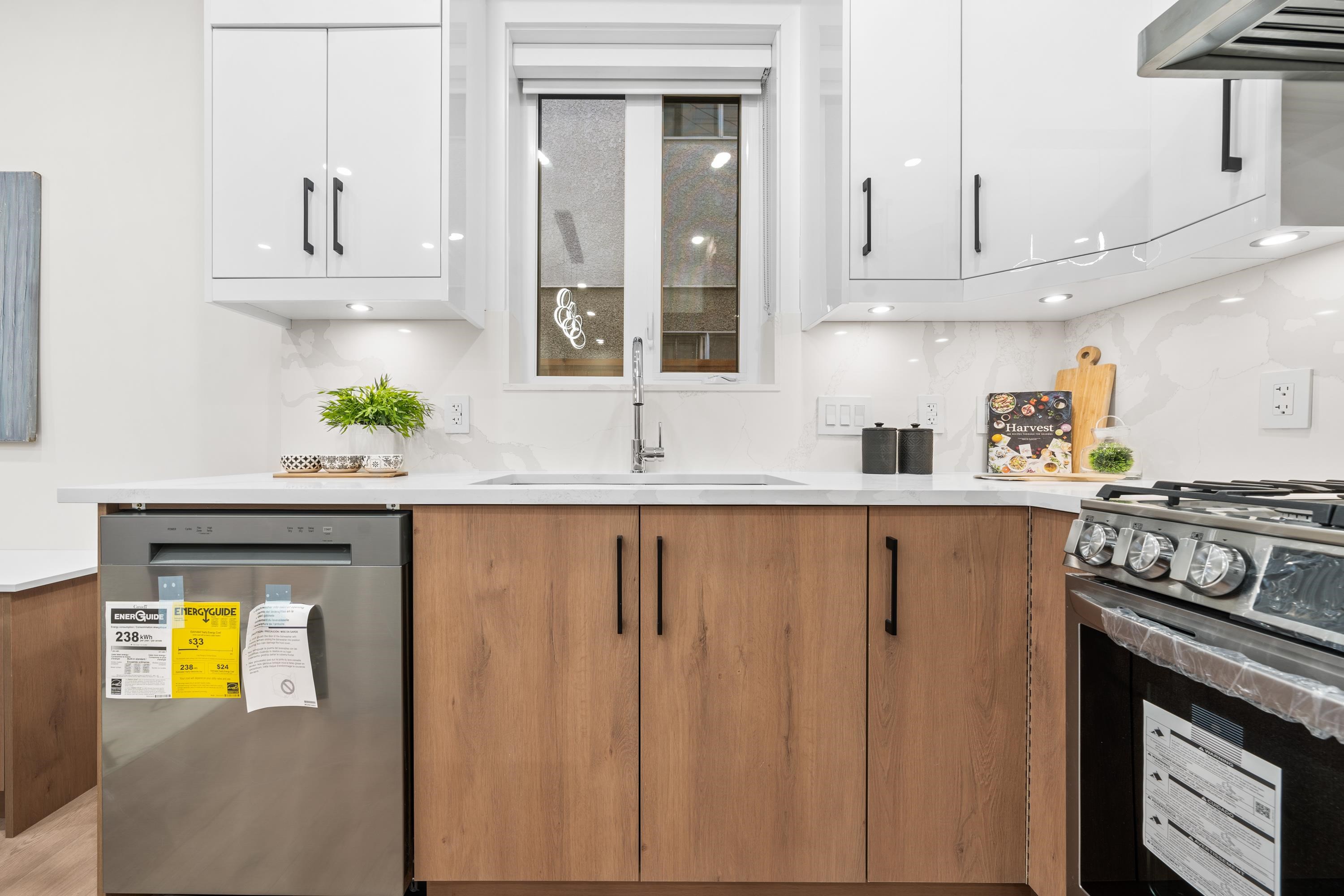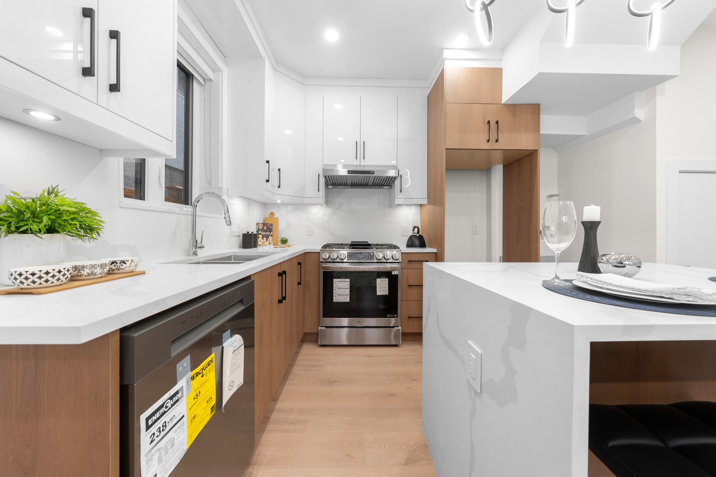 This brand-new Front duplex in South Vancouver offers a perfect blend of modern design and convenience. The upper floor features three bright and spacious bedrooms, including a master suite with a private ensuite bathroom. On the main floor, the open-concept layout showcases a large living area, dining space, and a gourmet kitchen equipped with sleek stainless steel appliances—ideal for both daily living and entertaining. A convenient powder room adds to the functionality of the main floor. Situated in a prime location on Main Street, this home is within walking distance to shopping, schools, and transit. Additionally, it boasts a spacious two-car garage, providing ample parking and extra storage space.