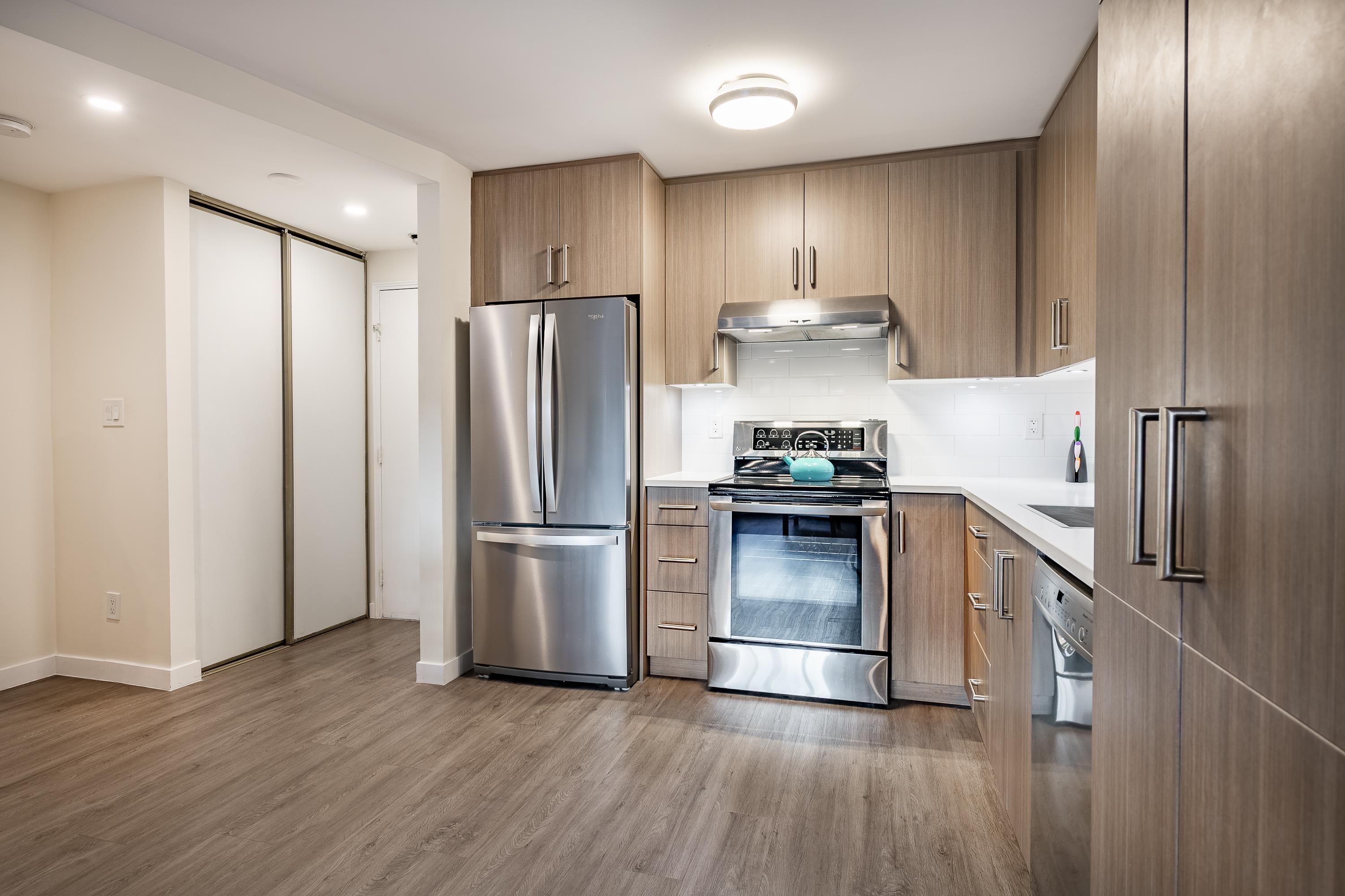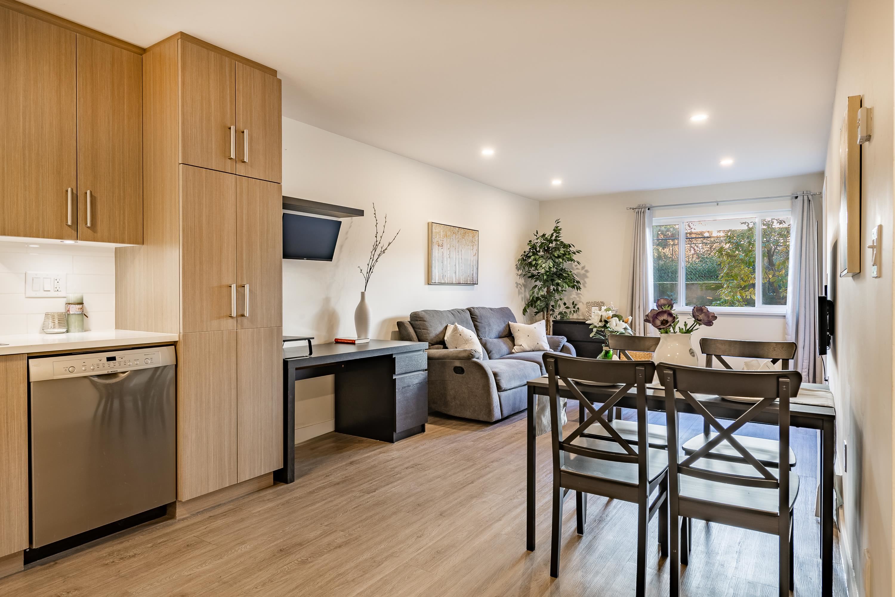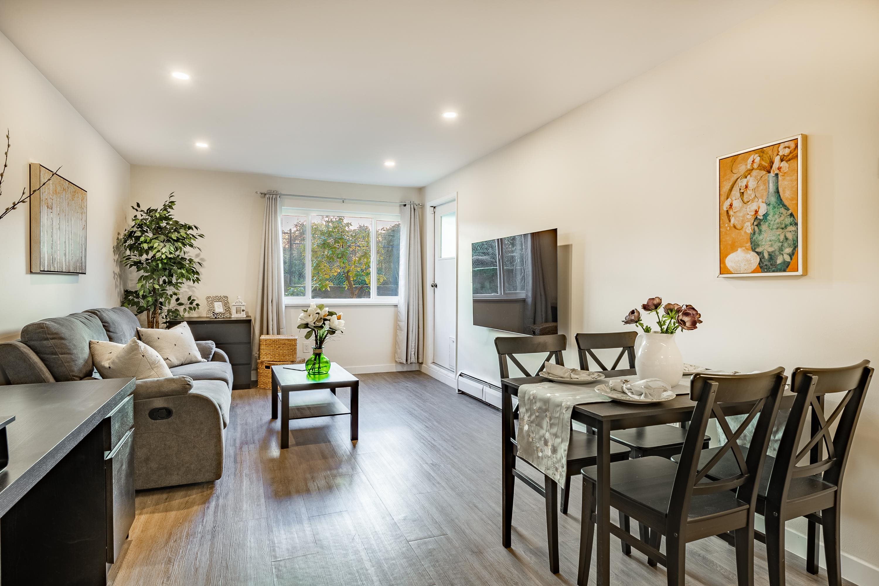 This beautifully updated ground-level unit offers modern living in a convenient and quiet location. Low maintenance fee with heating and hot water included! 2 Parking spots! Fully renovated and well-maintained, it opens to a serene common grass area, perfect for your furry friend to play or hosting BBQ gatherings. It features newer, LIKE NEW stainless steel appliances, quartz countertops, sleek new cabinets, stylish laminate flooring, and updated lighting fixtures throughout. Located in the heart of Coquitlam, just steps away from schools, shops, and parks. The building itself has been updated with newer vinyl siding, windows, the elevator, the roof, and plumb in 2010. Don't miss this one!