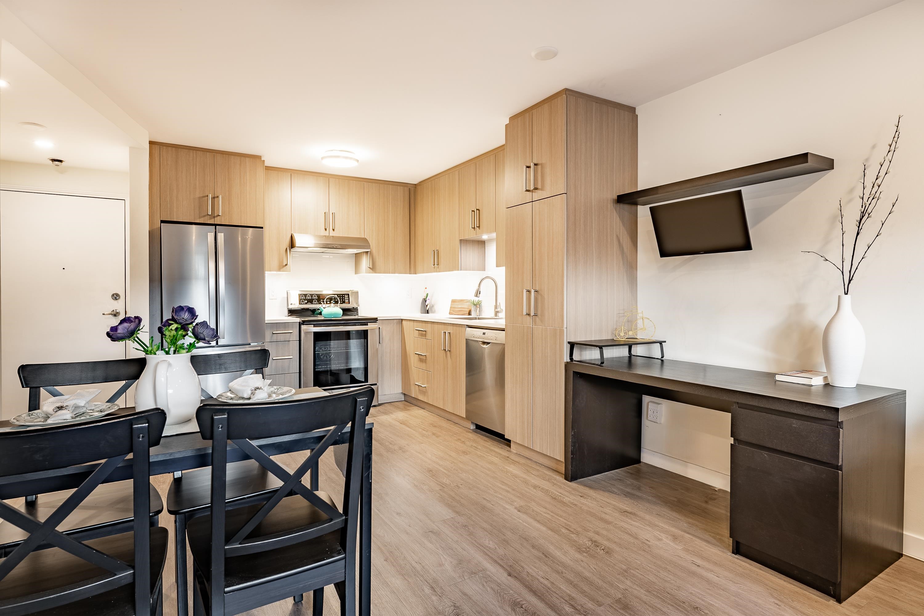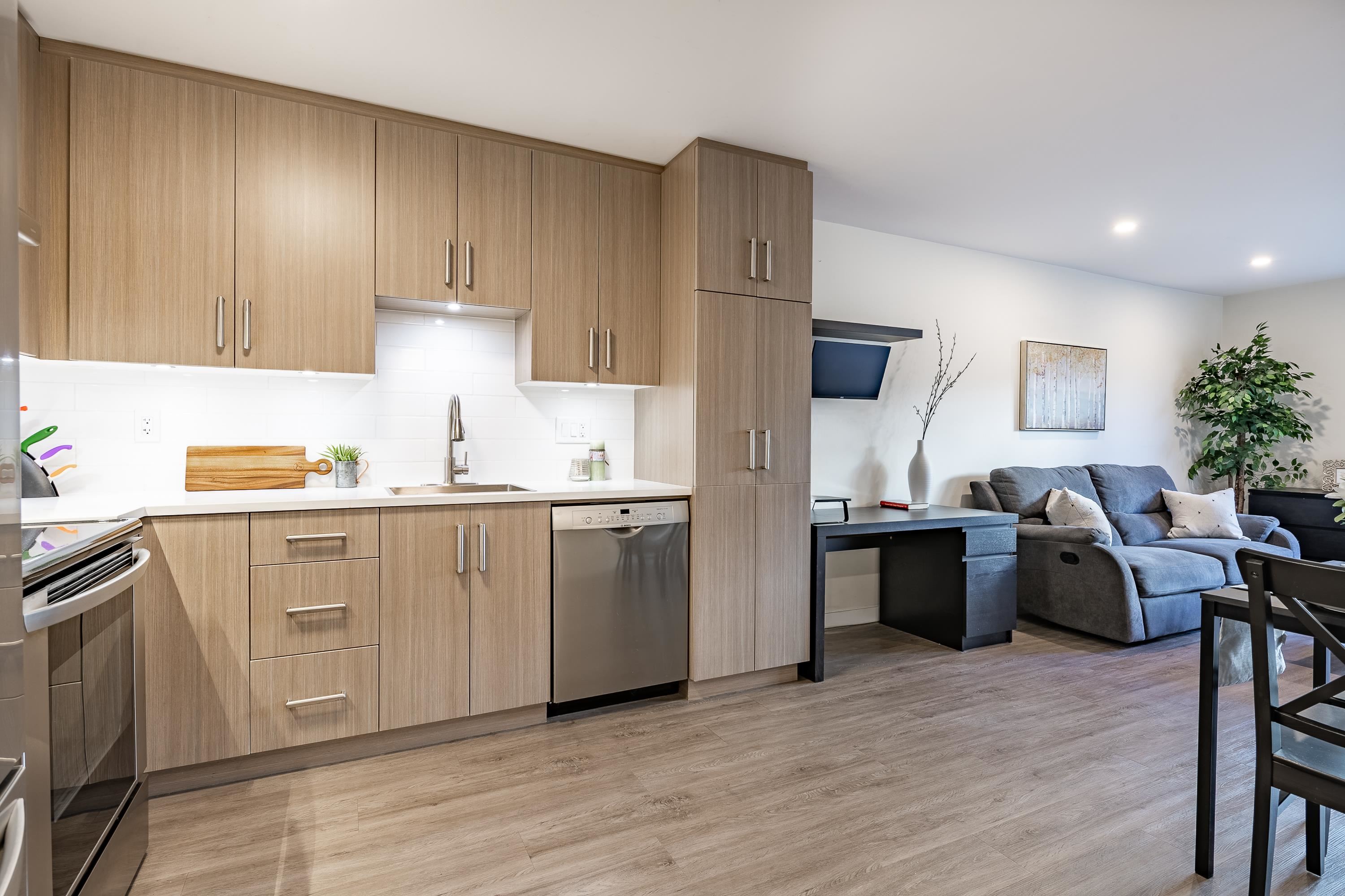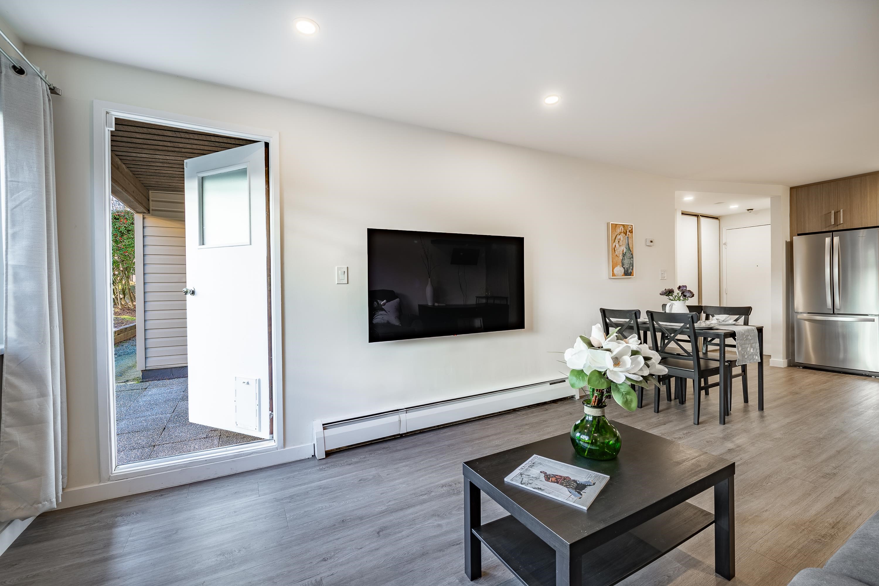 This beautifully updated ground-level unit offers modern living in a convenient and quiet location. Low maintenance fee with heating and hot water included! 2 Parking spots! Fully renovated and well-maintained, it opens to a serene common grass area, perfect for your furry friend to play or hosting BBQ gatherings. It features newer, LIKE NEW stainless steel appliances, quartz countertops, sleek new cabinets, stylish laminate flooring, and updated lighting fixtures throughout. Located in the heart of Coquitlam, just steps away from schools, shops, and parks. The building itself has been updated with newer vinyl siding, windows, the elevator, the roof, and plumb in 2010. Don't miss this one!