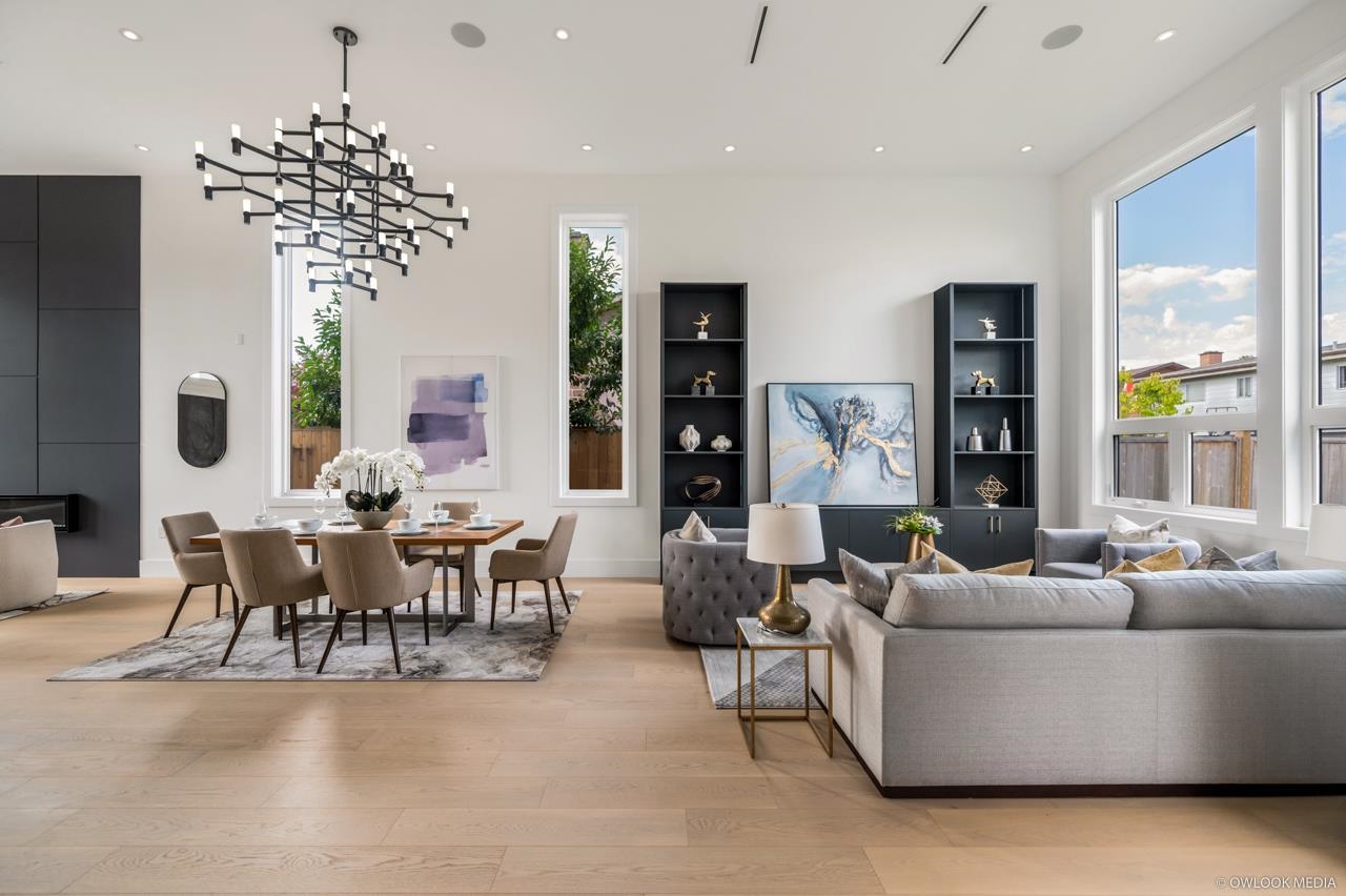 Built by a highly reputable local builder to exceptional standards, this custom-built luxury home is a one-of-a-kind gem in Richmond's McNair neighborhood. Featuring 5 bedrooms and 6 bathrooms, the property offers stunning northern mountain views. The home is equipped with top-tier amenities, including an air conditioning system, central smart audio system, premium Miele appliances, natural stone finishes, and high-quality European windows. Conveniently located just steps away from child care, schools, parks, the Skytrain, shopping, and a golf course & club, this is the perfect place to raise a family.