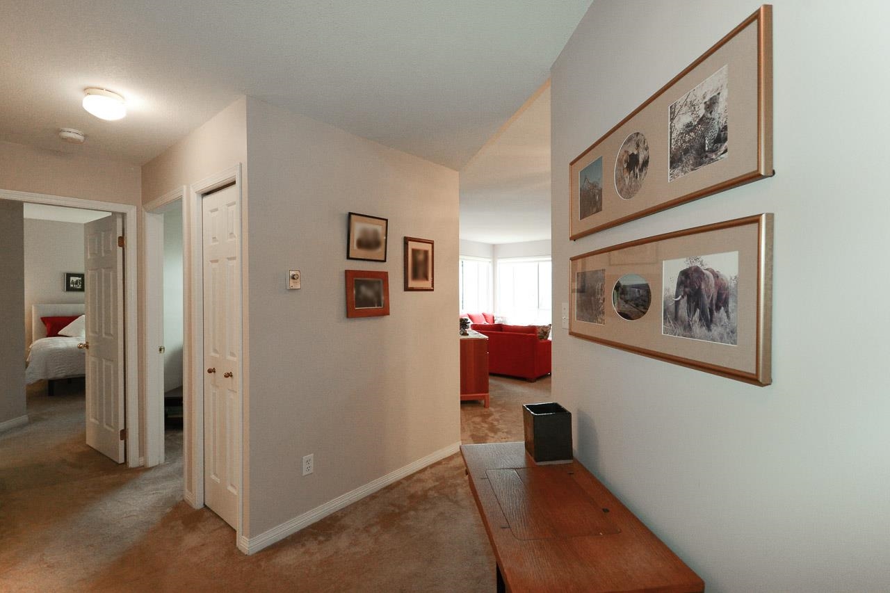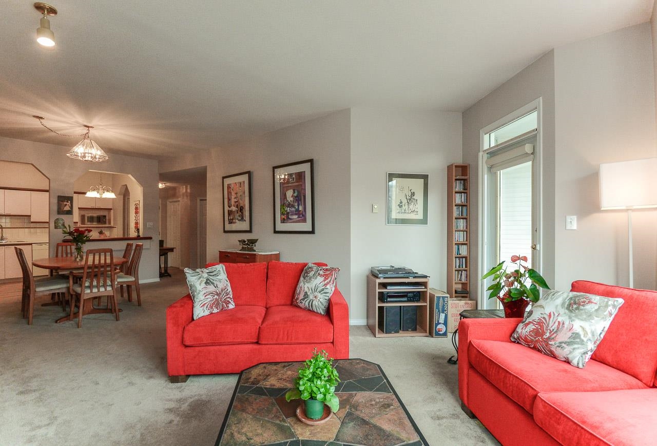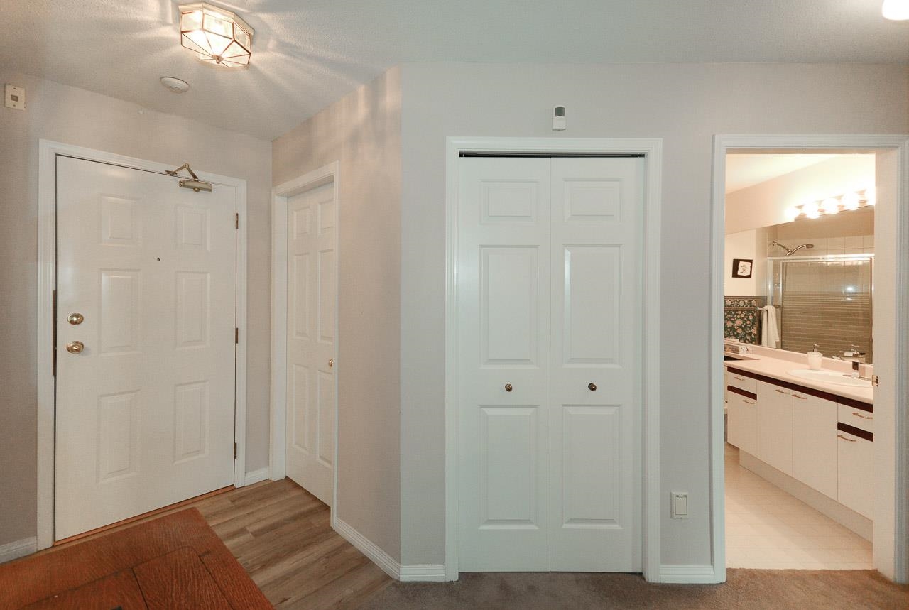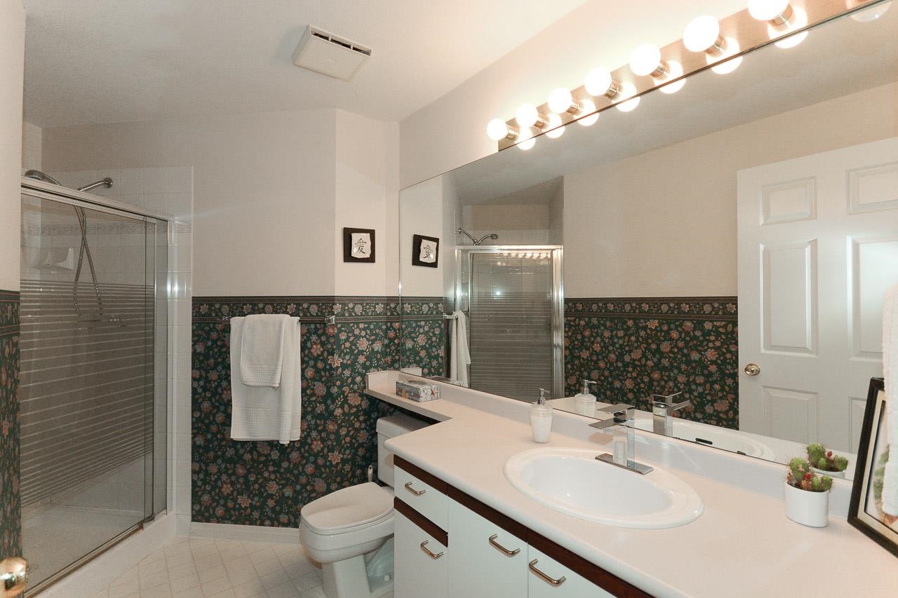 Beautiful home in prestigious WINDGATE ROYALE! 2 bdr/2 baths featuring approx. 1,280 sq. ft. of living area, lots of huge windows and 9' ceiling throughout. Rare to the market and must be personally viewed to be fully appreciated. Generous master bedroom includes a sitting area which is ideal for your office/computer desk. Excellent home for "house-size" furniture! Brand new washer/dryer/dishwasher, newer carpet and kitchen flooring, warm colour paint.Both living room and master bedroom doors leading to a private North facing balcony (above the ground!) with lots of natural light and overlooking beautiful trees. It comes with 1 parking stall and a locker. Choice Home in Prime Location! Only steps to Garden City Mall, all levels of schools and transit. Open House March 8 & March 9, 2-4pm.