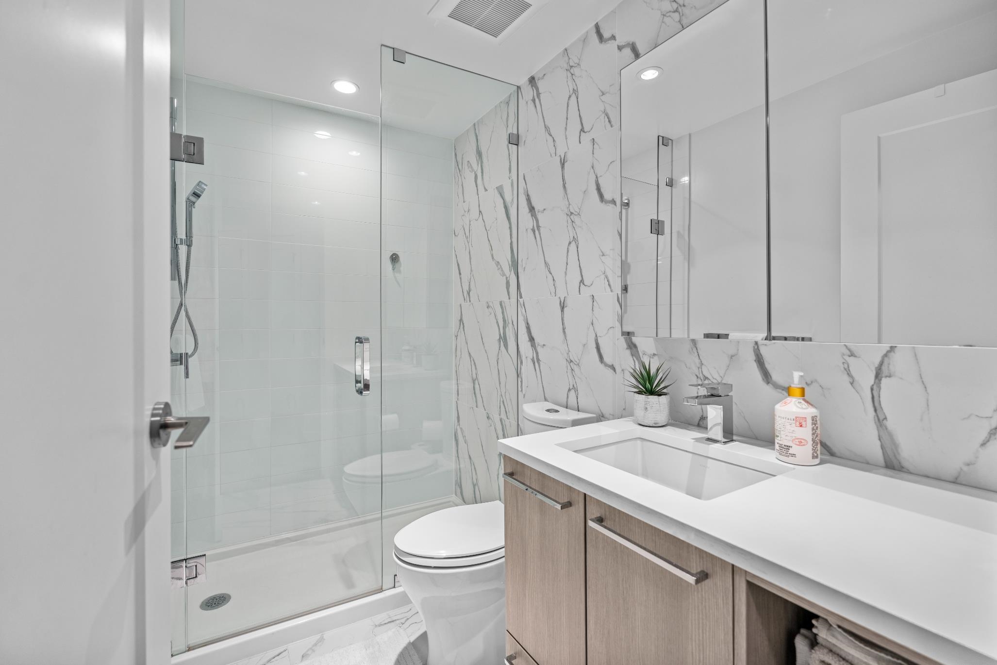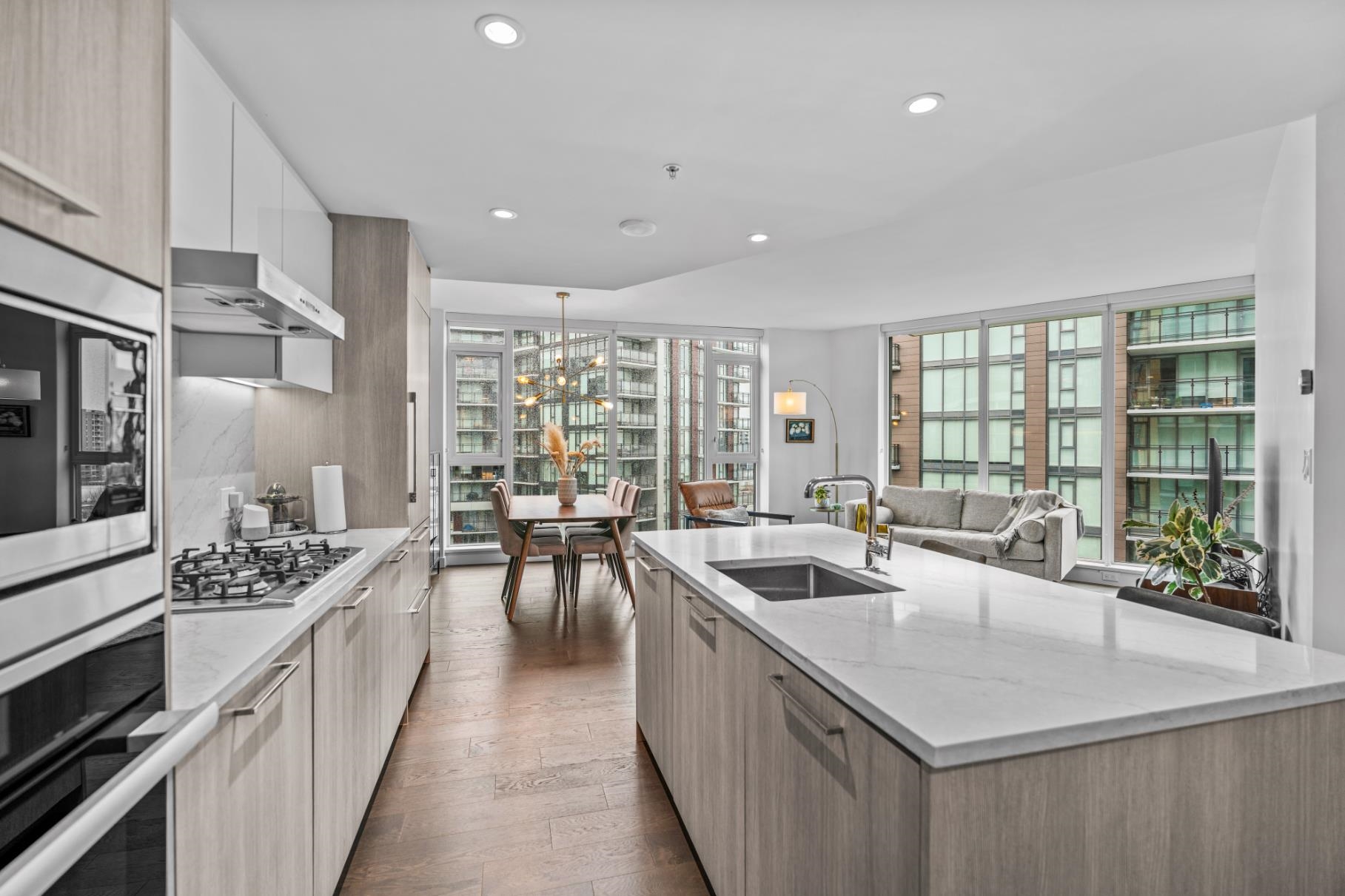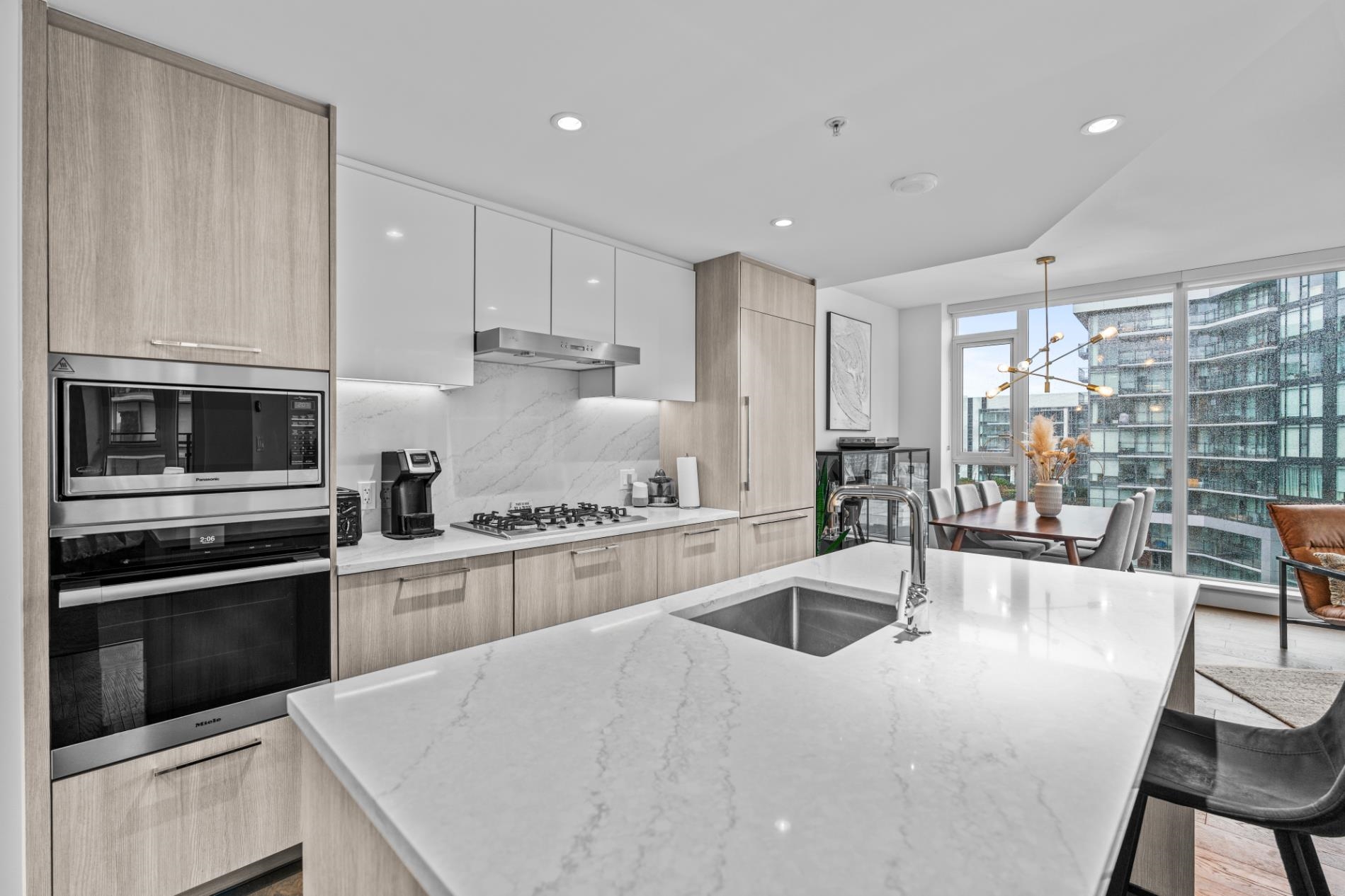 Welcome to your GST-FREE waterfront home in the prestigious Viewstar community. This modern 3 year old BRIGHT CORNER UNIT offers a GORGEOUS WATER VIEW that blends style with functionality . Featuring an open-concept layout , the unit includes 2 generously sized bedrooms and 2 refined bathrooms . The spacious living area is enhanced by engineered flooring and efficient air conditioning for year-round comfort . The gourmet kitchen is outfitted with a high-end Miele appliance package, perfect for culinary enthusiasts . Additional benefits include ample storage and a dedicated EV PARKING STALL. Live like you are on a permanent vacation with luxurious amenities: indoor pool, fitness centre, entertainment room, roof garden and more! OPEN: SAT& SUN MARCH 8-9TH 2:30-4:00PM. All Welcome!