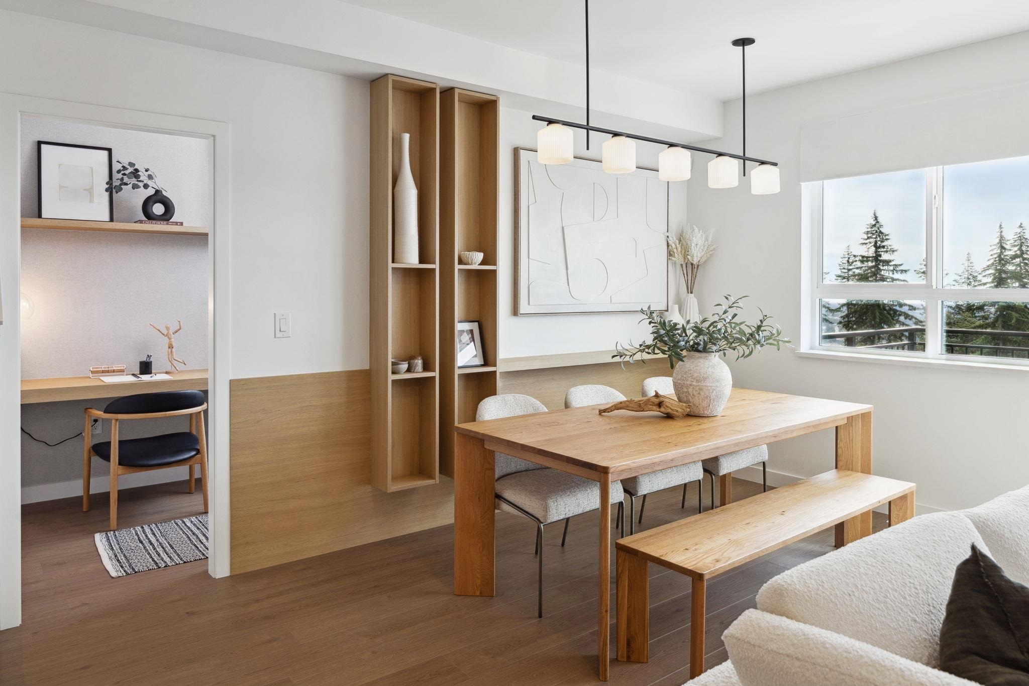 Heartwood, a community by StreetSide Developments - At the heart of it all lies good design. Featuring large open floorplans, ample cupboard space, and elegantly designed wood grain cabinet accents - families can live comfortably and host effortlessly. This A plan offers 3 bedrooms + flex and a rooftop deck, access to your backyard patio from the main level and southwest facing balcony off your dining area and a rooftop deck with views! The rooftop deck allows you to soak in the natural beauty of Burke Mountain. With an open and versatile layout, the A plan combines comfort, style and functionality - making it an ideal choice for those who want both relaxation and room to entertain. Our Sales Center is located at 3522 Harper Road, open Sat thru Wed 12-5pm. New Year Incentives on now!