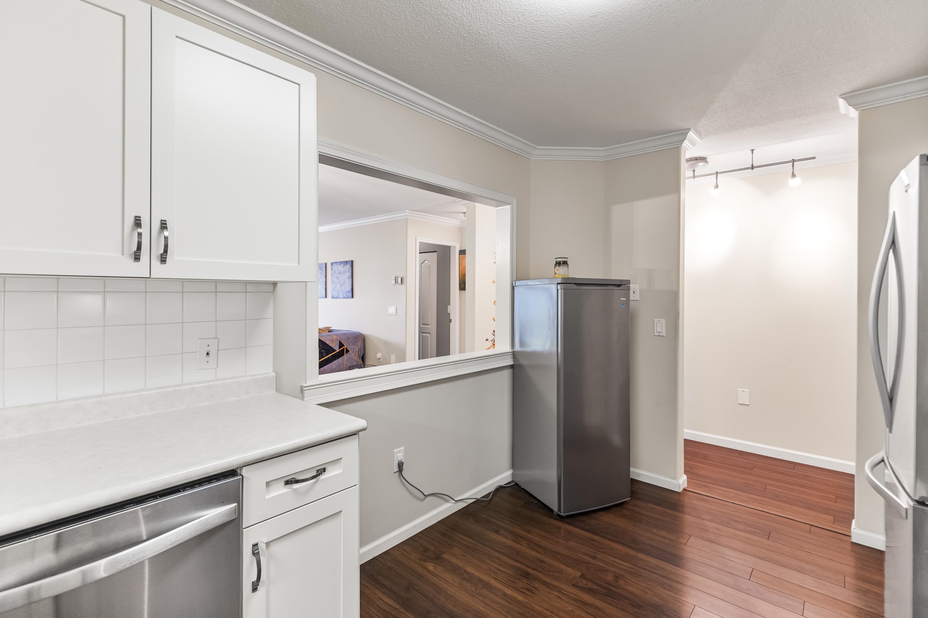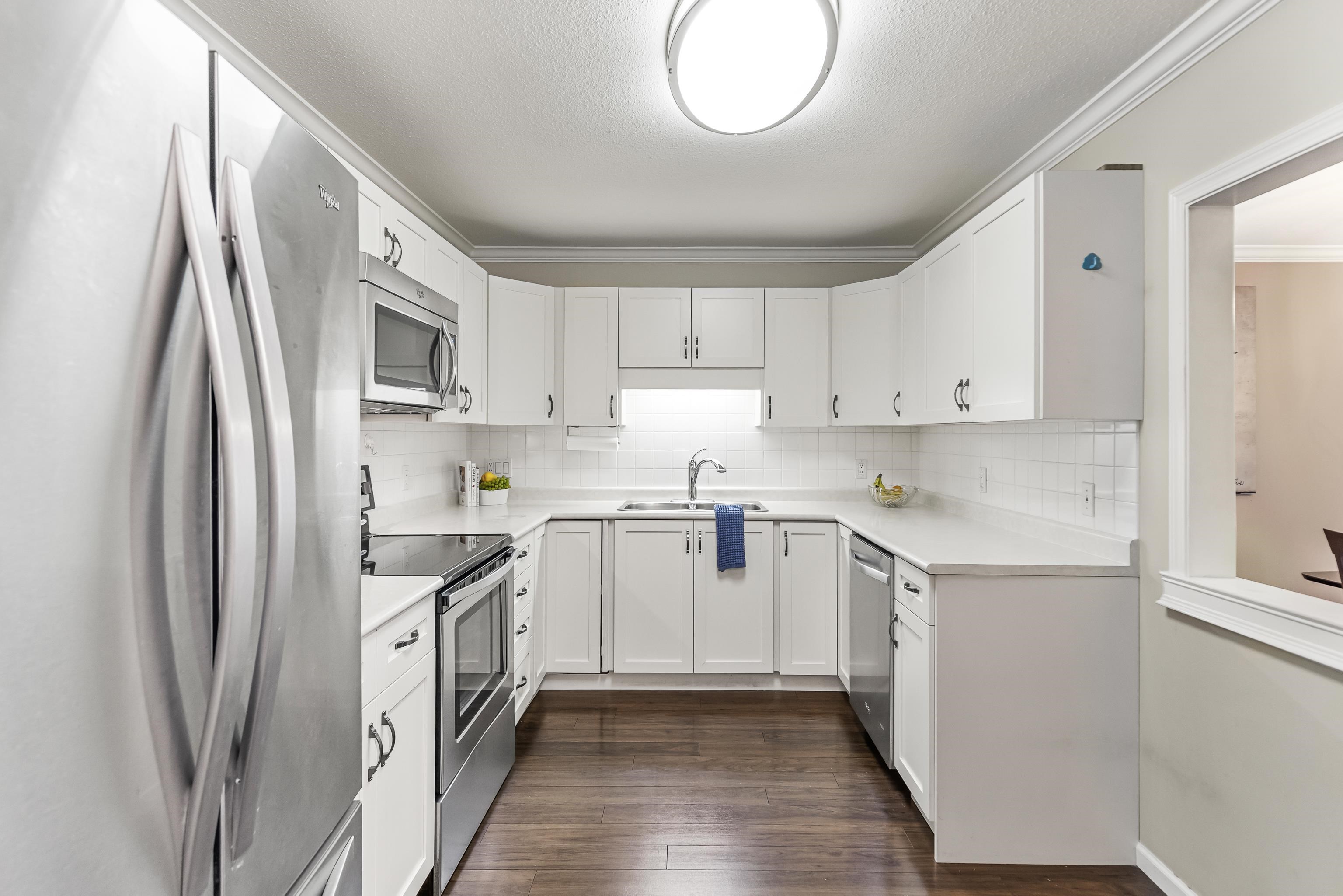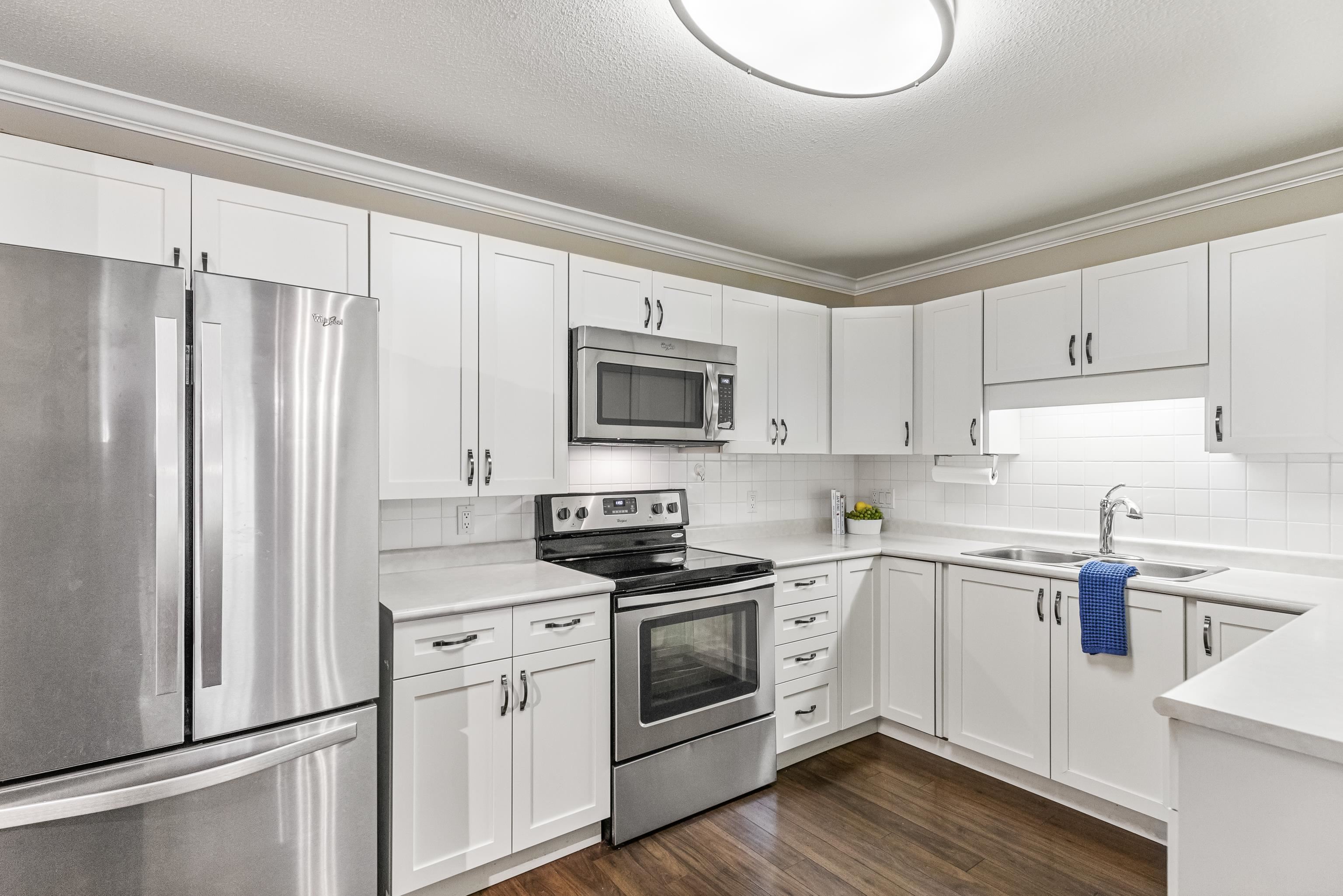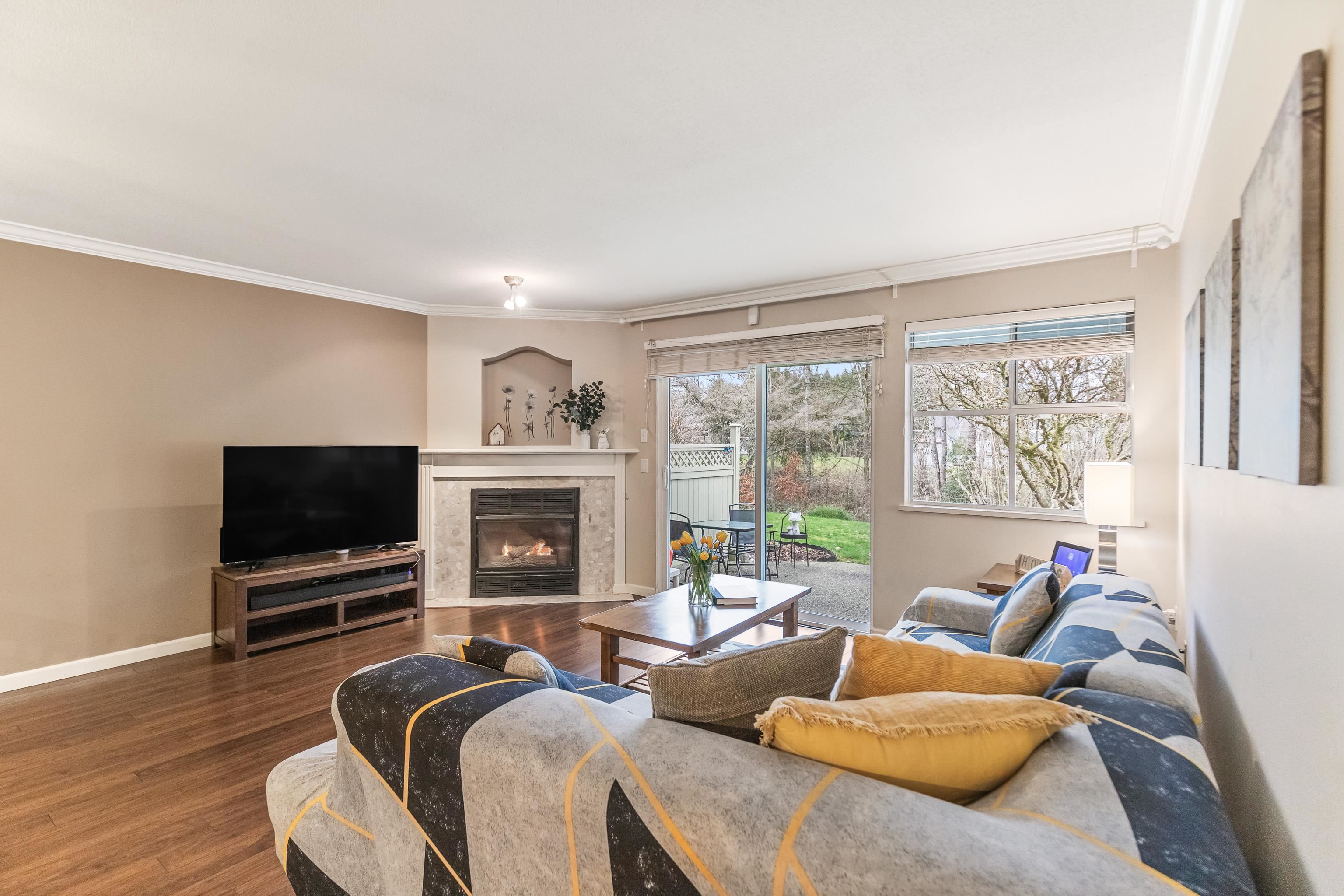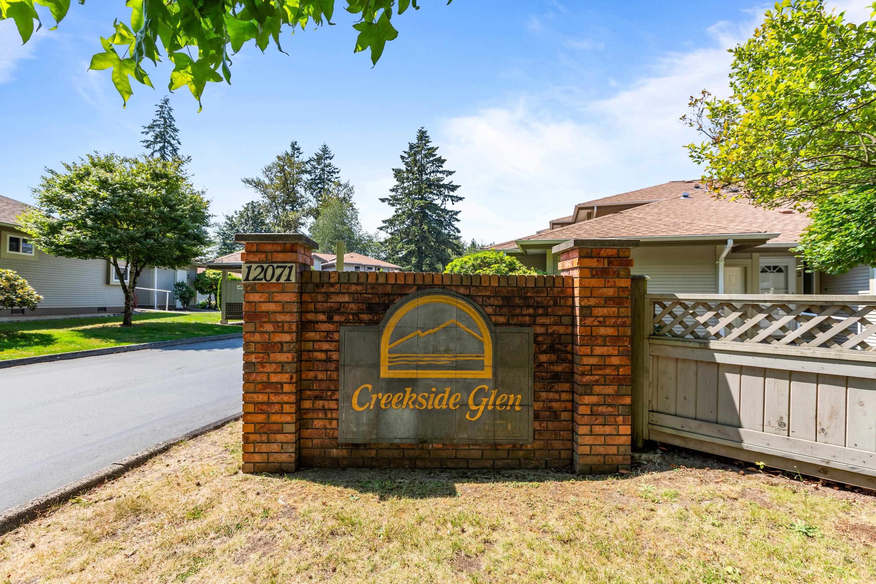 Enjoy living at Creekside Glen. This one level living "corner suite" home features a nice open floor plan.Updated stainless kitchen appliance & an abundance of cabinetry in the kitchen. The combined living & dining rm provides lots of space for entertaining & large furnishings plus features a lovely gas fireplace. Vinyl sliding glass doors take you out to the south facing ground level patio- backing onto green space. Two bedrooms, with the primary bedrm. offering a 3pc. ensuite (nice sized shower) and a privacy door out to patio. A separate laundry room with a little storage space in there too! Single garage plus a second "open' parking spot.This 33 unit t/h complex is centrally located but yet tucked away for privacy & quiet living. Come view this lovely home Saturday or Sunday 1-3pm.