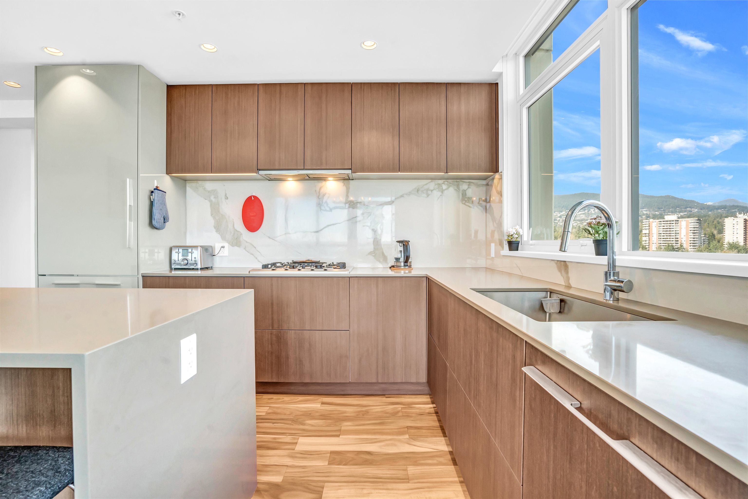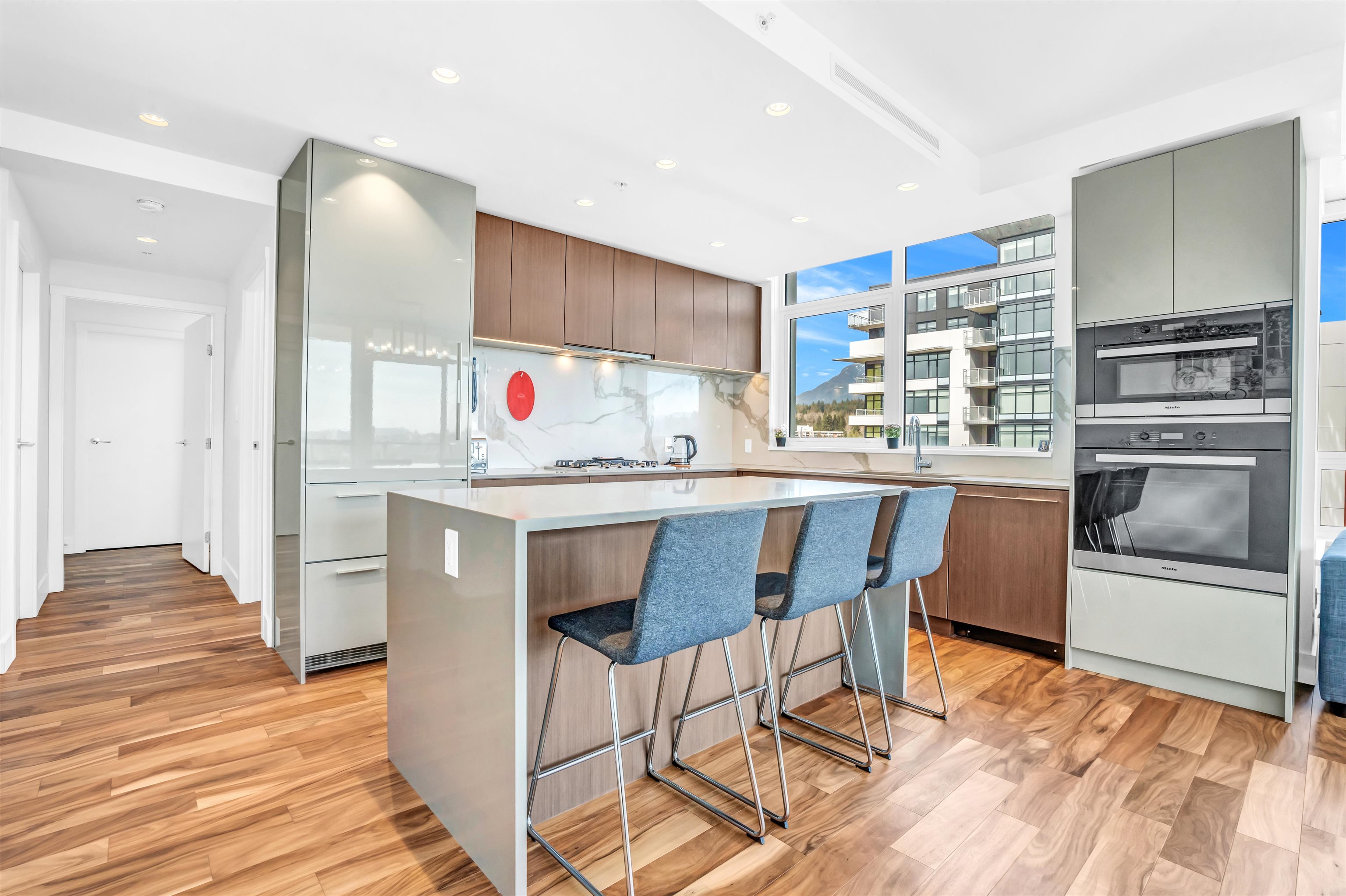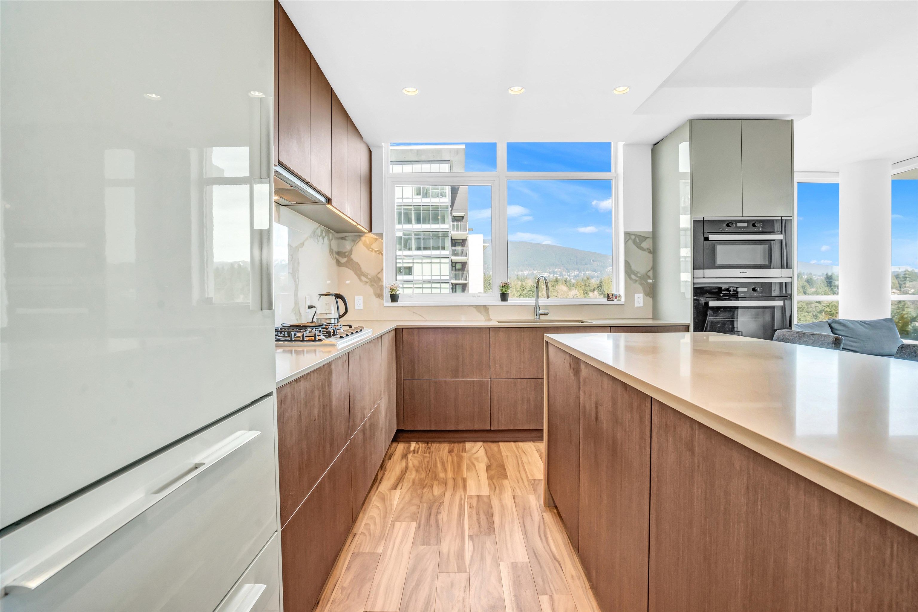 Witness stunning panoramic views of Downtown, water, City, and mountains from every angle of this exclusive 2 Bed + 2 Bath 952 sqft corner unit at the prestigious Park West Building. Luxuriate in the sophisticated design featuring high-end finishes, AC, a gourmet kitchen with a spacious island, and premium Miele appliances. The primary bedroom offers a walk-in closet and spa-inspired ensuite. Enjoy top-tier amenities like an outdoor pool, gym, party lounge, and theater room. Conveniently located near Park Royal shopping center, with easy access to Downtown. This rare find includes 2 SIDE BY SIDE EV READY PARKING SPOTS and a large storage locker. Priced 70K below BC Assessment!