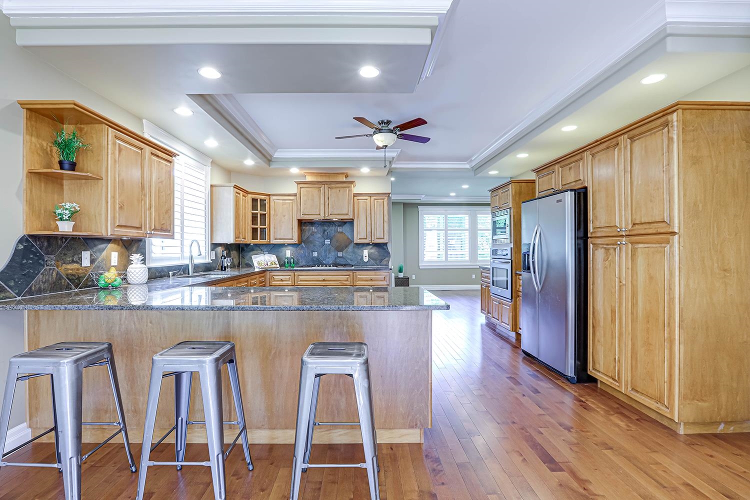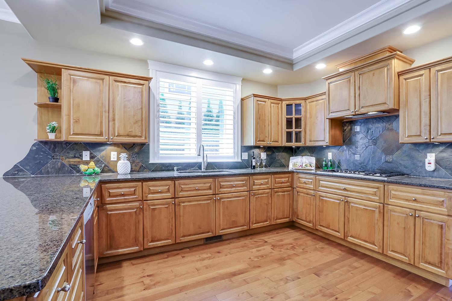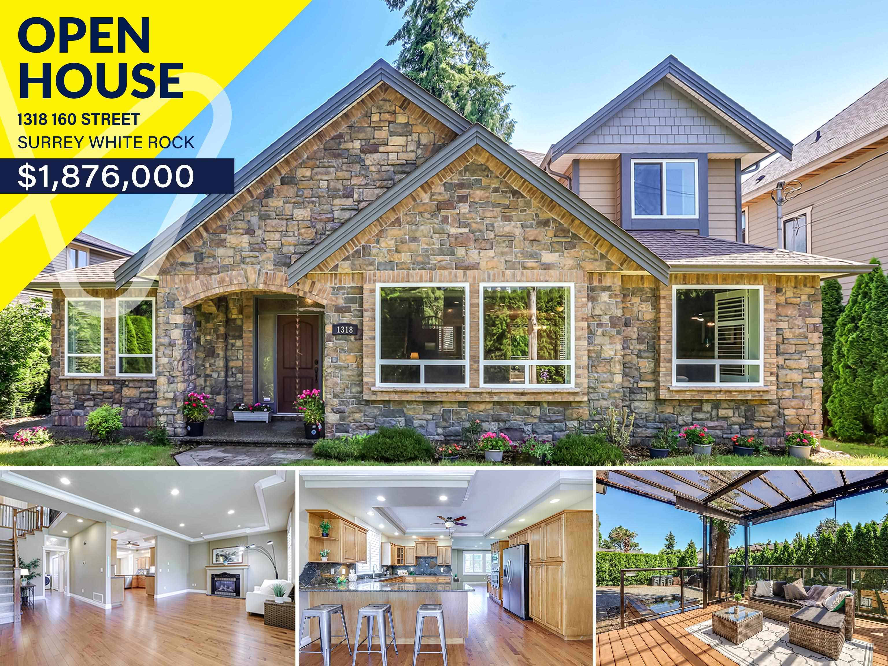 SUPERIOR CUSTOM-BUILT HOME is crafted to perfection with exceptional quality. Minutes from the beach, this stunning 5 bedroom, 3 bath home in White Rock City by the Sea! Large room on main can be use as another bedroom. Feature open concept living room w/9’ ceiling, rich ¾” birch hardwood floor thru out main, a gas fireplace, crown moldings, and wooden venetian blinds. The solid maple wood kitchen w/built-ins, stainless appliances, granite counters w/slate back-splash. Enjoy a spacious private sundeck perfect for entertaining, and water fountain for ultimate relaxation. Heat pump for central air/heat, high-efficiency furnace, skylights, a built-in vacuum. Double garage secured private backyard w/power gate. Close to transit, school, shopping. **OPEN HOUSE Sun, Feb 23 from 2:00pm-4:00pm.