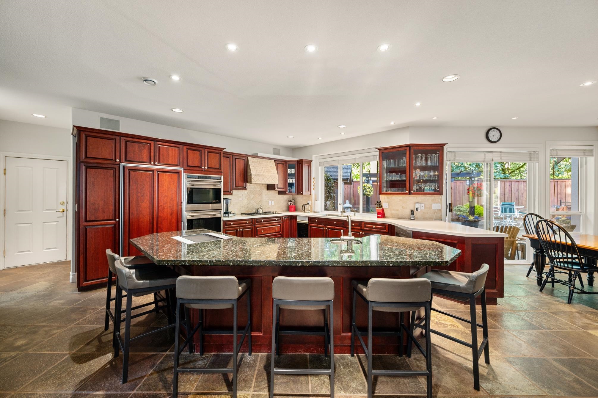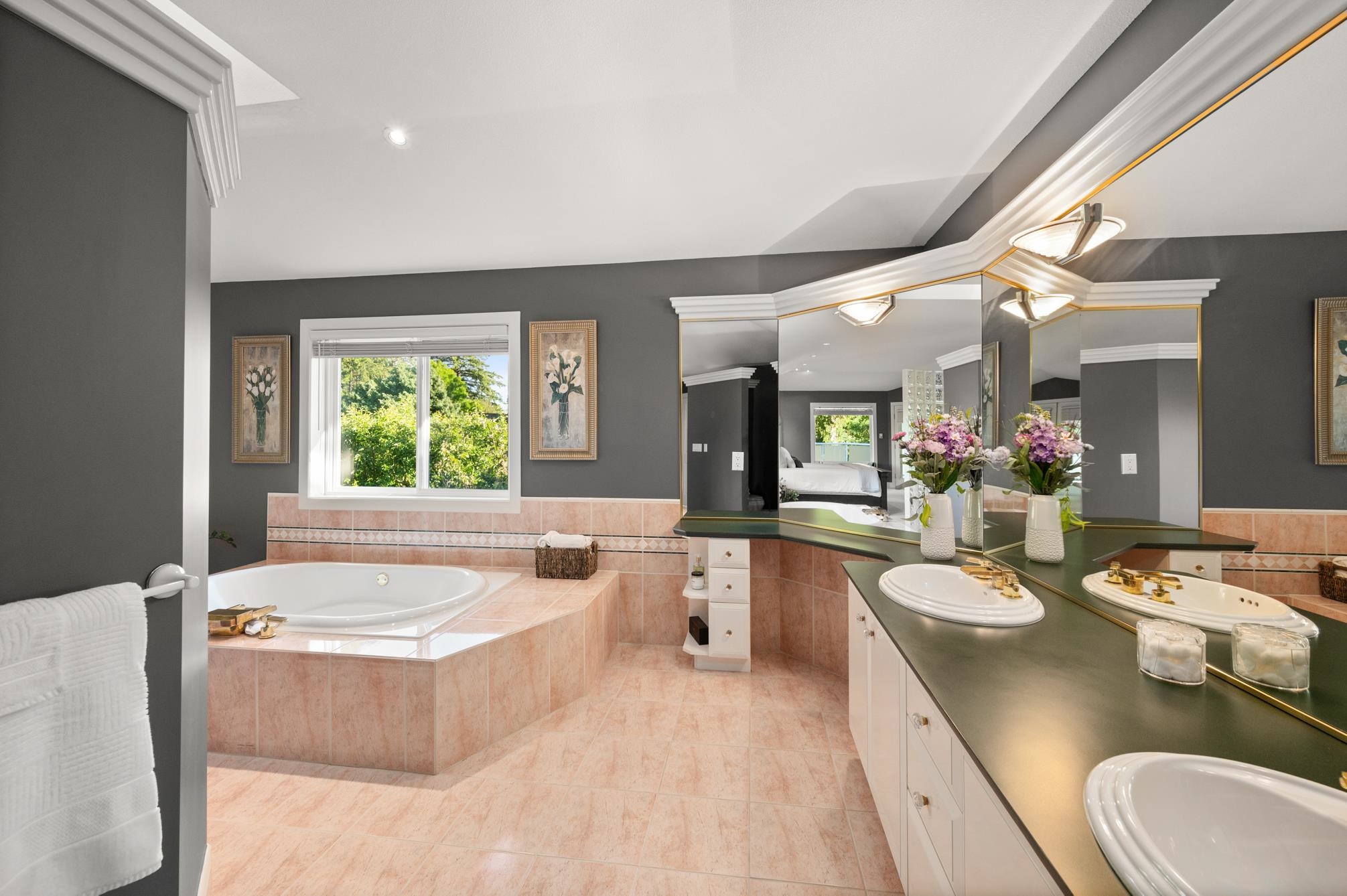 Executive custom-built home in desirable South Surrey! Over 5000sqft of gracious living on 2 levels. Generous-sized rooms throughout offer multiple living & entertaining options. The main floor has a large kitchen, dining room, private living room, family room, games room & a den that can easily serve as an additional bedroom. The upper level has a spacious primary bedroom & ensuite with a large soaker tub, separate shower, large walk-in closet & a private balcony. 3 more bedrooms complete this level, 1 with 2 walk-in closets & 2 with a Jack & Jill bath. Lovely private yard on a quiet cds, triple car garage & enough driveway space for another 10+ or RV Parking. The backyard is perfect for entertaining with a pool & hot tub. All of this backs onto Dogwood park for privacy all year round.