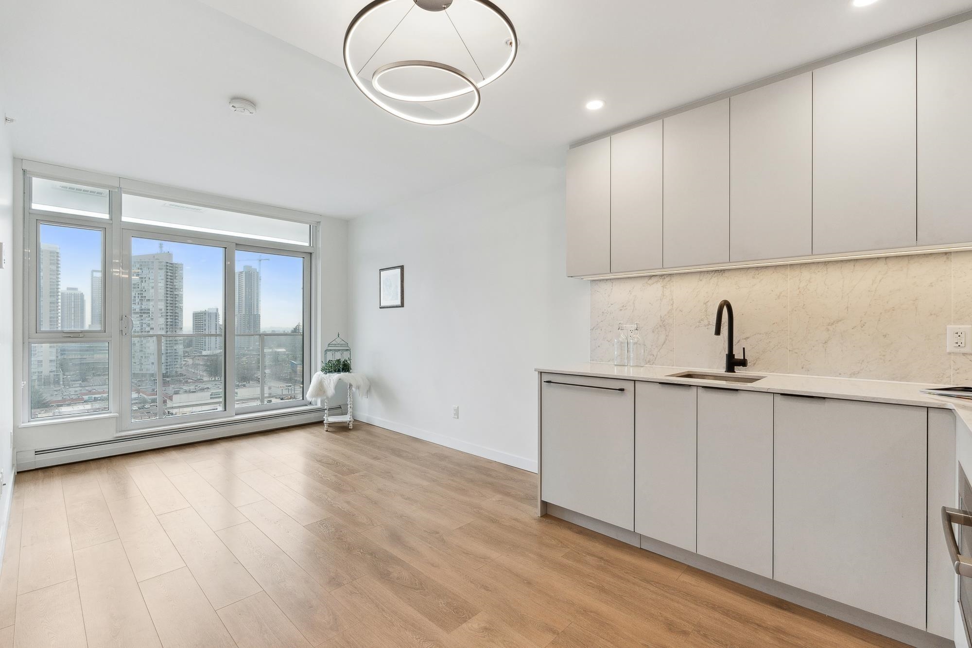 Welcome to Georgetown by Anthem! Bright SOUTH facing with 1 BED | 1 BATH | 1 EV ROUGH-IN PARKING | 1 LOCKER. Open Concept living and Kitchen, quartz countertops, stainless integrated appliances, laminate flooring throughout living area & bedroom. Georgetown has a 30,000sf amenity space with entertainment lounge, co-workspace, outdoor theatre, dog run, fitness center and guest suite. Steps to Surrey City Centre shopping & restaurants. Skytrain & KPU & SFU as well as the upcoming UBC campus are a short stroll away. Don't miss out!