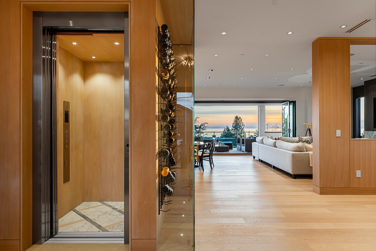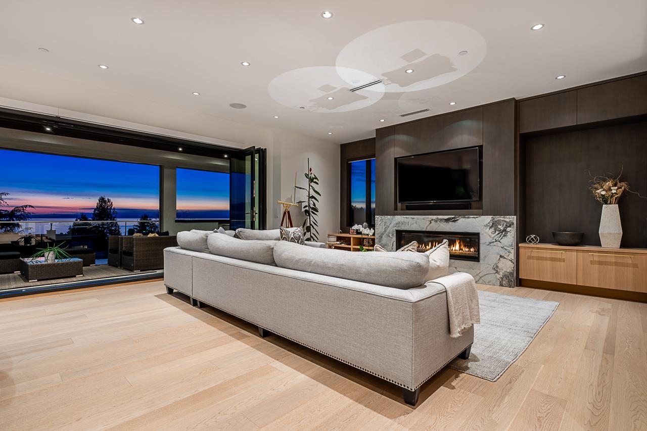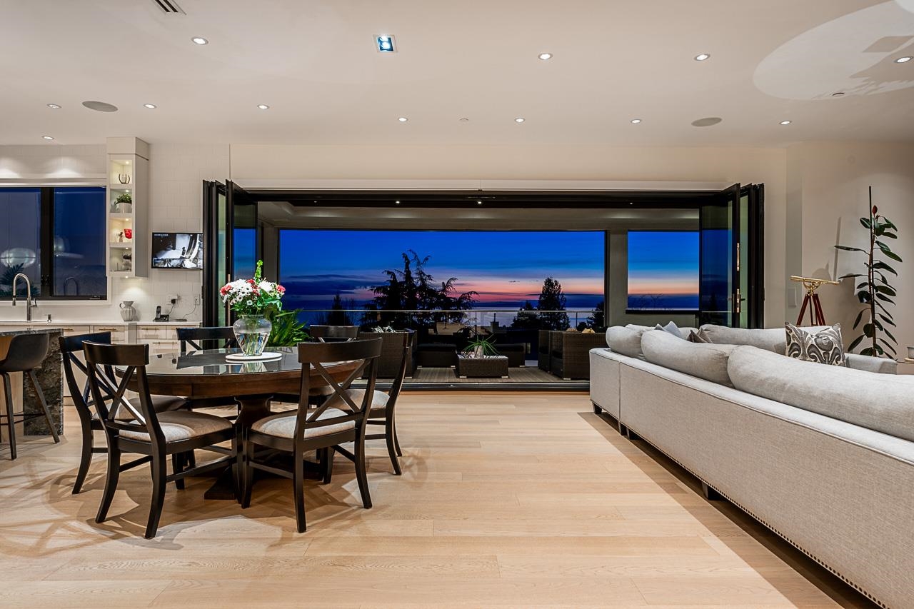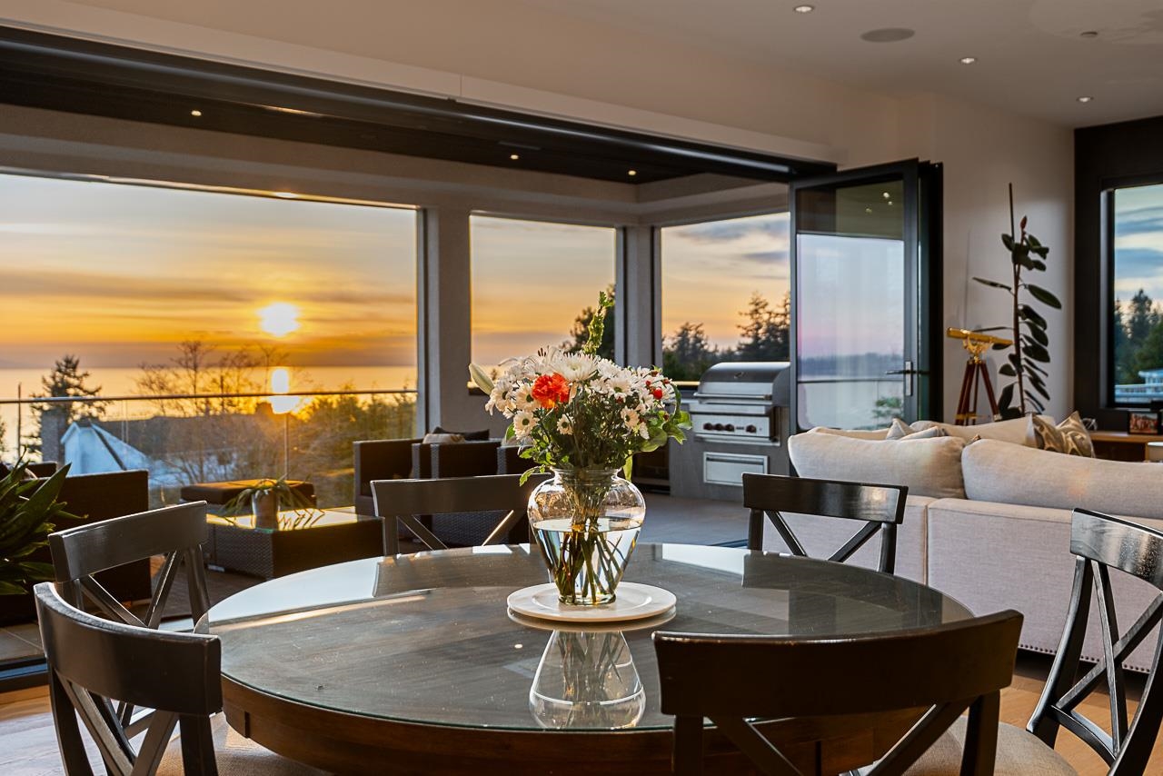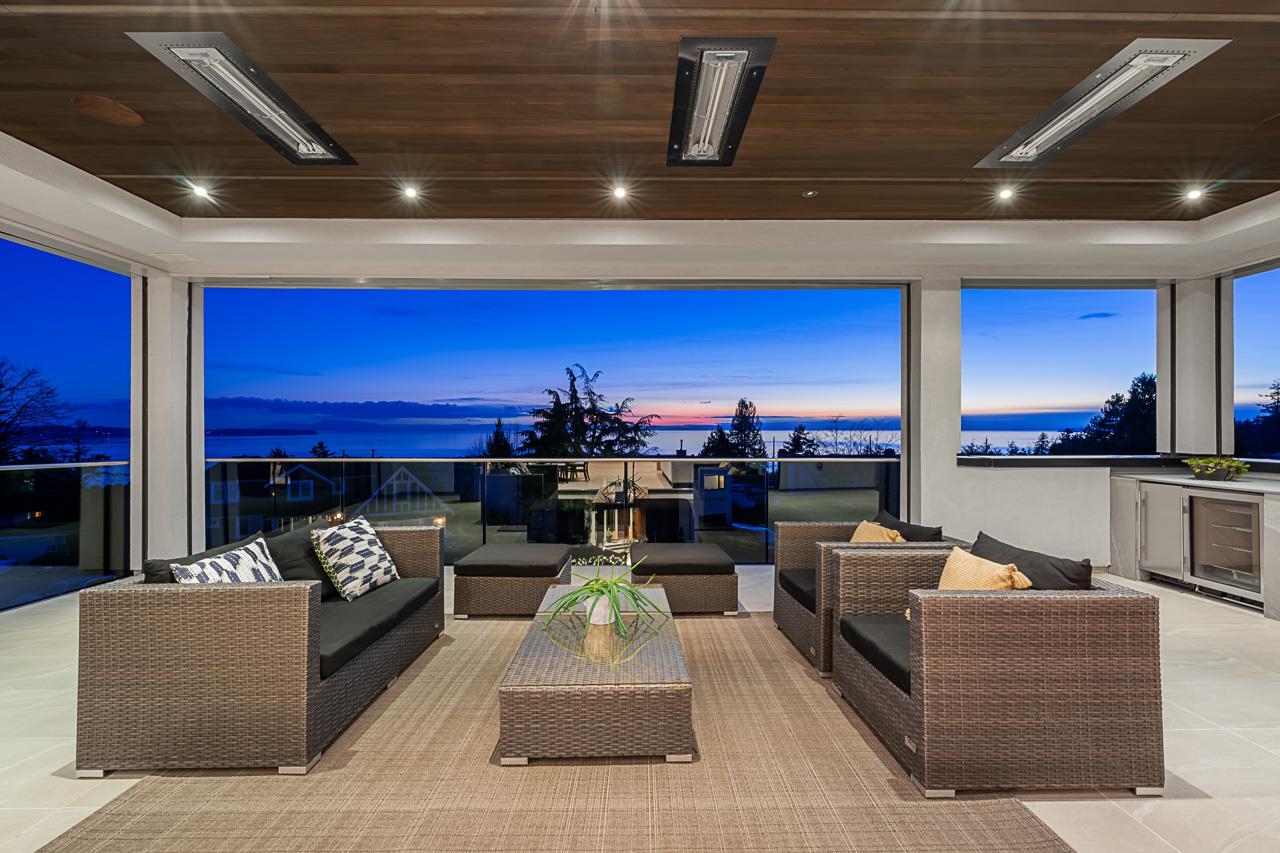 Spectacular Ocean & Gulf Island Views combined with superior quality and timeless modern design. Quality built by Dakota Homes, this luxurious 6,000sqft home offers breathtaking views from principal living spaces seamlessly integrating indoor & outdoor living. Luxurious interior design throughout, the open-concept main floor includes a Great Room, Gourmet kitchen with professional Wolf/Subzero appliances, Wok Kitchen, Formal and Casual Dining areas along with a heated oceanside deck. Elevator for easy access to the lower levels, including the lavish primary suite and 3 additional guest suites. Walk out basement complete with a media room, gym, bar, wine cellar, and a guest room. Meticulously landscaped and gated for privacy with rear and front access. Bayridge & Semiahmoo school catchment.