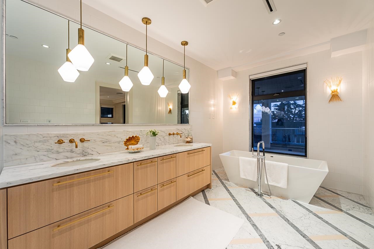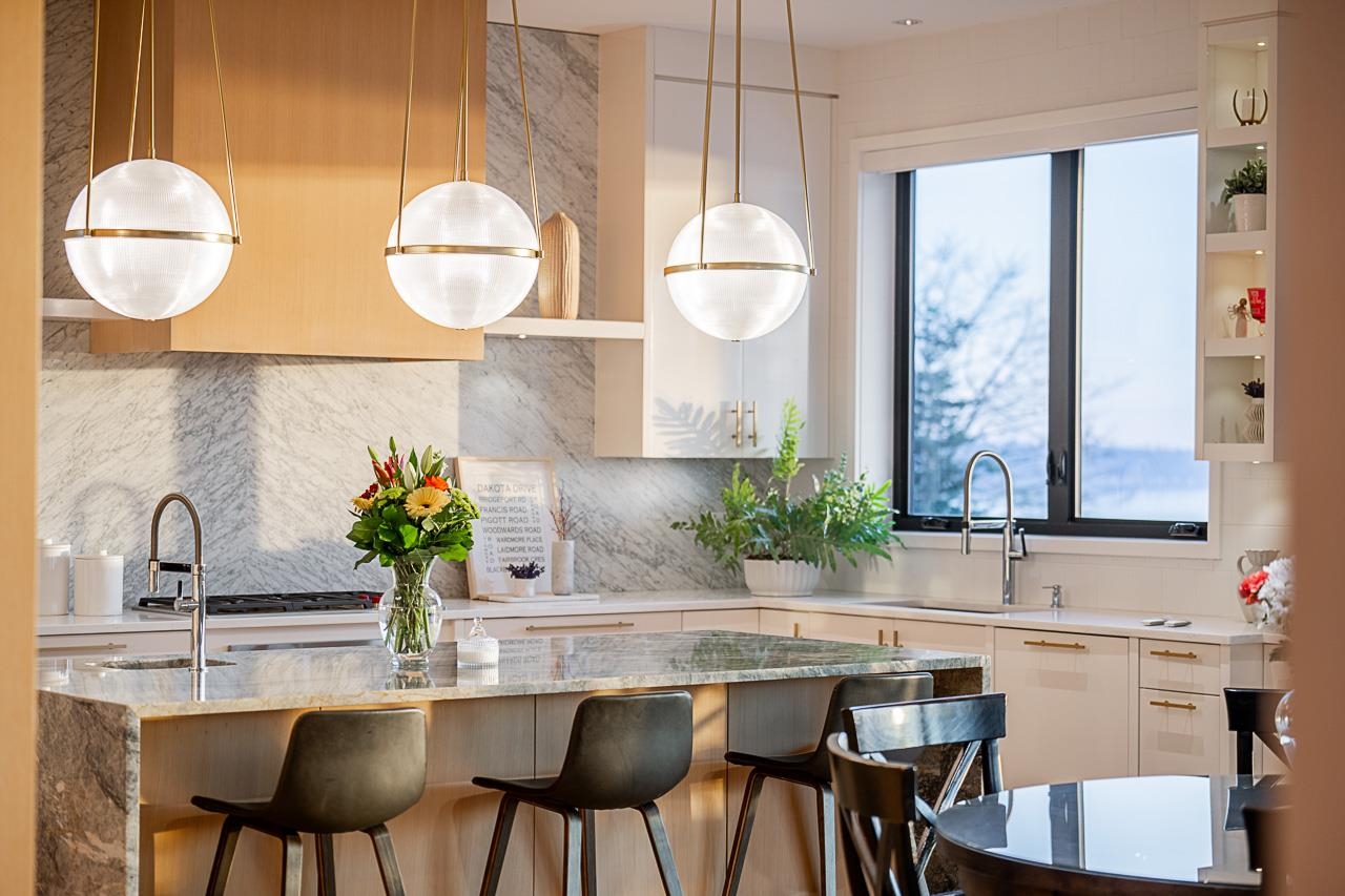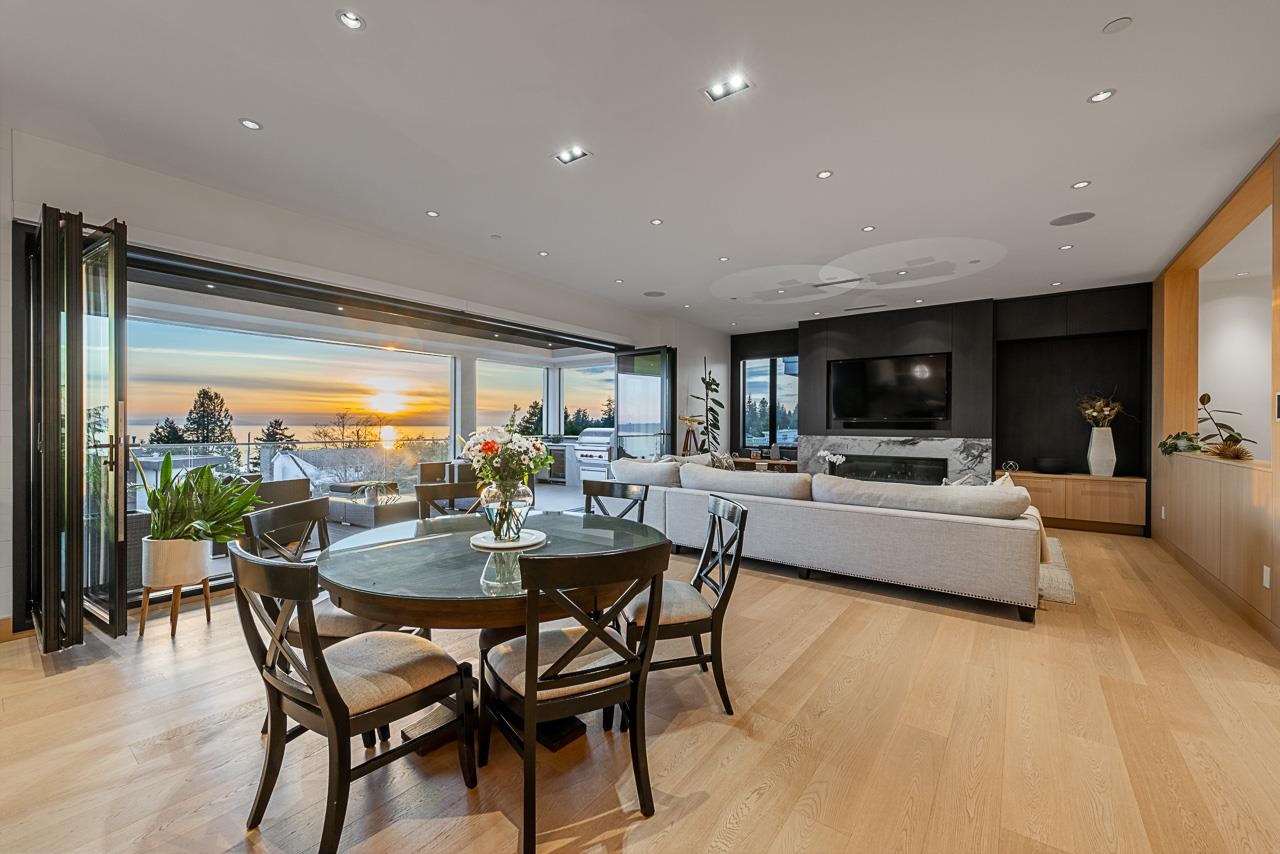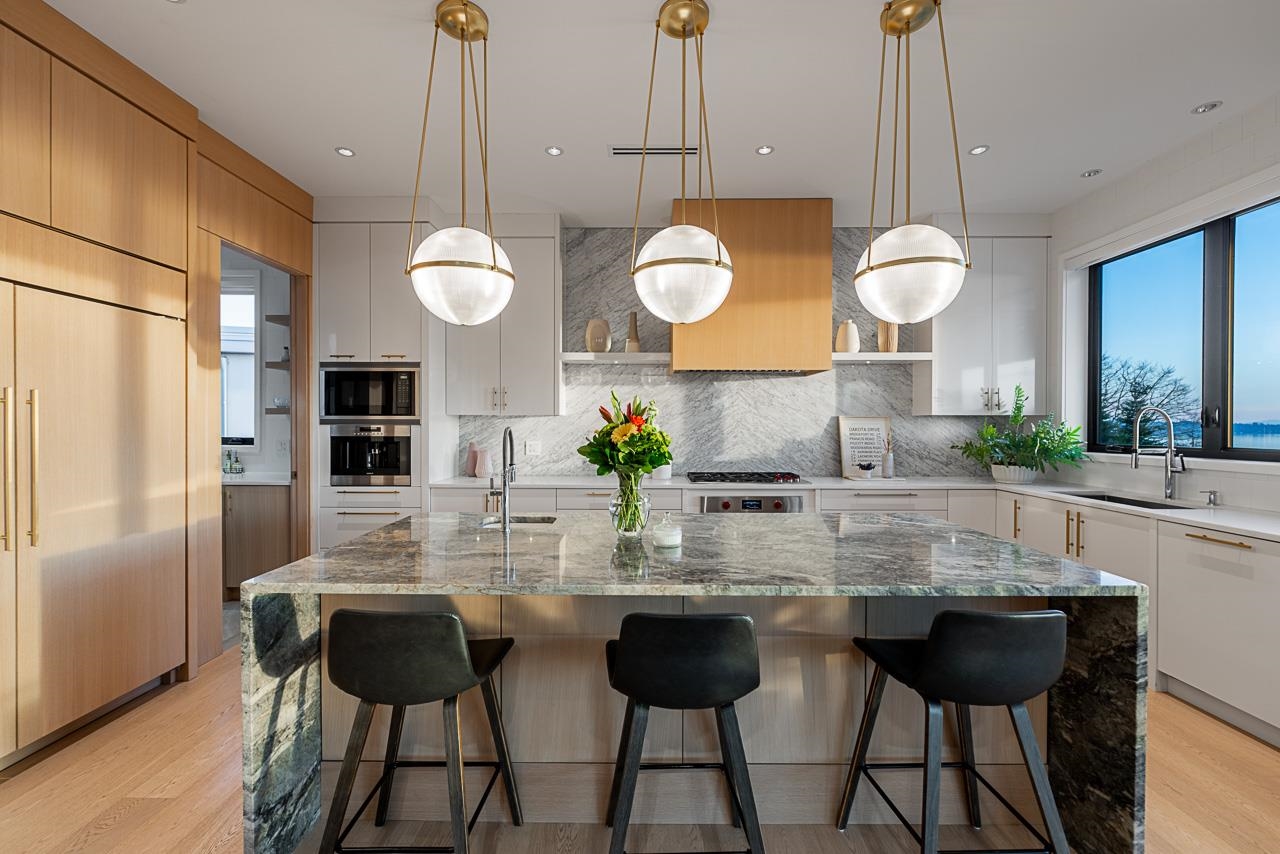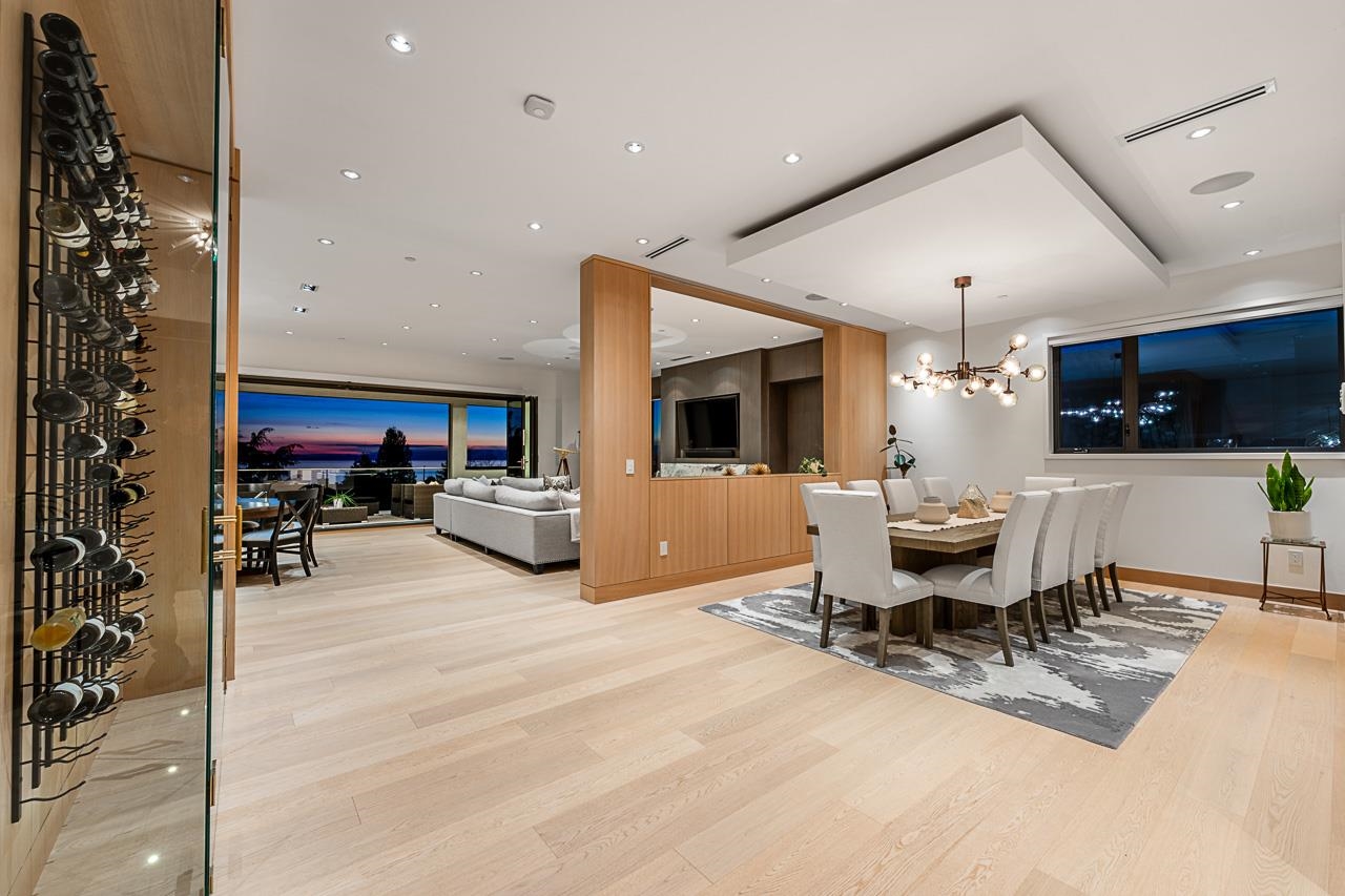 Spectacular Ocean & Gulf Island Views combined with superior quality and timeless modern design. Quality built by Dakota Homes, this luxurious 6,000sqft home offers breathtaking views from principal living spaces seamlessly integrating indoor & outdoor living. Luxurious interior design throughout, the open-concept main floor includes a Great Room, Gourmet kitchen with professional Wolf/Subzero appliances, Wok Kitchen, Formal and Casual Dining areas along with a heated oceanside deck. Elevator for easy access to the lower levels, including the lavish primary suite and 3 additional guest suites. Walk out basement complete with a media room, gym, bar, wine cellar, and a guest room. Meticulously landscaped and gated for privacy with rear and front access. Bayridge & Semiahmoo school catchment.