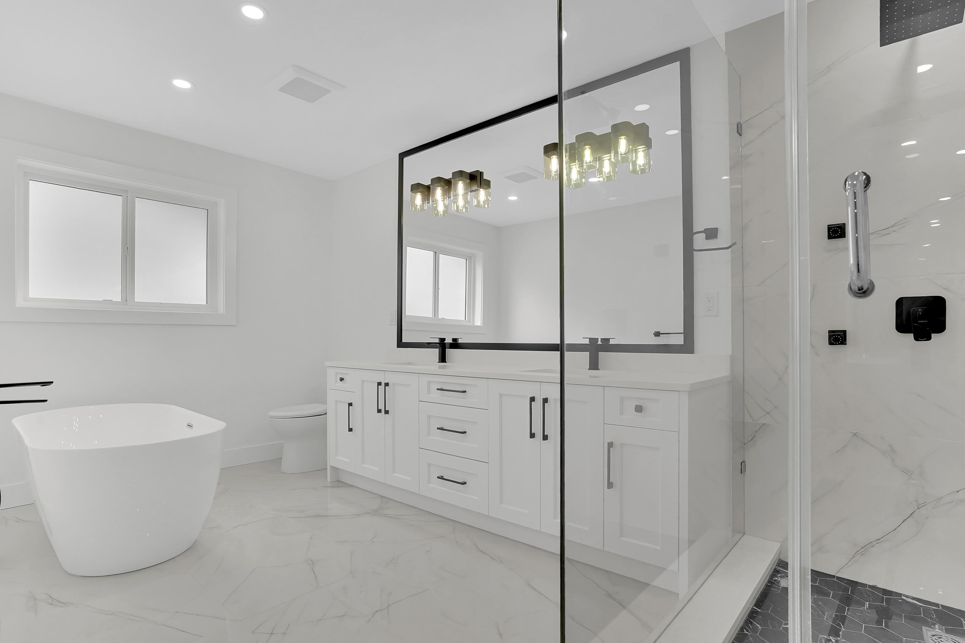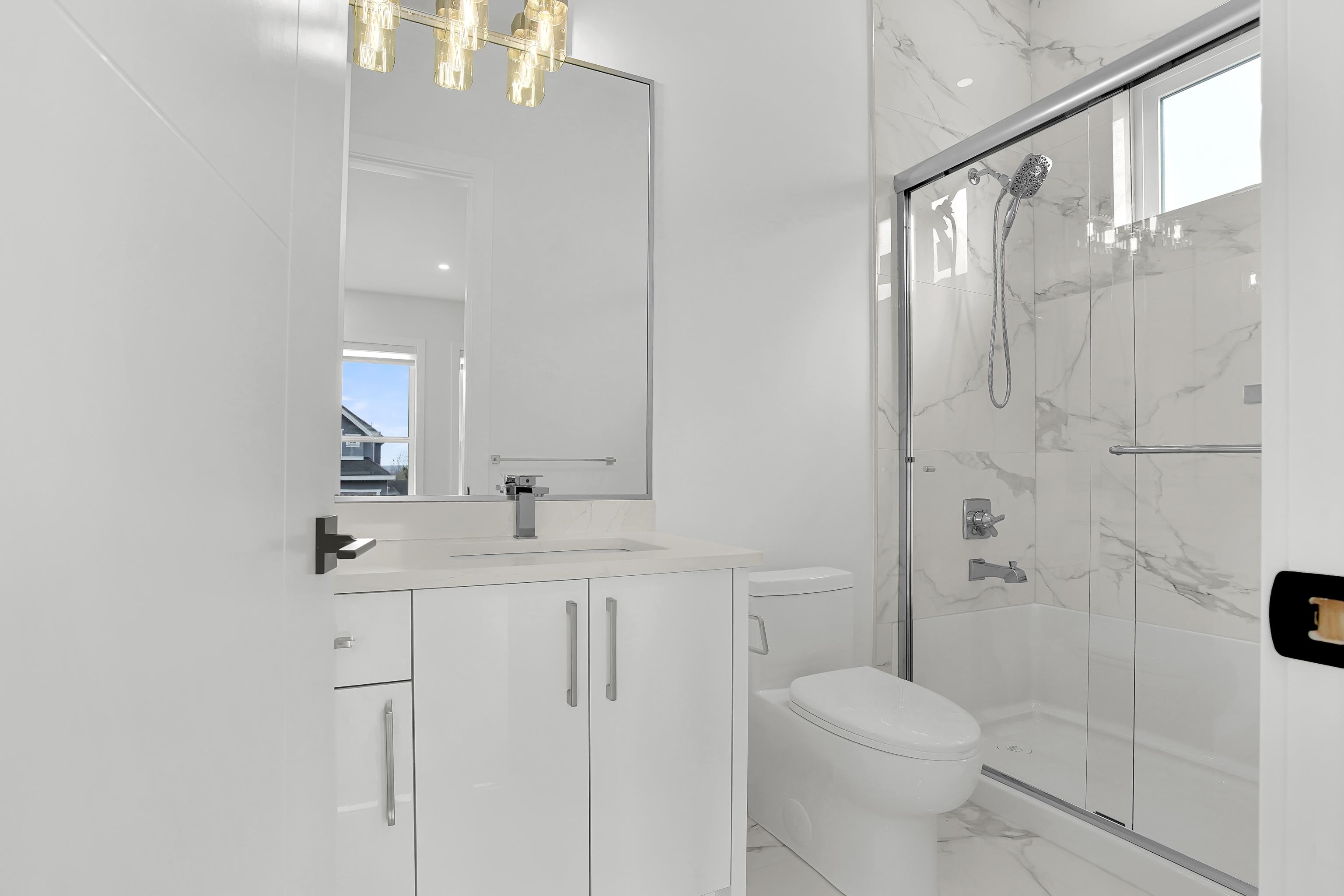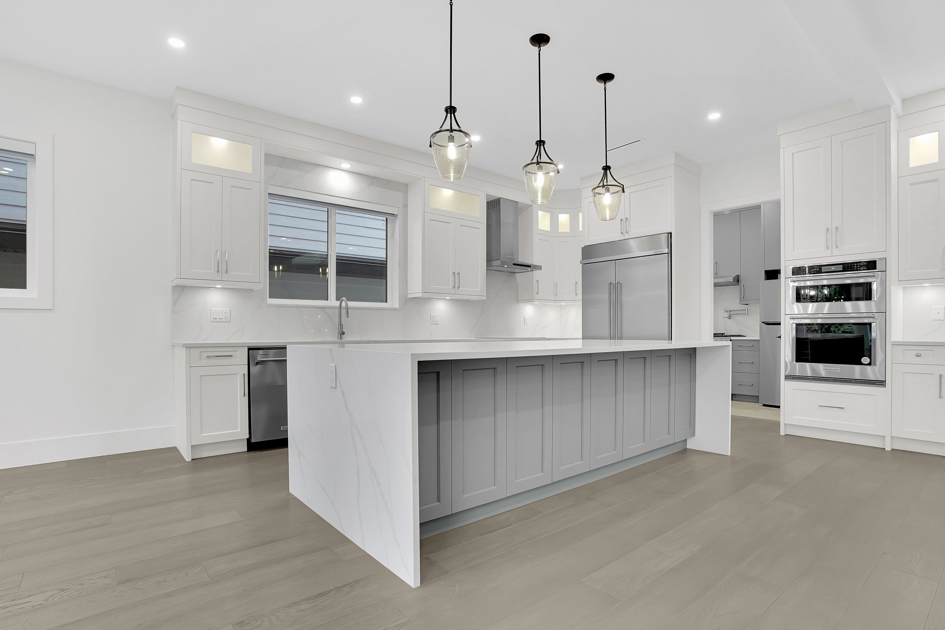 Discover luxury living in this brand new, custom-built home in Cloverdale! As you step inside, you're greeted by a modern open-concept floor plan which is perfect for entertaining and everyday living. Designed to optimize comfort, this residence includes Central A/C, automatic blinds, and RADIANT heating across all 3 levels. The chef's kitchen is a culinary MASTERPIECE, featuring top-of-the-line KitchenAid appliances, PREMIUM countertops/cabinetry, and a spacious spice kitchen + pantry. There are 2 master suites with one conveniently located on the main floor. The master suite features a spa-like bathroom with a freestanding soaking tub, a rainfall shower, and custom walk-in closet. Basement includes a theatre room, mud room, and an expansive 2 bedroom legal suite with option to add 1 more