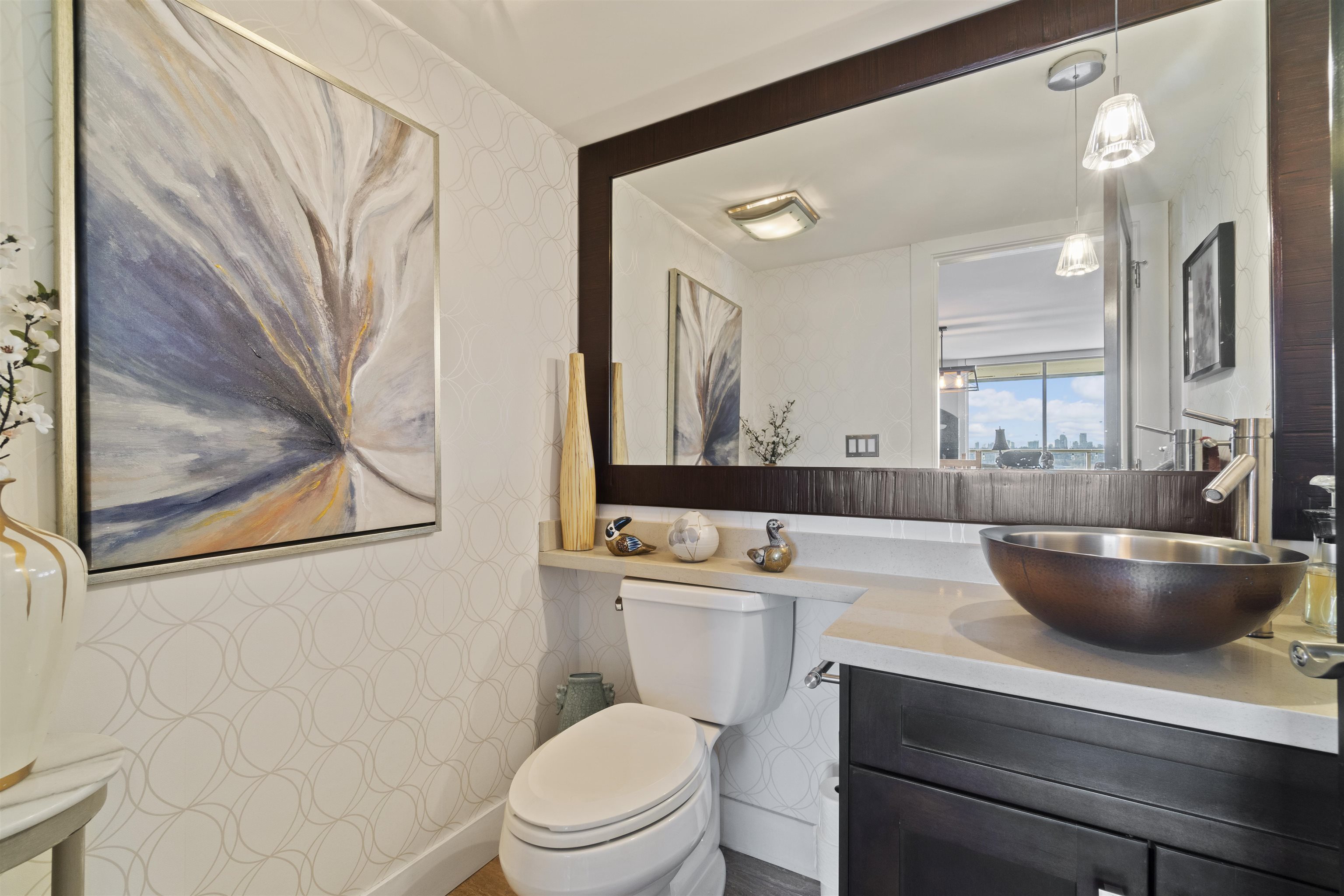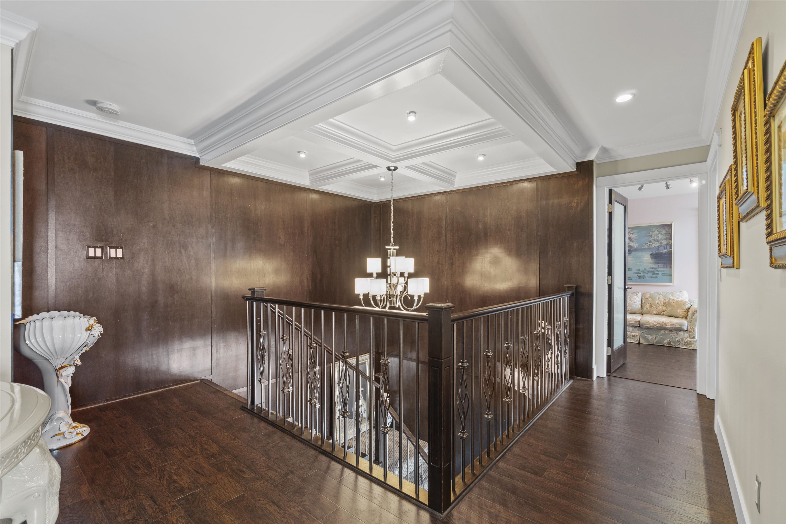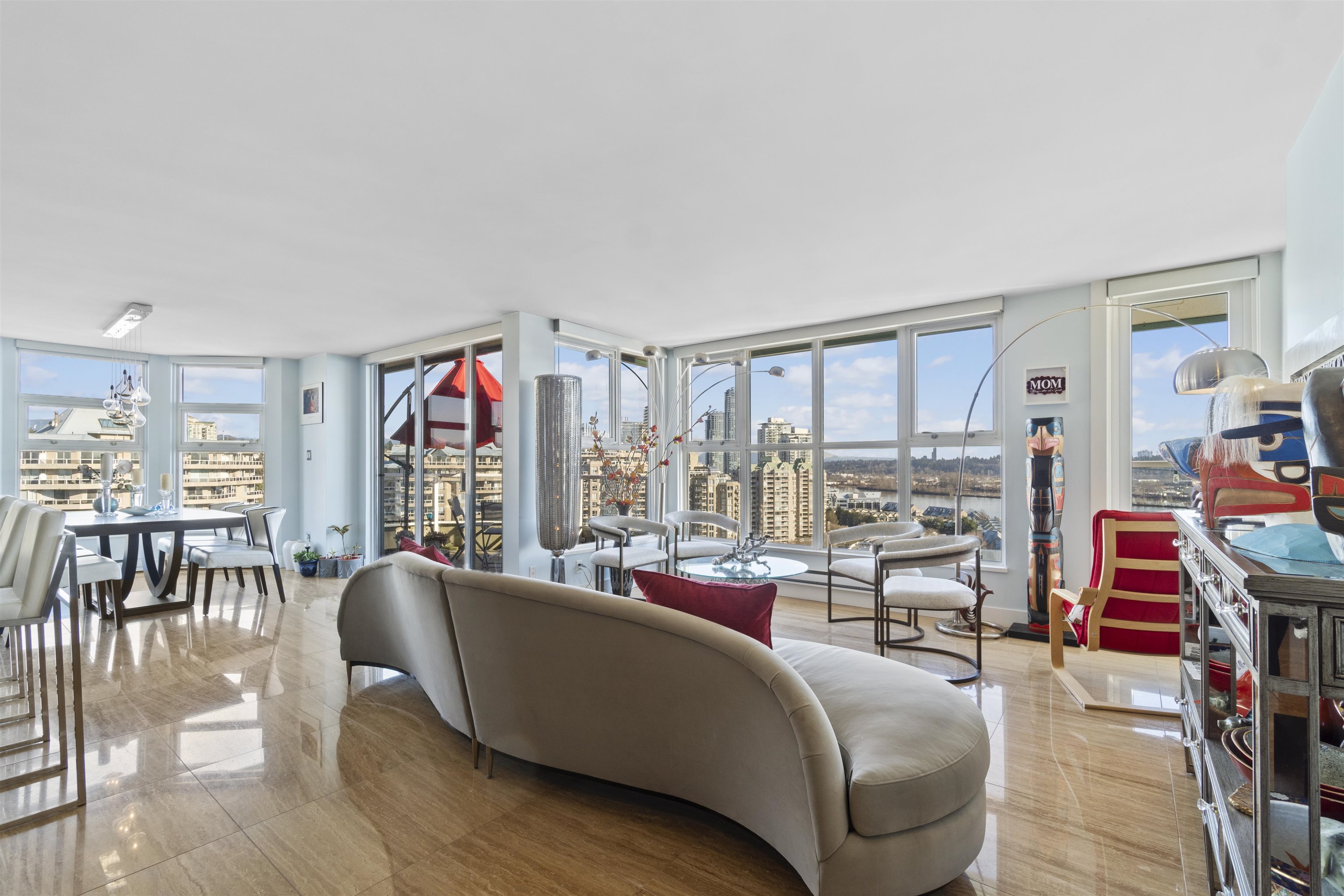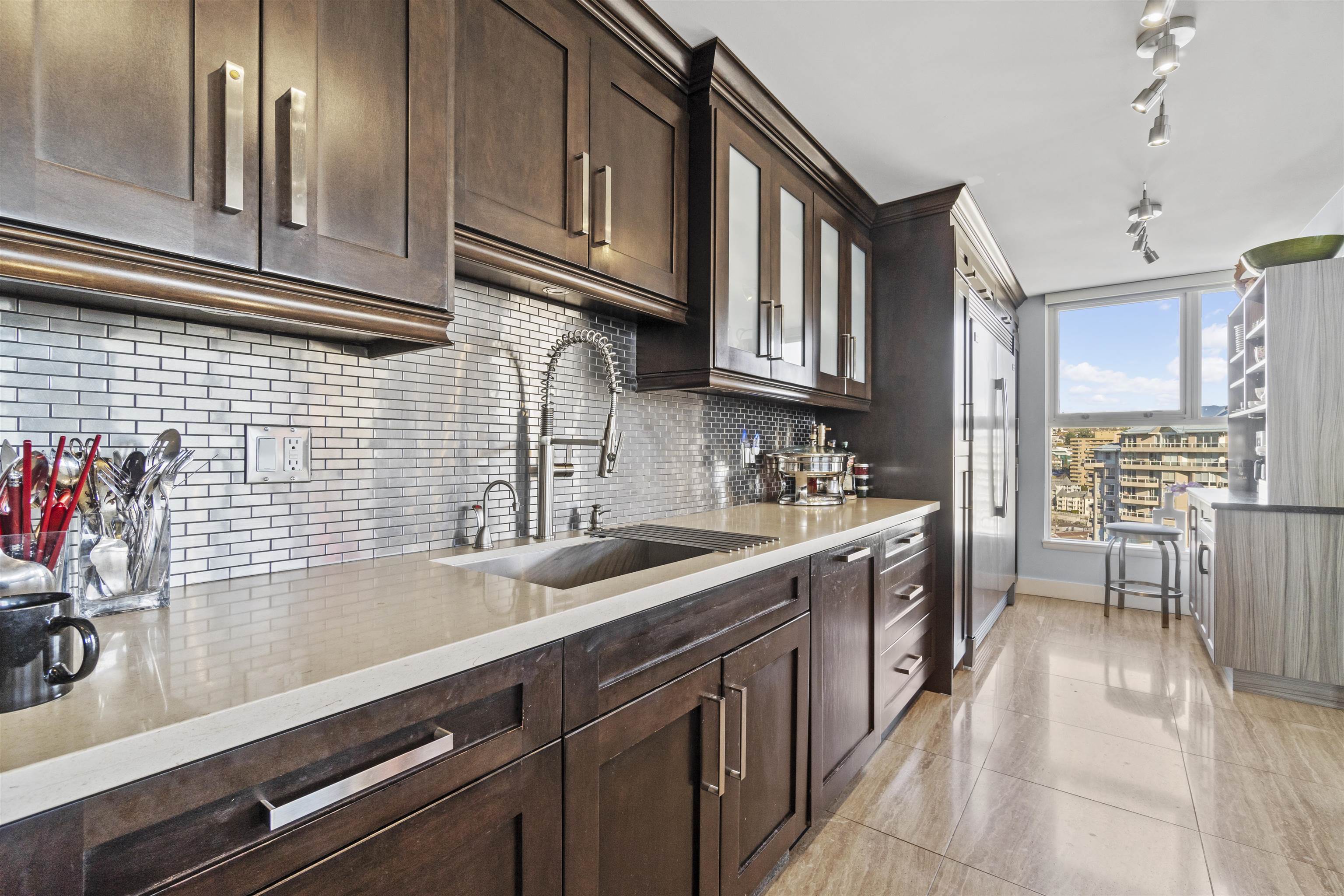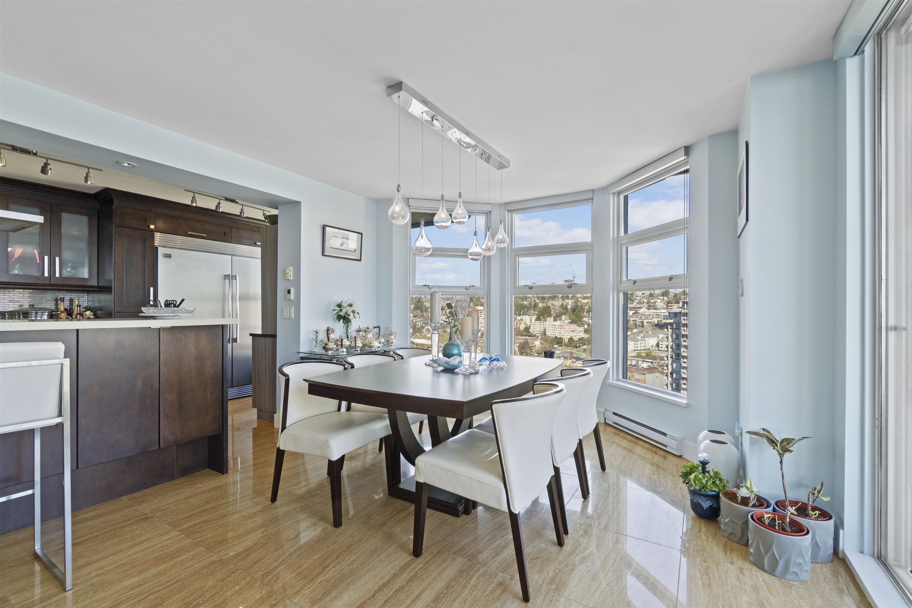 Incredible Renovation with Panoramic River Views – A Penthouse Like No Other! This luxurious penthouse blends elegance and comfort. The two-story entryway with coffered ceilings and a chandelier sets the tone, leading to a chef’s kitchen with a 14' island, double convection ovens, a full-size fridge/freezer, and an induction cooktop. Spacious living and dining areas flow to a deck, while the cozy family room with a gas fireplace opens to another with river views. The serene primary bedroom boasts a spa-like ensuite, custom closets, and a private office. Upstairs, enjoy AC, three bedrooms, a den with a fireplace, a jetted tub, and the third deck. Steps from the Seawall and SkyTrain, this is waterfront living at its finest!