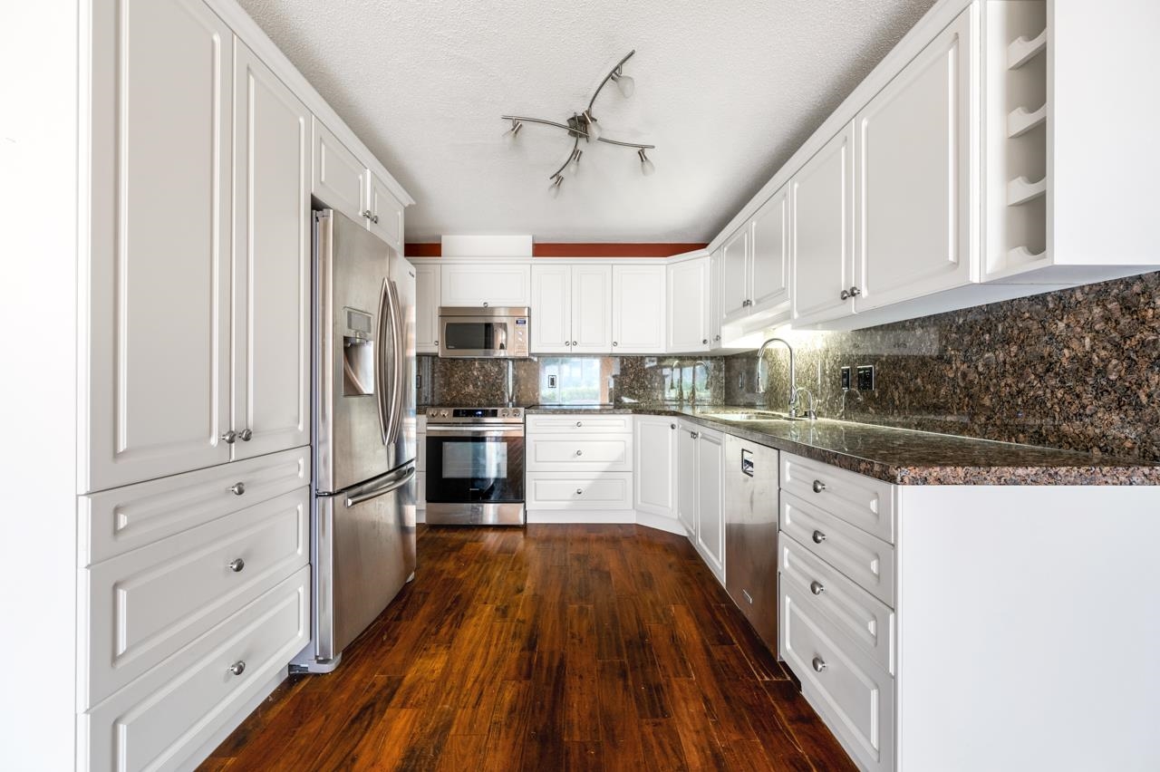Welcome to Popular problem free adult-oriented community CHELSEA GARDENS! Rare sought after spacious ground level (no stairs) 2-Bed & 2-Bath Ground Level unit has been loved & pampered by her owner, Boasts gorgeous engineer flooring throughout, beautiful updated Kitchen , loaded with cabinetry Granite counter tops & SS appliances , separate entertainment-sized family room with feature gas f/p & slider doors leading to serene outdoor patio. The Primary Bedroom has 4-pc ensuite with both shower & tub. Single car garage & 1 additional outdoor parking. Resort-Style Living, amenities include Outdoor Pool, Club House, Hot Tub, Library, Fitness Room, & Woodworking Shop. Centrally Located in East Newton, close to Shopping Plazas, Schools, Recreation Centre One resident must be 55+ ..A 10 !!!