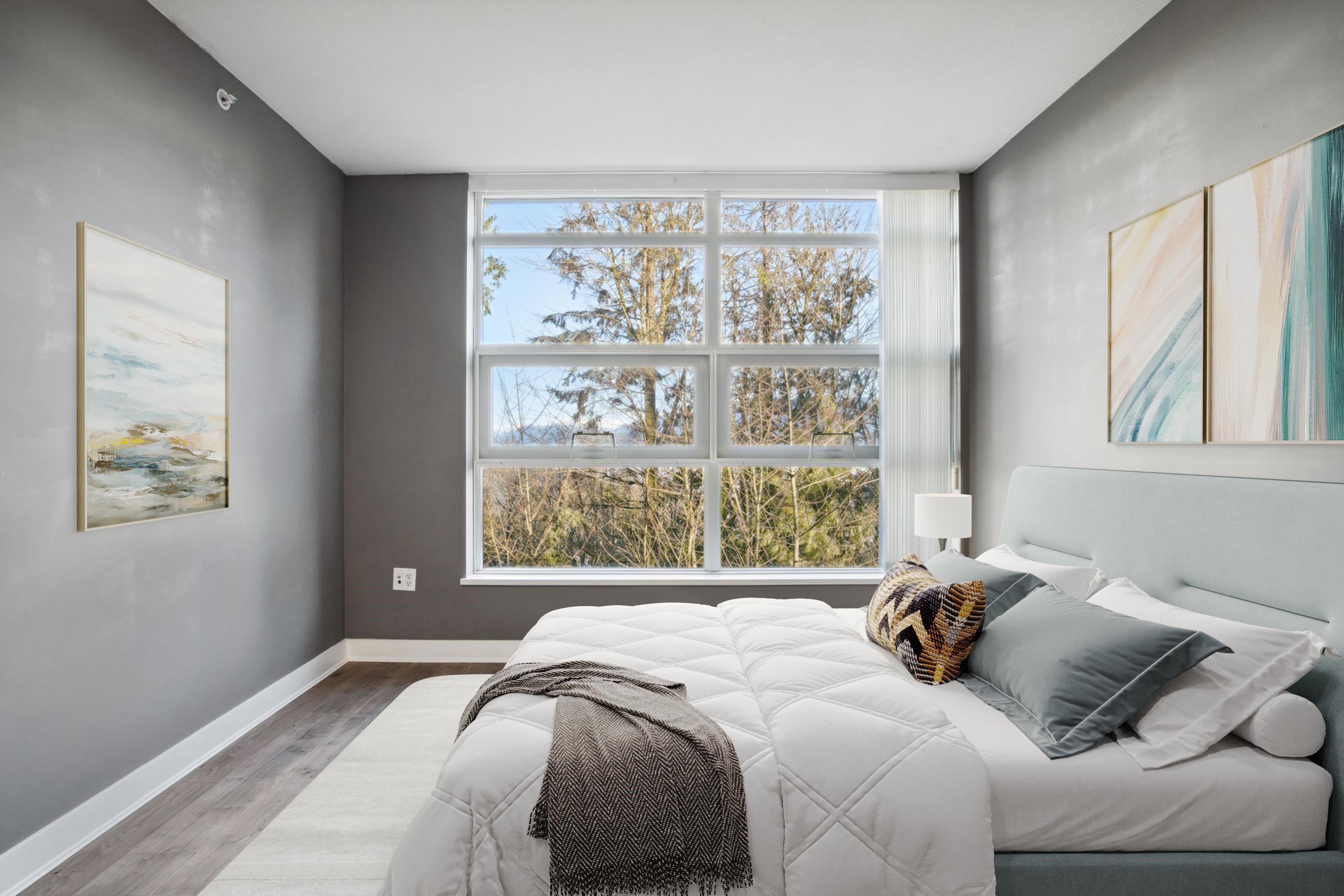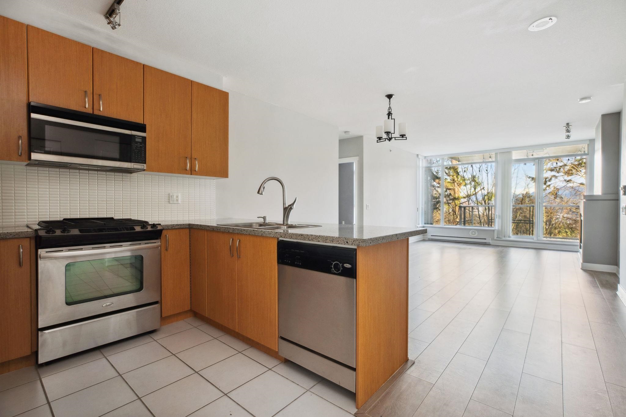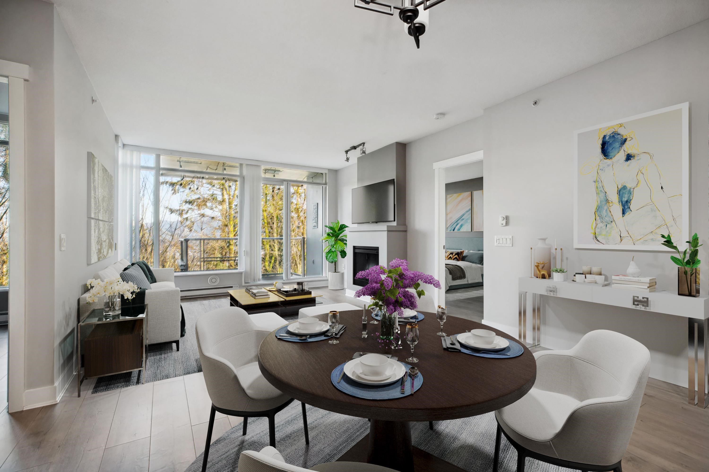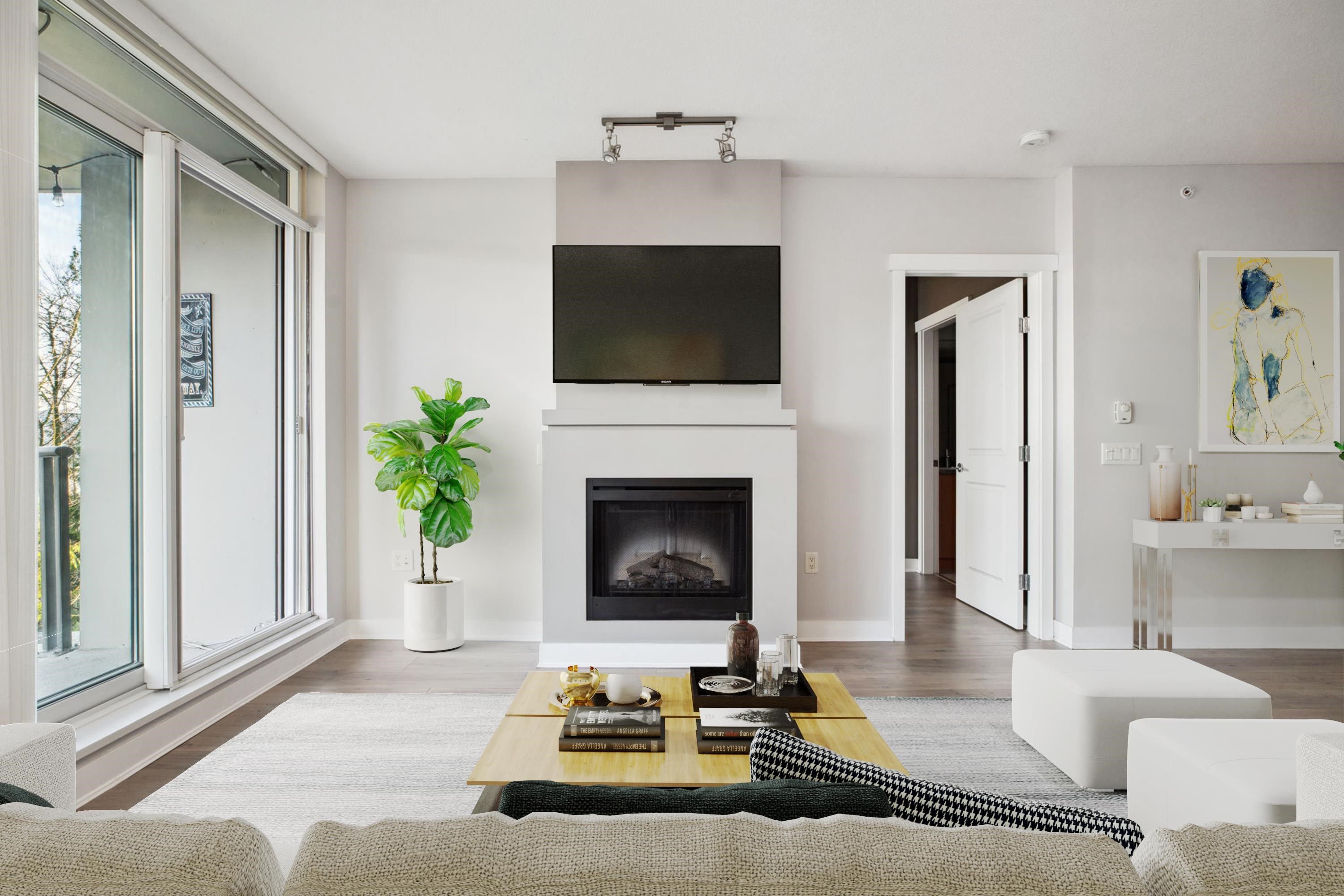 Welcome to this immaculately kept 2 bedroom, 2 bathroom home at Altaire by award-winning developer Polygon. Gaze out on to the mountains beyond the trees from every room, capped with a dusting of snow; a true West Coast outlook. Inside is an ideal layout with separated bedrooms, with the primary bedroom featuring a substantial walk-in-closet, and a double vanity in the ensuite. The wraparound kitchen comprises granite countertops, stainless steel appliances, and a gas cooktop. In these cold winter months, you can bask in the warmth of the natural gas fireplace in the living room, while feeling like you're sitting in a lodge in the mountains. Open house Sunday Mar 16th 2-4PM