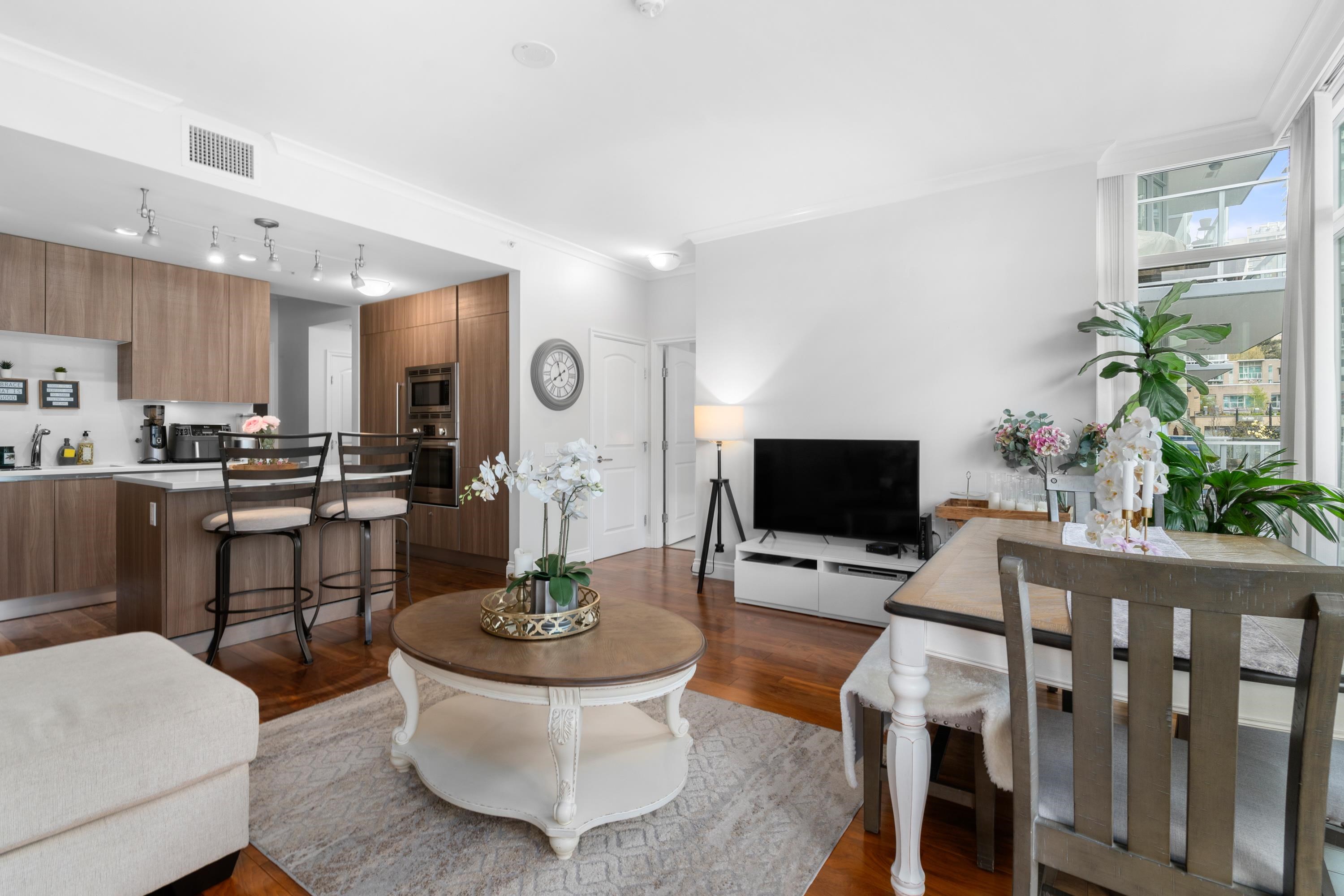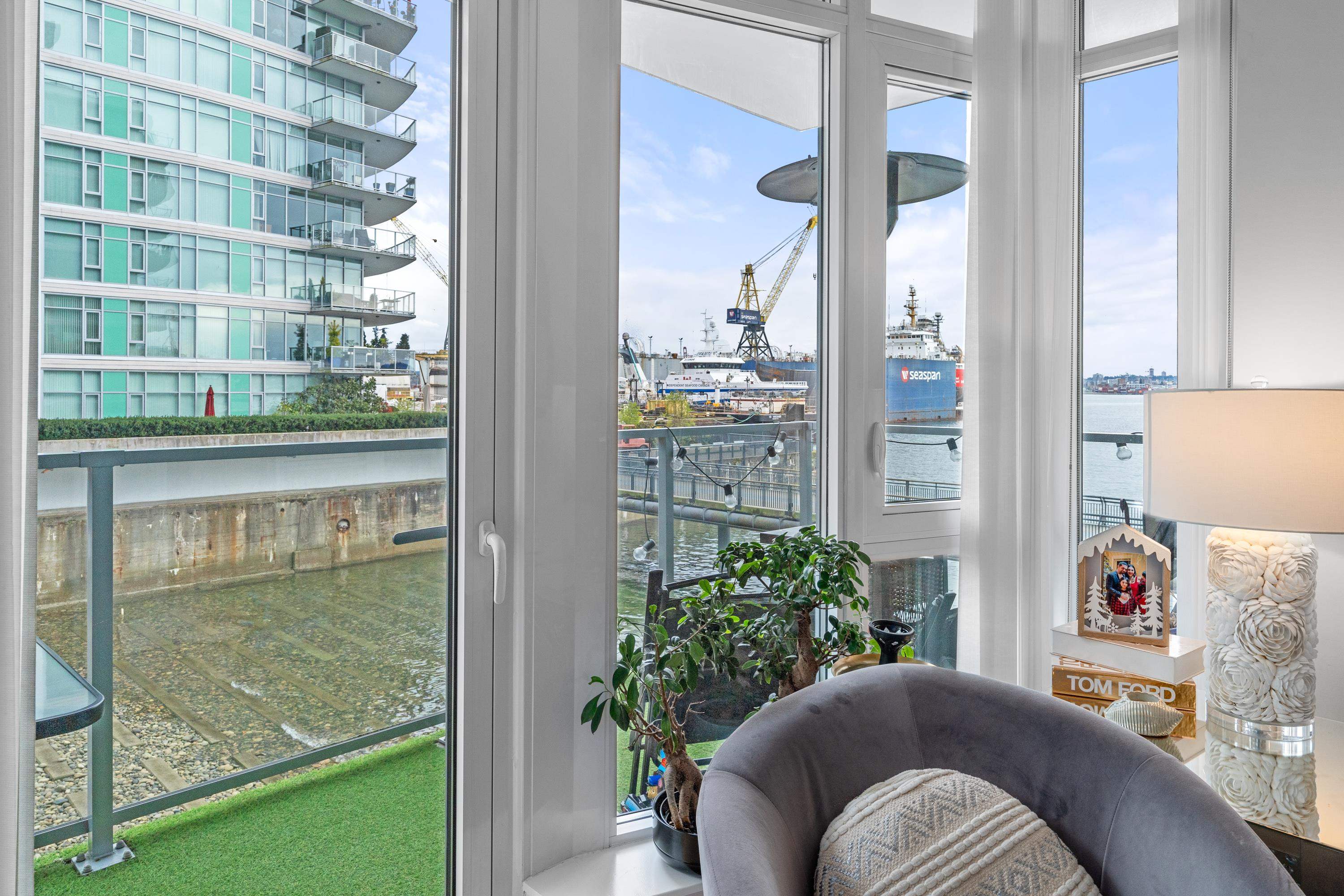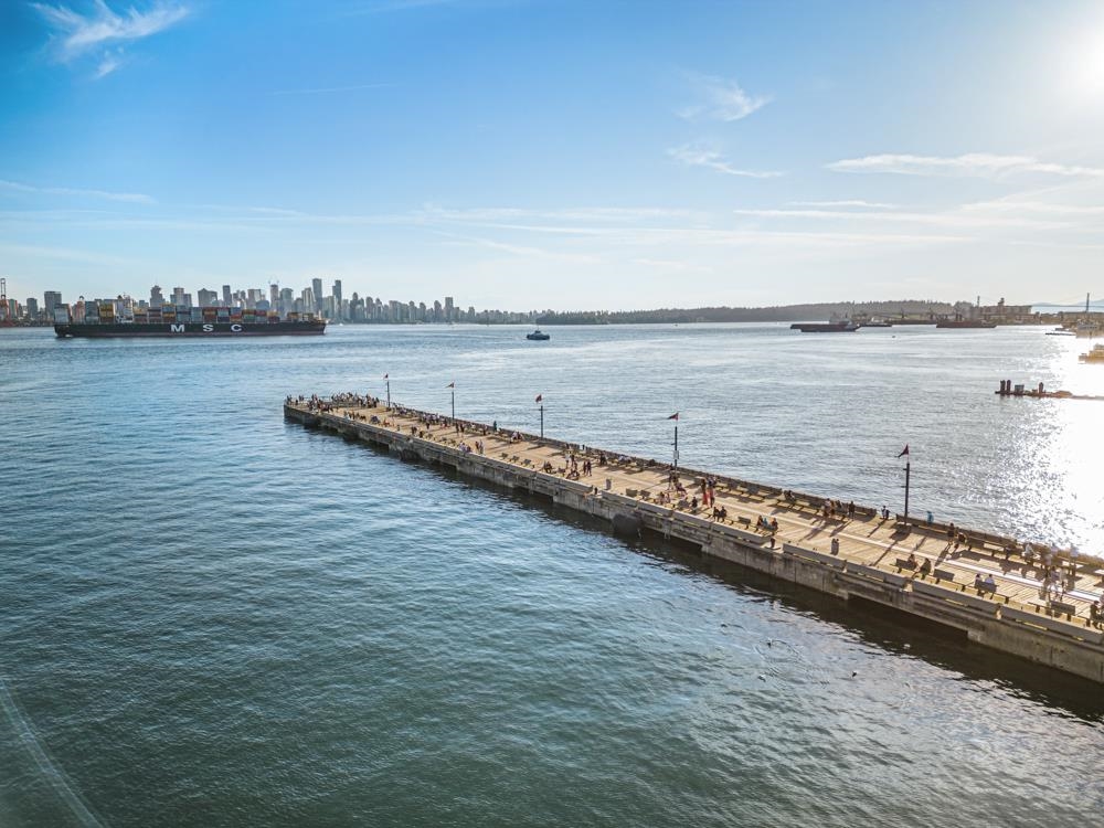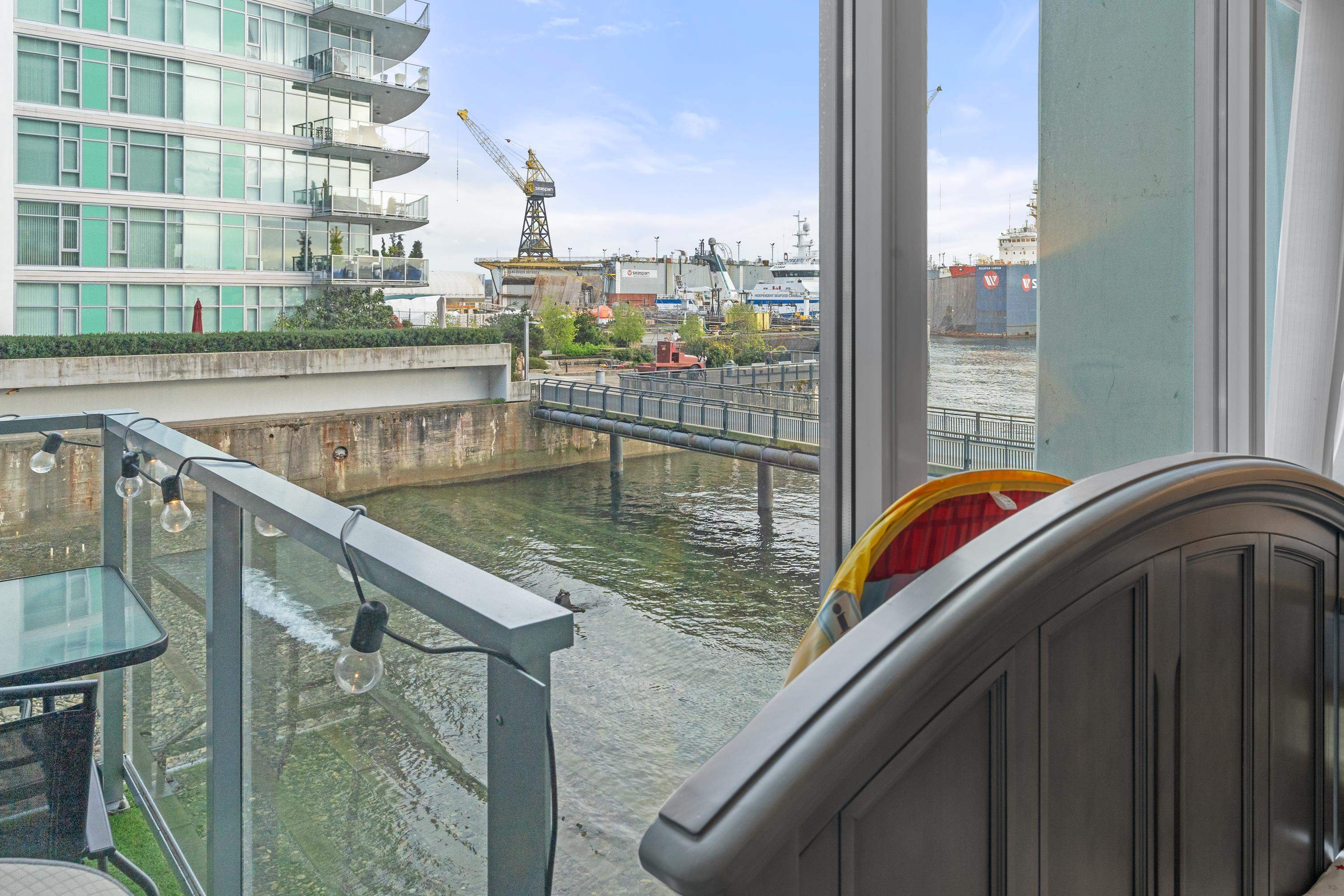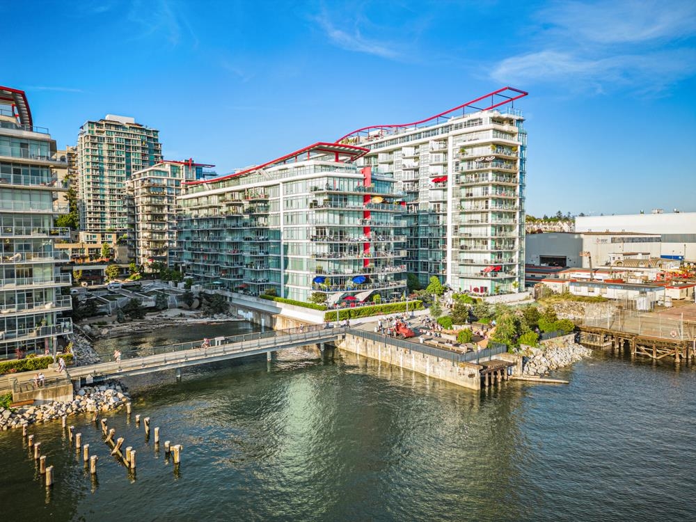 BALCONY ABOVE THE WATER. A stunning 2 bedroom, 2 bathroom, + Den WATERFRONT unit located in the HEART of Lower Lonsdale. This Waterfront condo boasts beautiful views of the water, while your large balcony overlooks the private beach! Featuring 9 foot ceilings, air conditioning, hardwood flooring, and high-end appliances, this unit is the definition of luxury waterfront living. Owners get special VIP privileges at the Pinnacle hotel, including access to an indoor pool, steam room, sauna, jacuzzi, and a fully equipped gym. There is direct access to the waterfront by a private beach between the twin buildings. Walking distance to the Shipyards..restaurants, shops and cafes right next door.