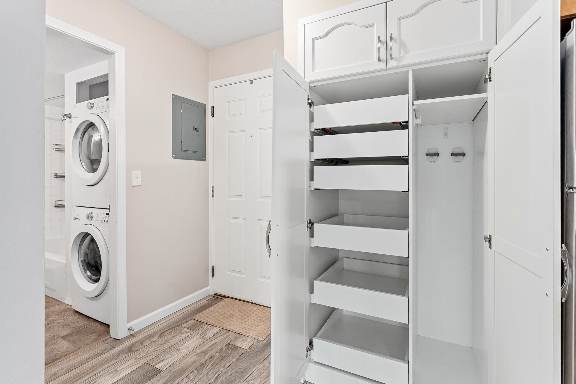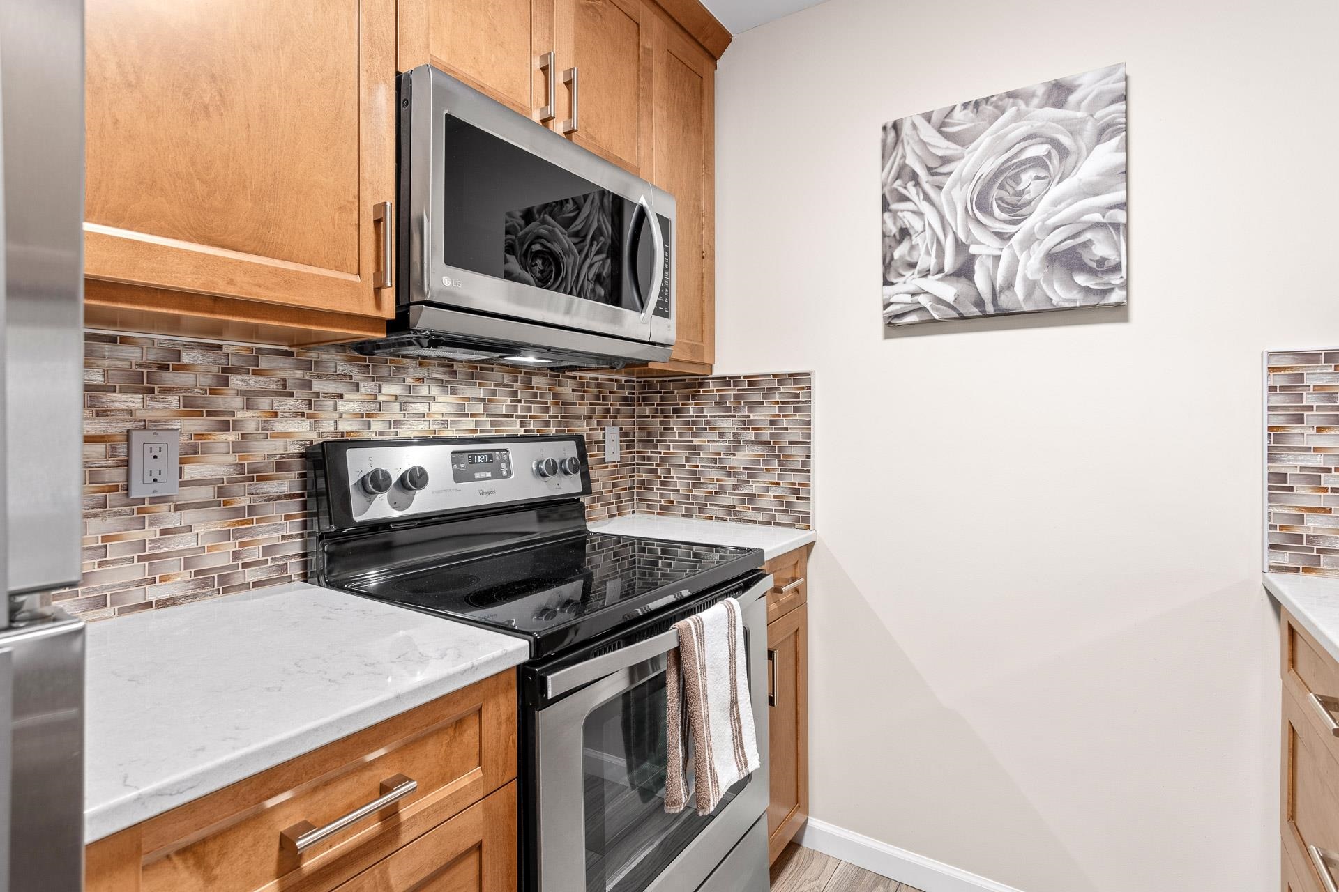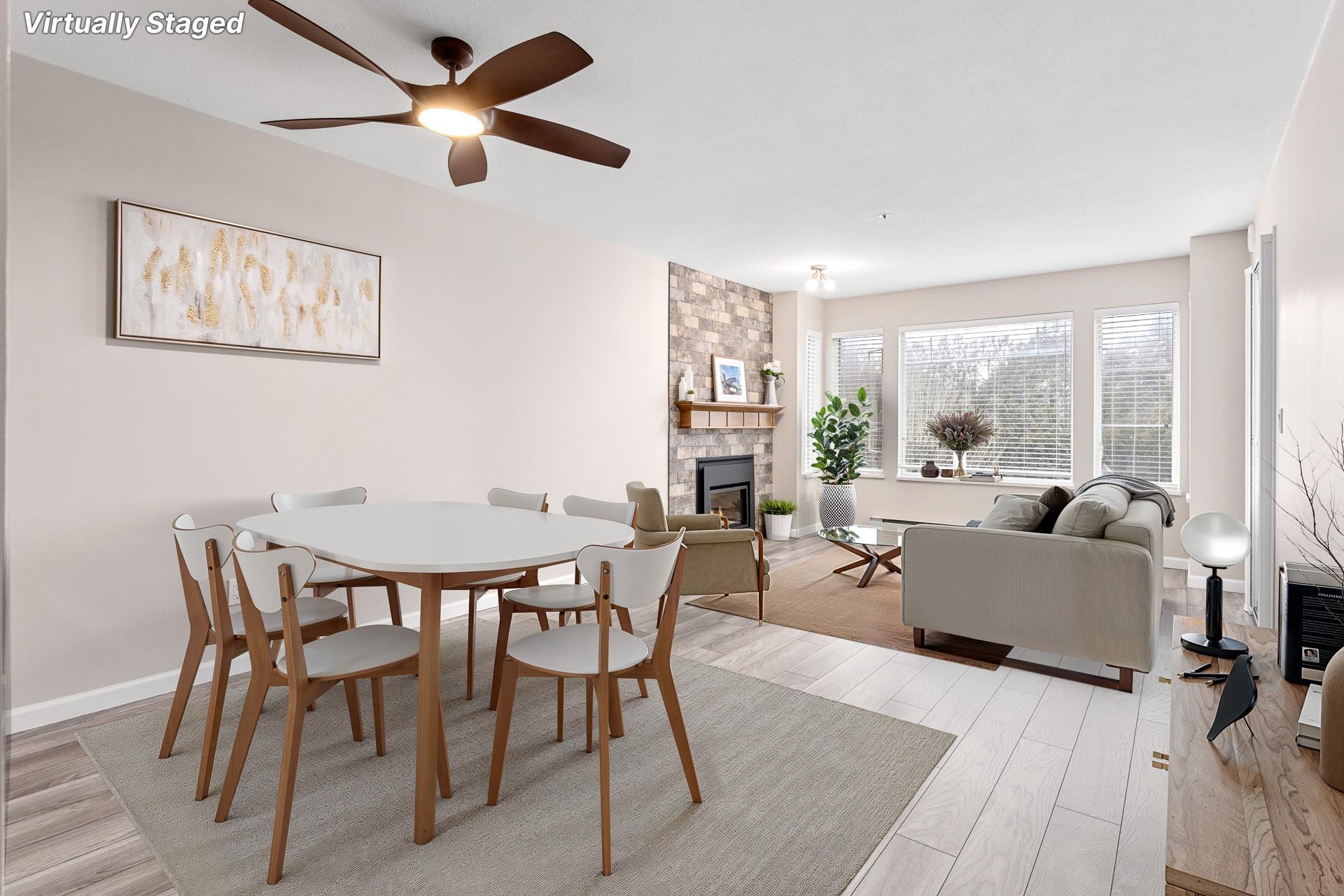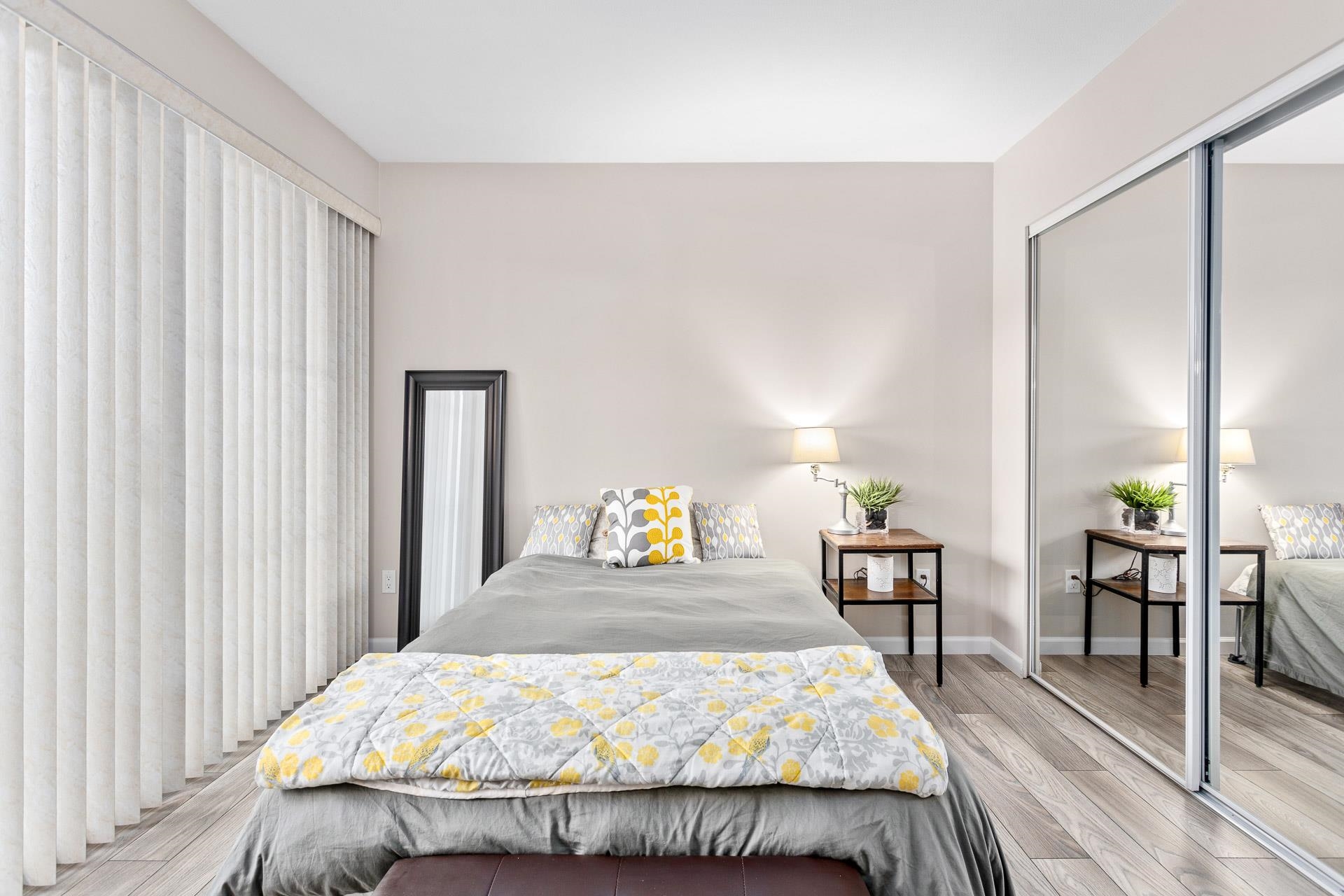 Welcome to Coventry Gate and this beautifully renovated 1 bedroom, 1 bathroom condo. Everything has been done for you. All that is left to do is move your furniture in! Kitchen has been renovated with new cabinets, tiles, appliances, quartz countertop and glass tile backsplash. Bathroom boasts more of the same with beautiful glass tile backsplash making up the feature wall and quartz counters. In the living room you will find a new and efficient gas fireplace and laminate floors. There is even a large west facing balcony with a 58 sq/ft heated storage locker. All in a great central location that is walkable to great shopping and restaurants and about a 12 min walk to the future Skytrain station. (furnished living room photo is virtually staged)