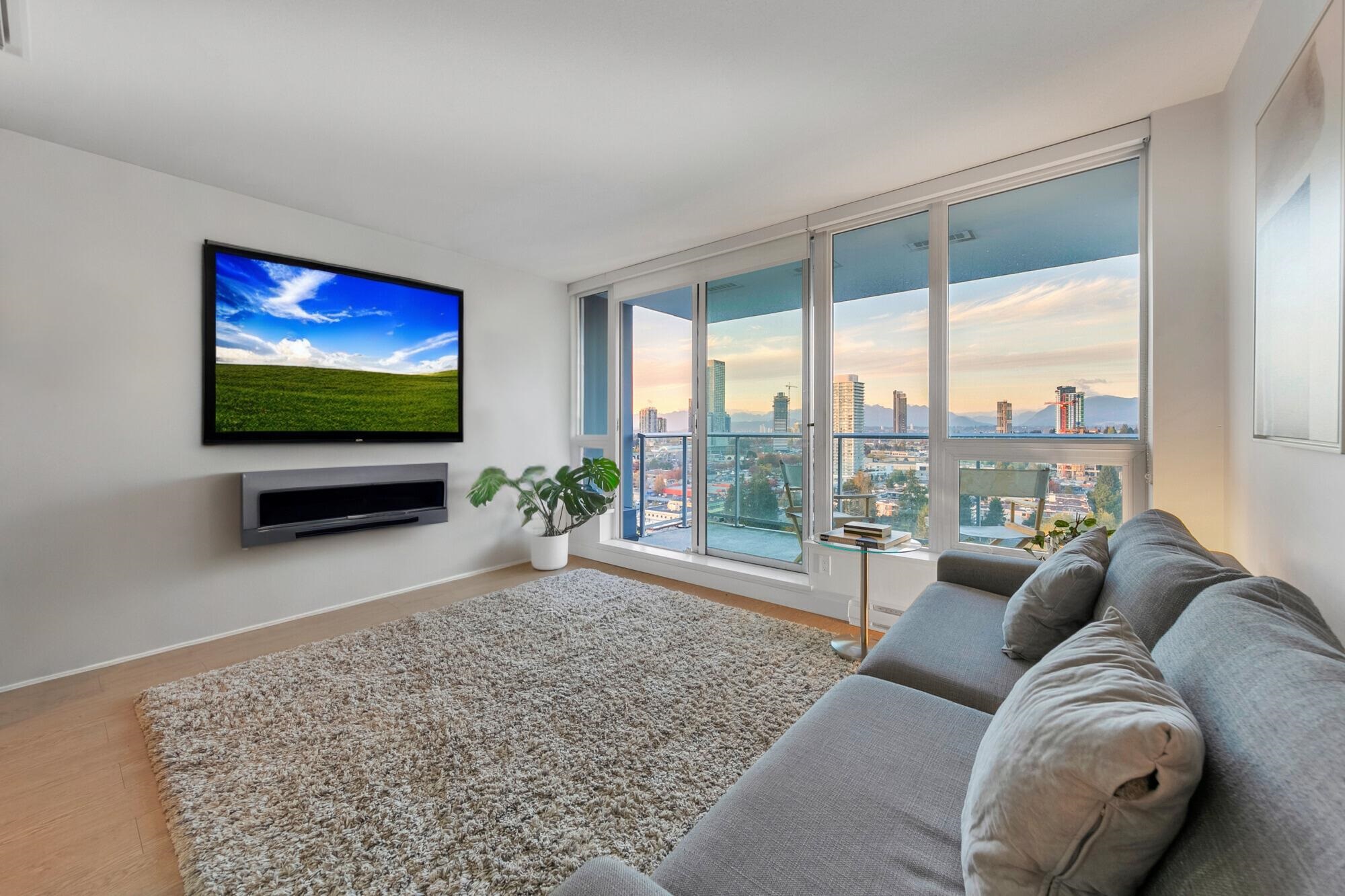 => Open House Saturday March 1st, 2025 2-4pm <= - Welcome to Park Avenue East, a luxurious condo built by Concord Pacific. This well-appointed residence offers resort-like living with an outdoor pool, tennis court, gym, golf simulator, movie theatre, and rooftop sky garden. Centrally located just steps from the King George SkyTrain station, SFU, and Holland Park, and Surrey Memorial Hospital ensuring convenience and connectivity. Enjoy panoramic views of the surrounding mountains from your balcony on the 22nd floor. Immaculately kept with a living space of 454 square feet, this well-designed layout with 1 bedroom, bath and walk-in closet is compact and functional. Includes 1 parking and locker.