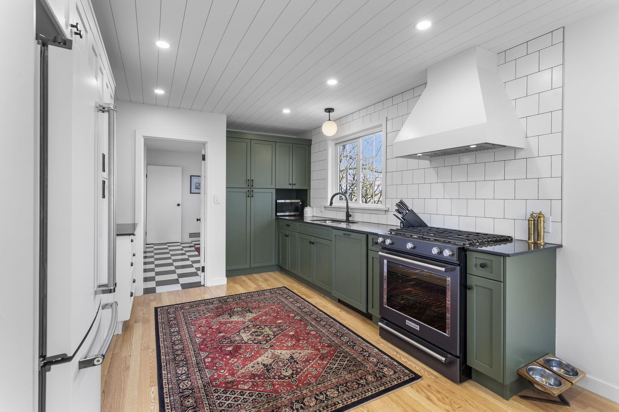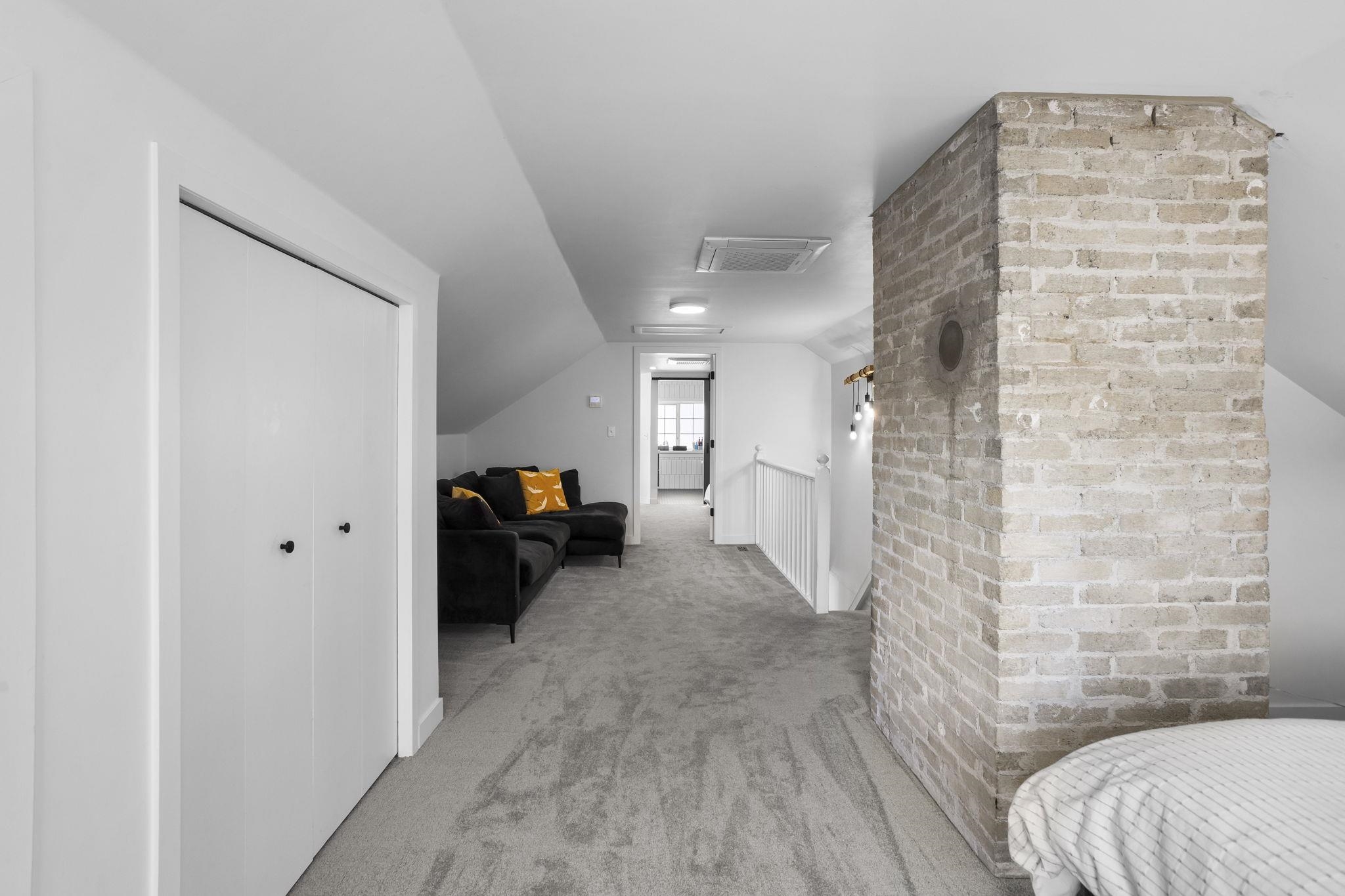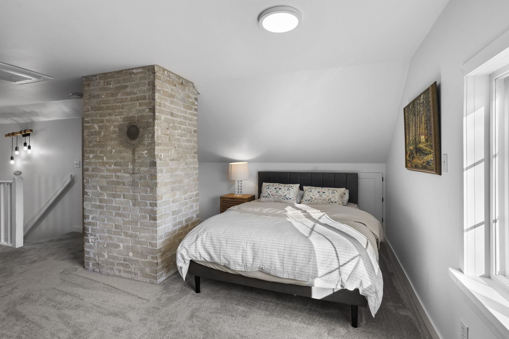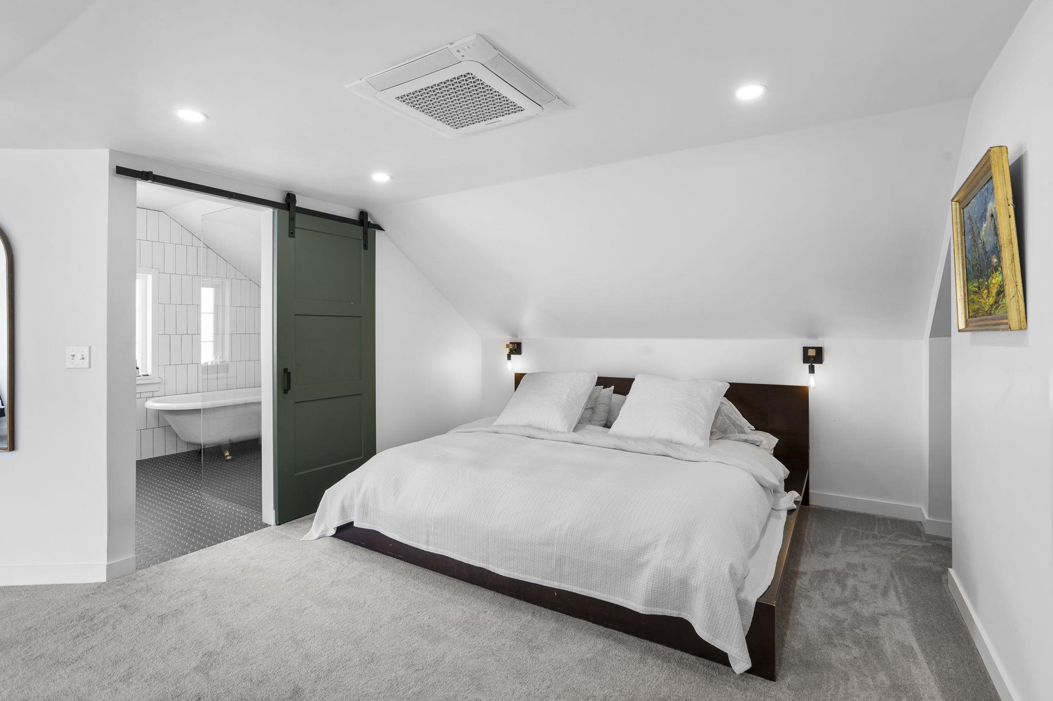 Character meets modern convenience in this beautifully revitalized home! The main floor features a wood-burning fireplace, A/C, and two spacious bedrooms. The redesigned kitchen boasts a gas KitchenAid range, custom hood, sleek French door fridge, panelled dishwasher, and a pot filler for added convenience. Upstairs, a loft-style family room leads to a luxurious primary suite with a spa-like ensuite, heated floors, a brass clawfoot tub, and a custom-built closet—plus room for a second bedroom. Downstairs, 1,400+ sq. ft. of unfinished space offers endless possibilities for storage, a workshop, or more. Outside, the private fenced yard features a spacious patio, perfect for entertaining, surrounded by lush greenery in the summer months. Close to pubs, restaurants, schools & so much more.