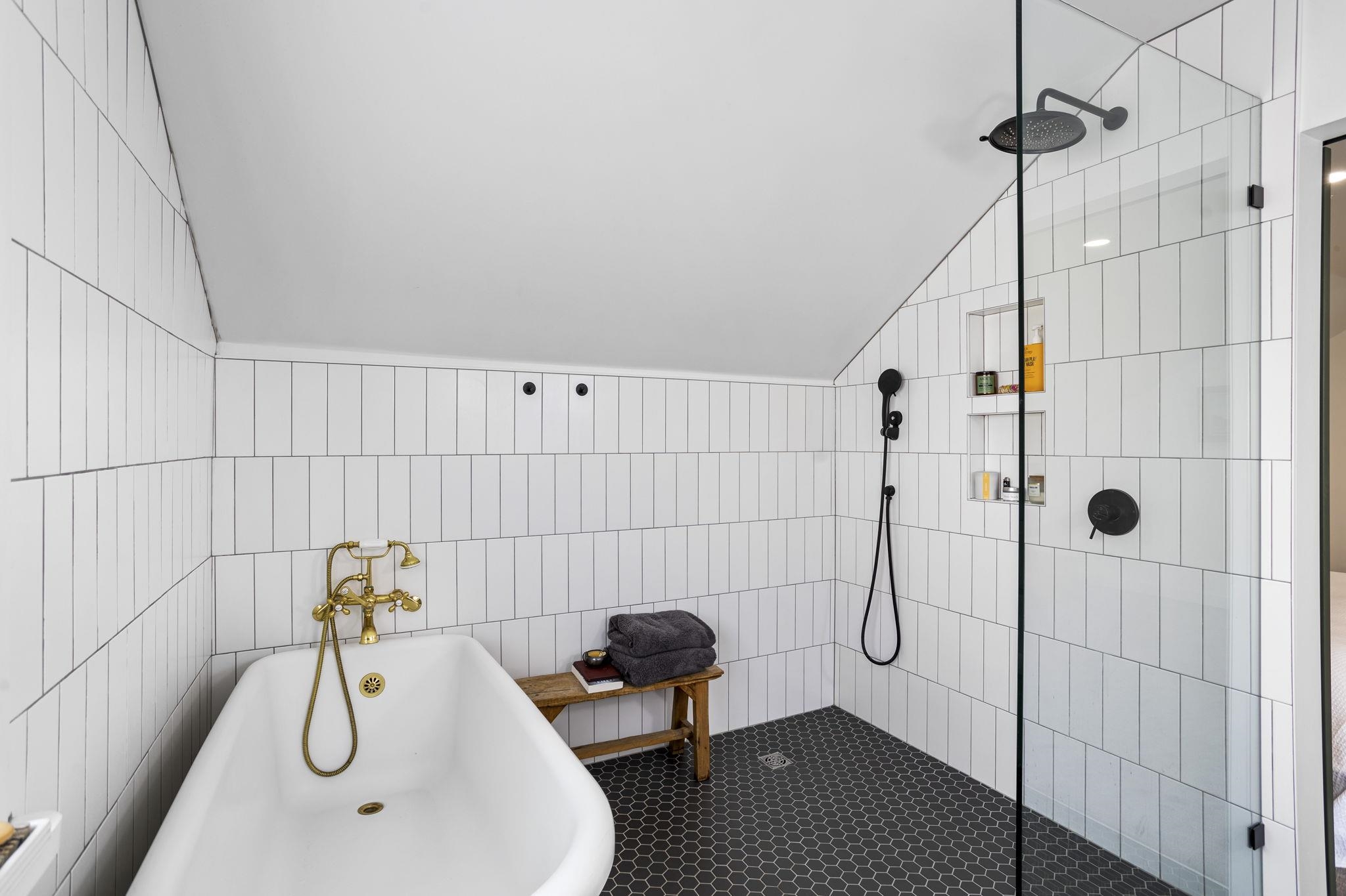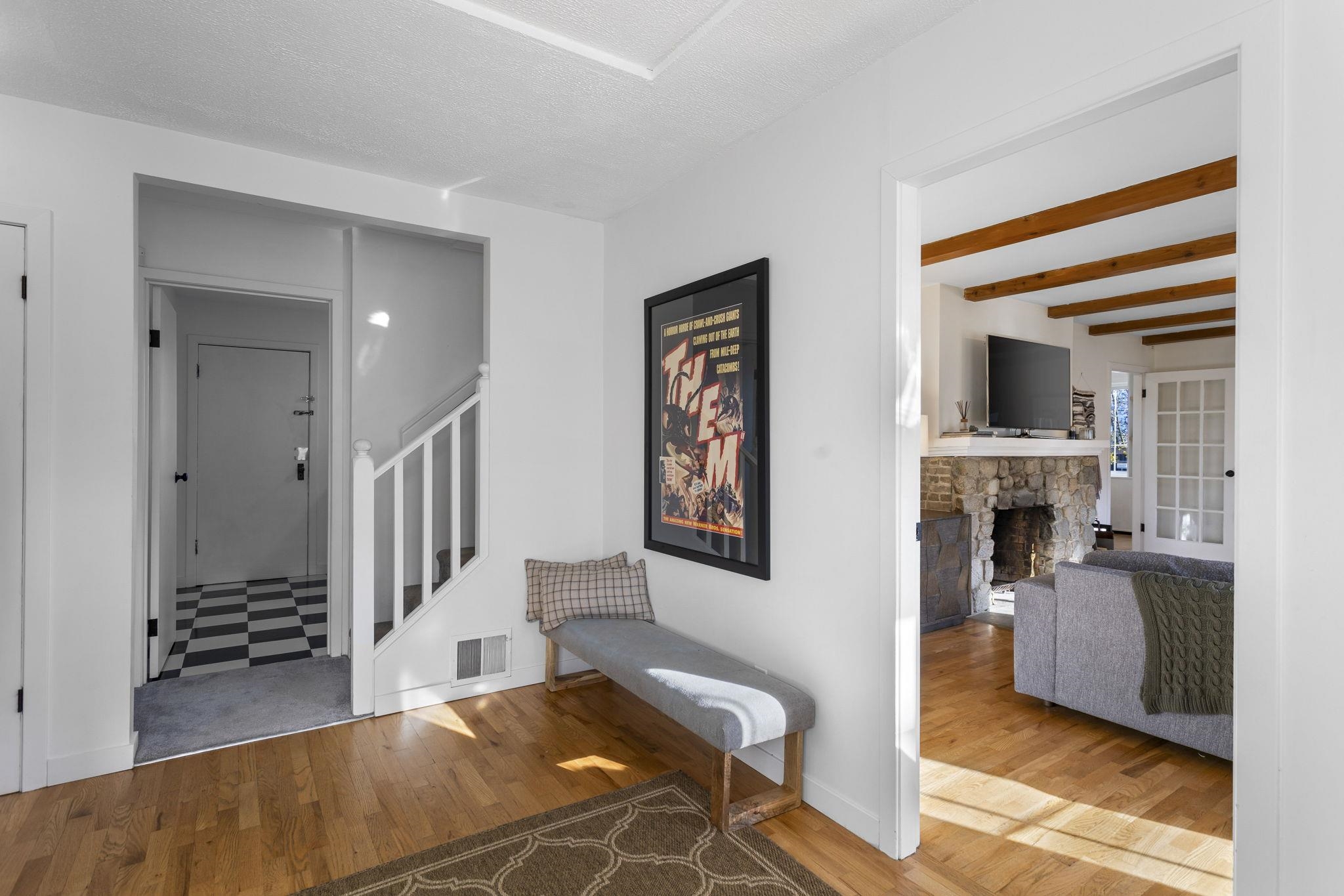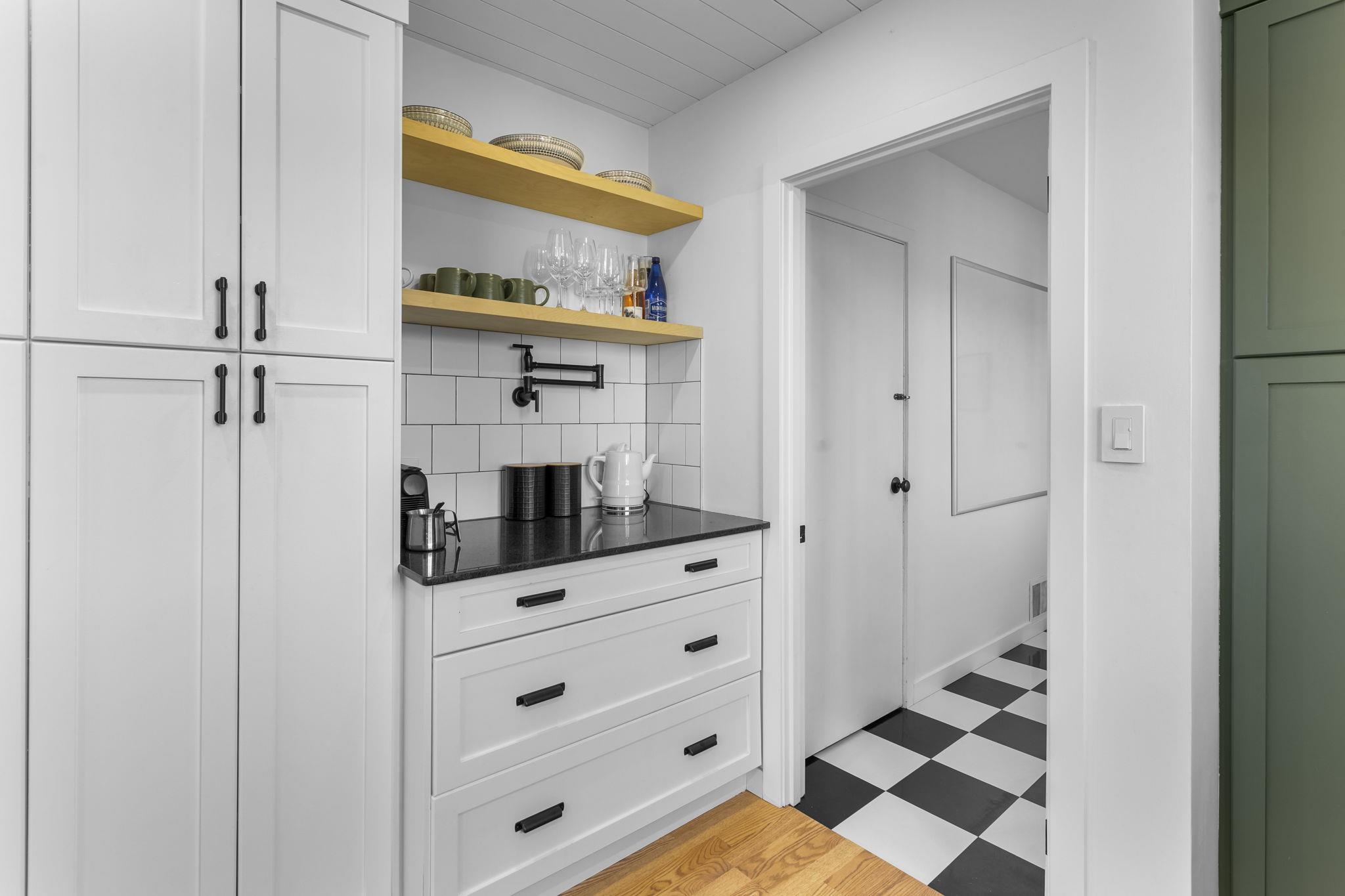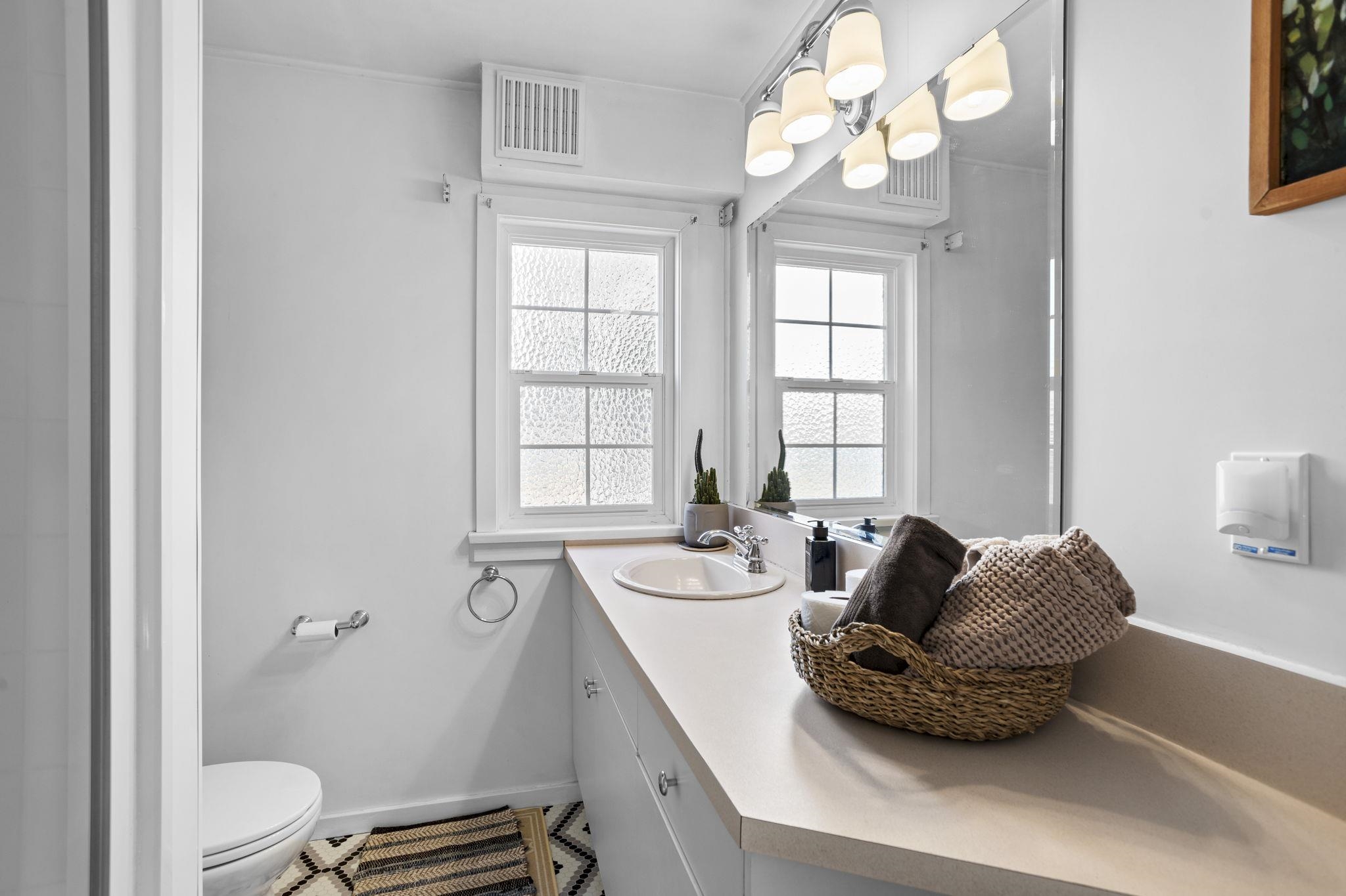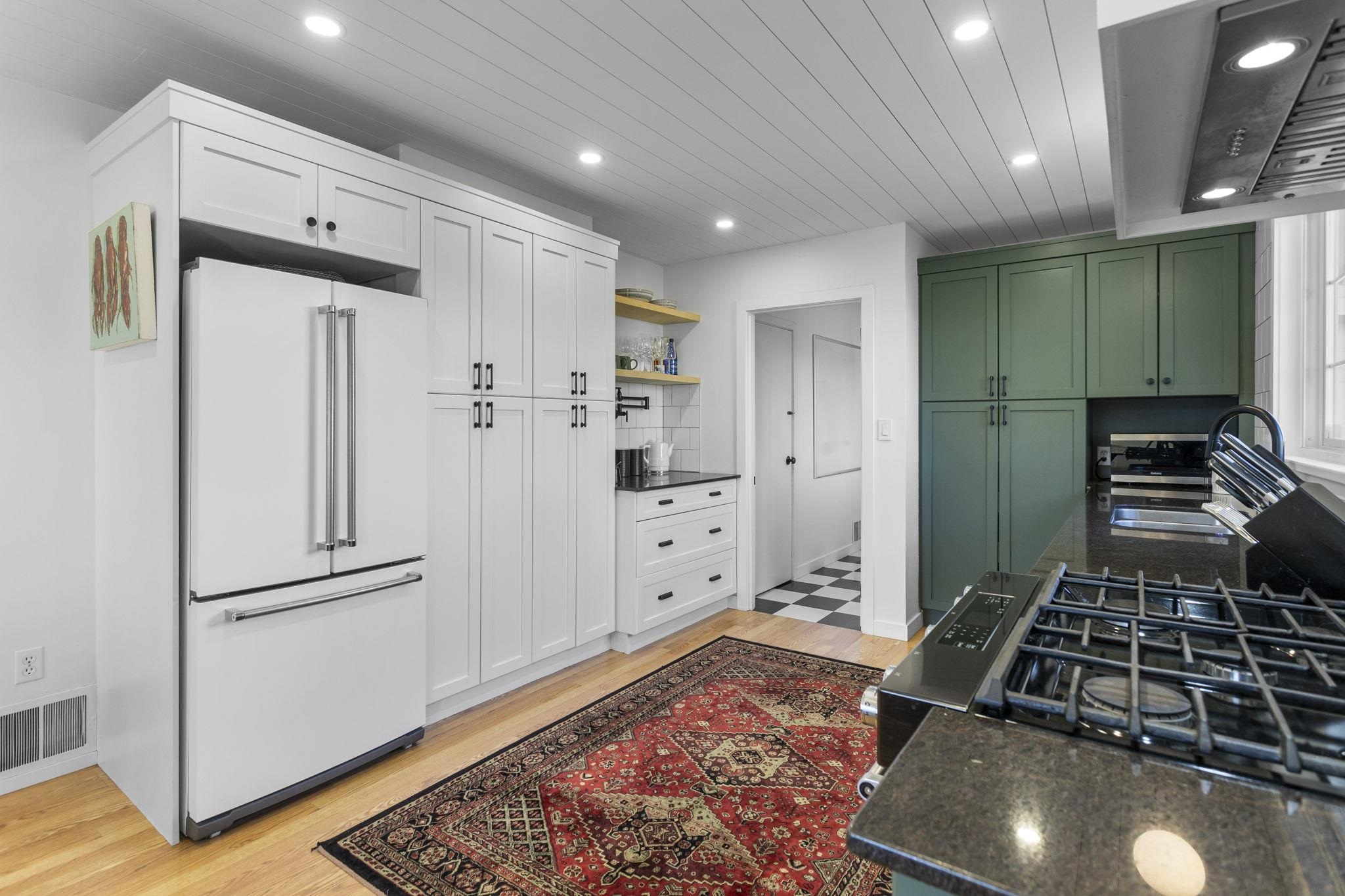 Character meets modern convenience in this beautifully revitalized home! The main floor features a wood-burning fireplace, A/C, and two spacious bedrooms. The redesigned kitchen boasts a gas KitchenAid range, custom hood, sleek French door fridge, panelled dishwasher, and a pot filler for added convenience. Upstairs, a loft-style family room leads to a luxurious primary suite with a spa-like ensuite, heated floors, a brass clawfoot tub, and a custom-built closet—plus room for a second bedroom. Downstairs, 1,400+ sq. ft. of unfinished space offers endless possibilities for storage, a workshop, or more. Outside, the private fenced yard features a spacious patio, perfect for entertaining, surrounded by lush greenery in the summer months. Close to pubs, restaurants, schools & so much more.