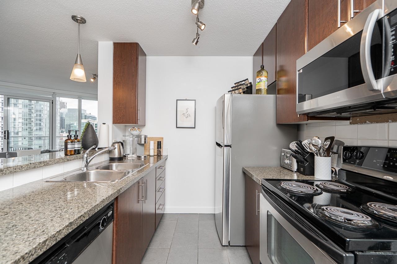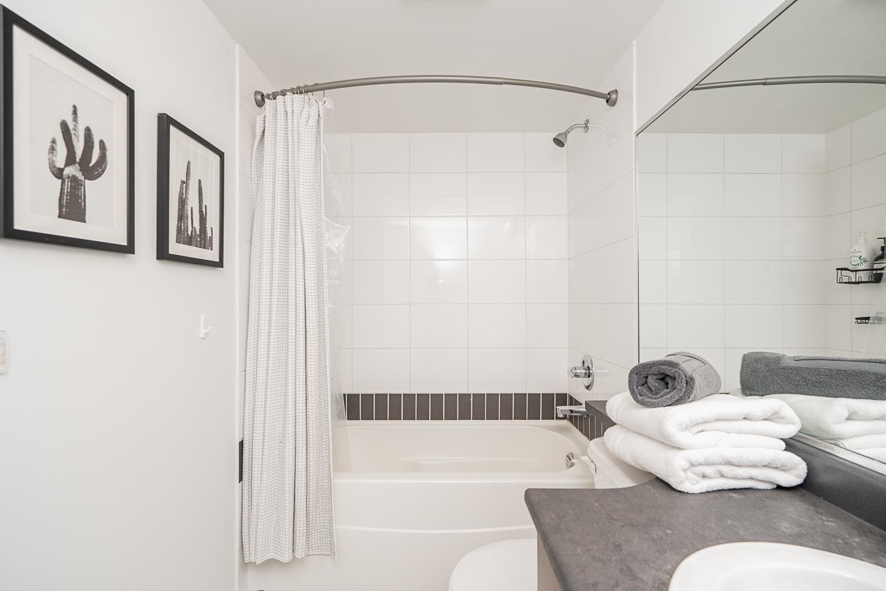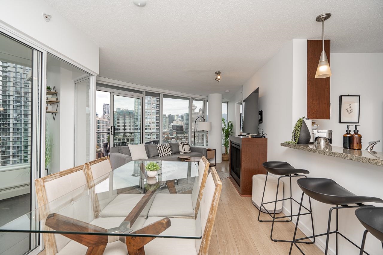 This stunning 2-bedroom, 2-bathroom apartment is located in the heart of International Village’s Crosstown, downtown Vancouver. This bright corner unit features a solarium that receives abundant natural light, along with a private balcony offering breathtaking mountain views and a beautiful glimpse of the water. The building offers top-notch amenities, including a gym, indoor pool, steam room, hot tub, lounge, and professional concierge services. Conveniently situated steps from transit, restaurants, shops, and more, the unit also includes one parking space and a bike locker.