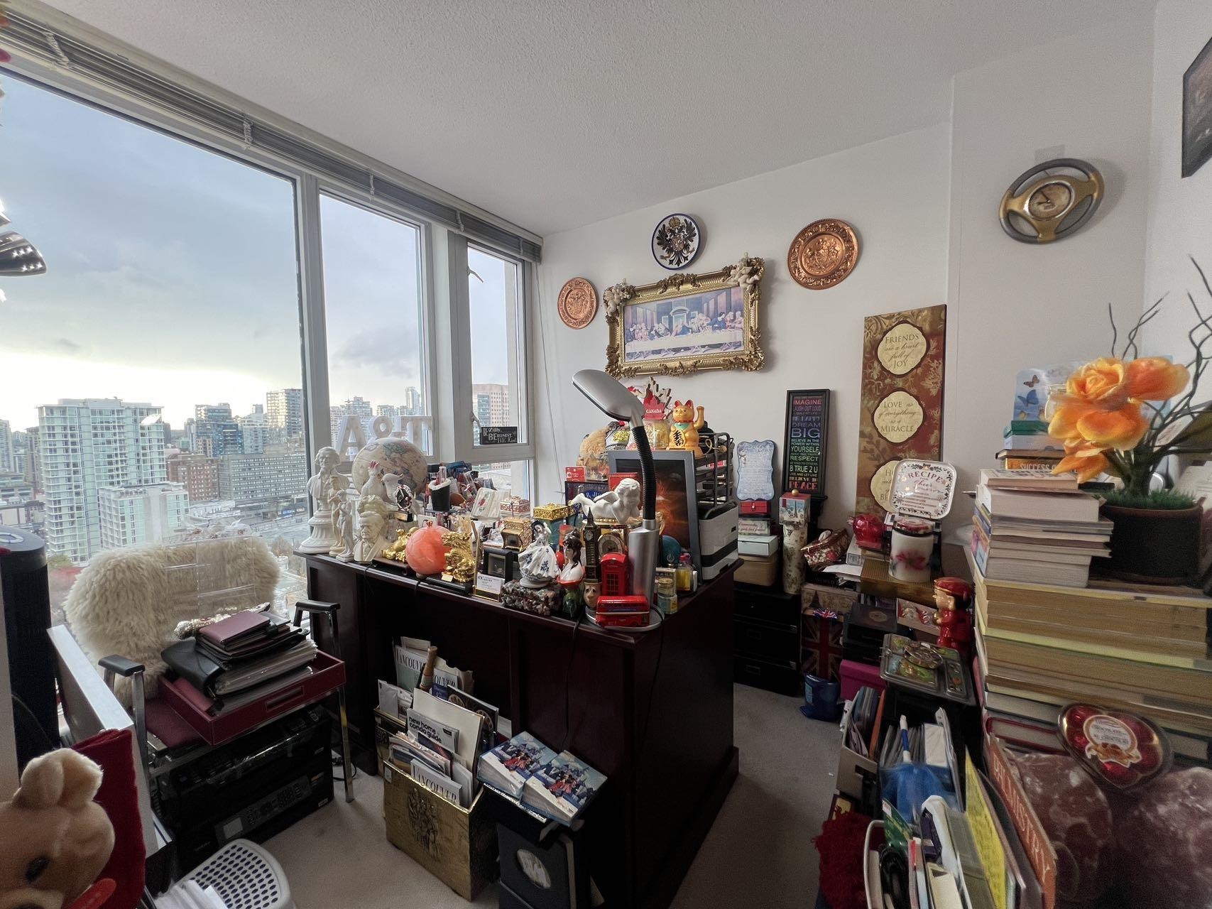 LIVE, RENT OR AIRBNB: Paris Place is located in Crosstown.This is the largest unit of the same floor w/1183 SF of living space & stunning 270 degree views of Harbour, Mountains, Science World, False Creek, Elizabeth Park and City etc! This is the best layout in the complex with 2 Bed+Den, 1 full bath + 1 shower, a LARGE solarium (perfect for having family over or for running an Airbnb) & a locked off storage room inside the unit. Amenities in the building include Fitness Centre, Indoor Pool, Sauna Steam room, Hot Tub & a common Garden. Can Play table tennis and snooker as well. This complex is just steps from the Skytrain, T&T, International Village (Cinema ),Rogers Arena & BC Place+ Stadium & just minites walk to Gastown.The owner is an antique collector. BONUS: 2 parking stalls included!