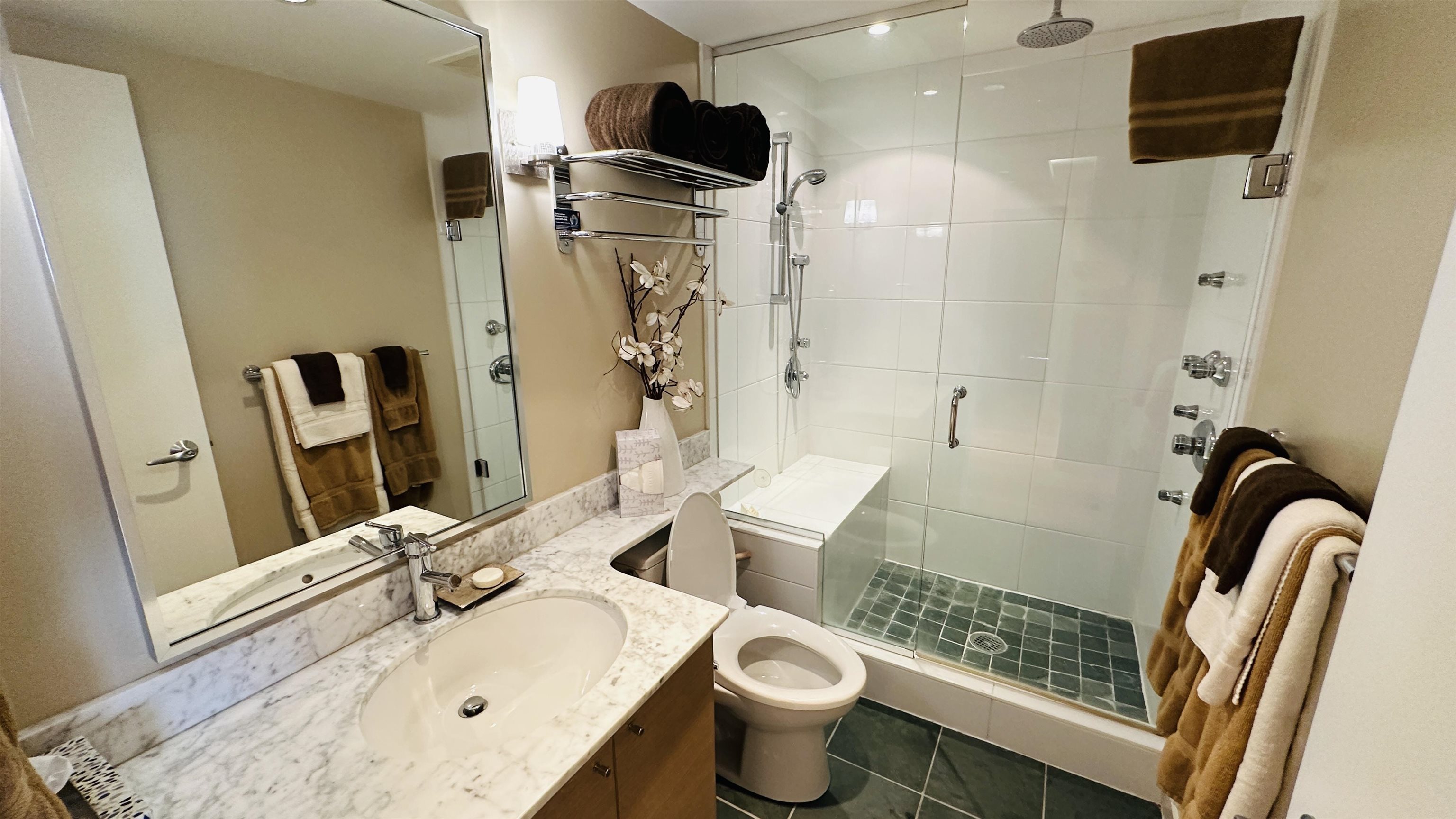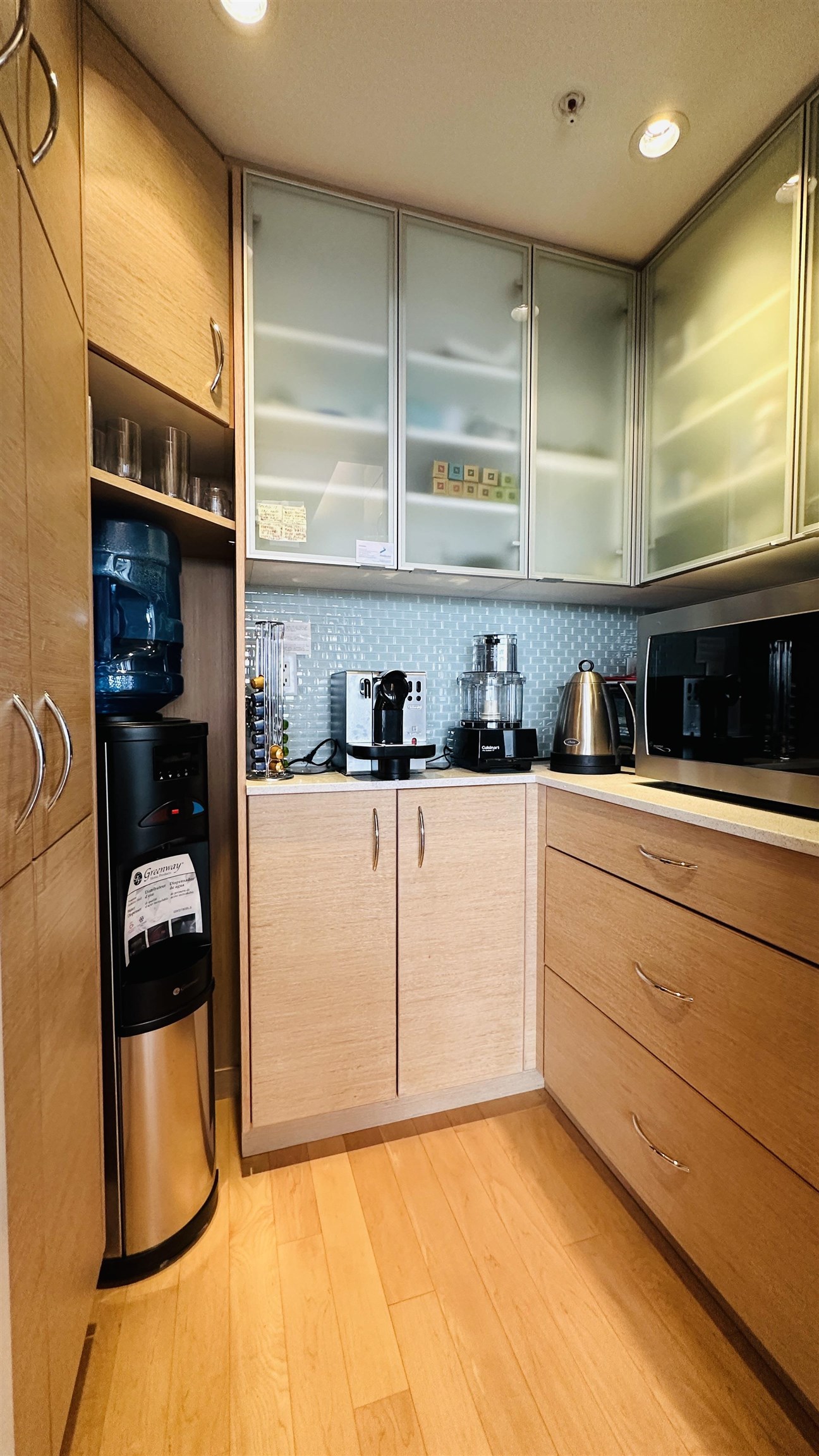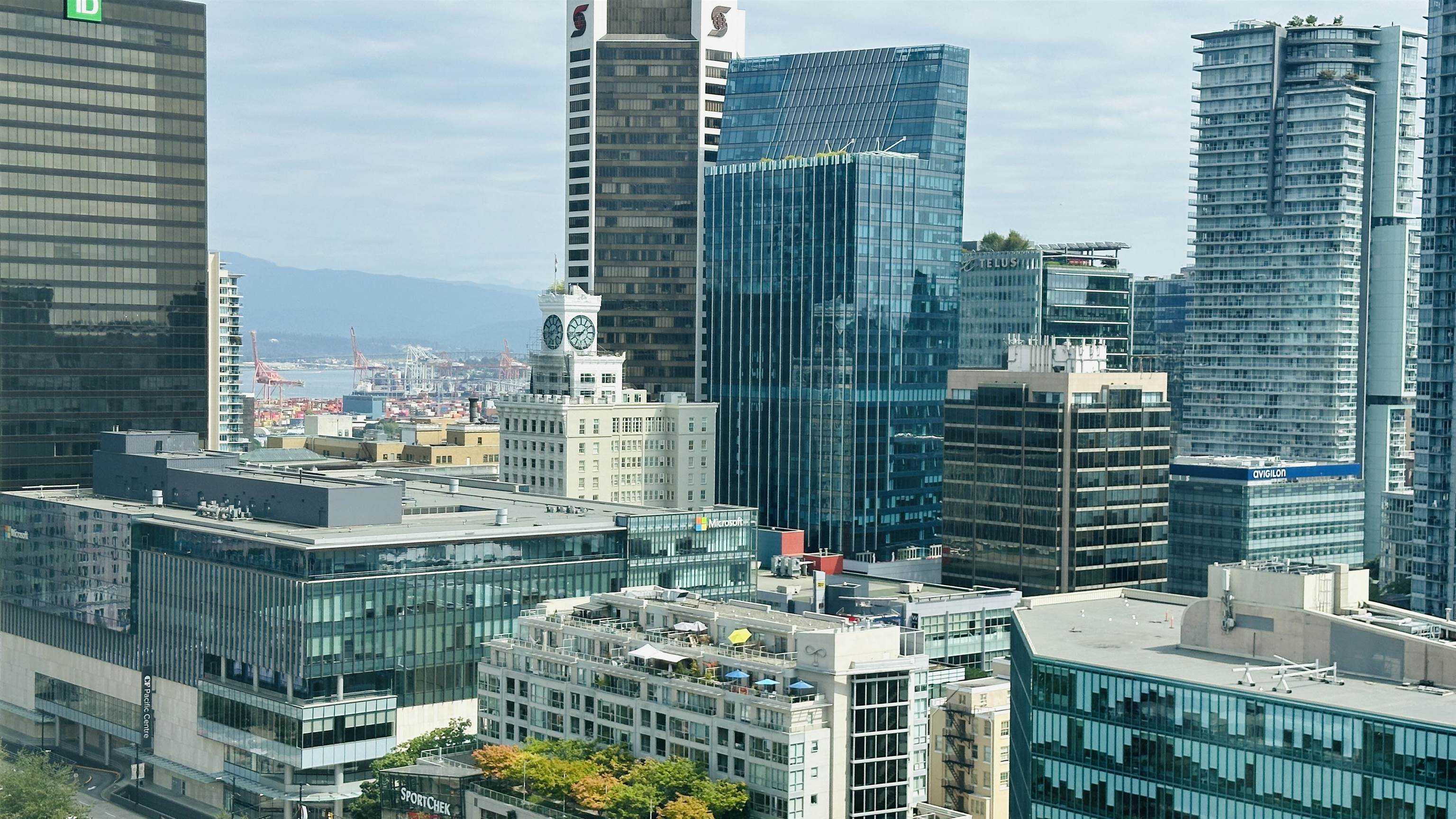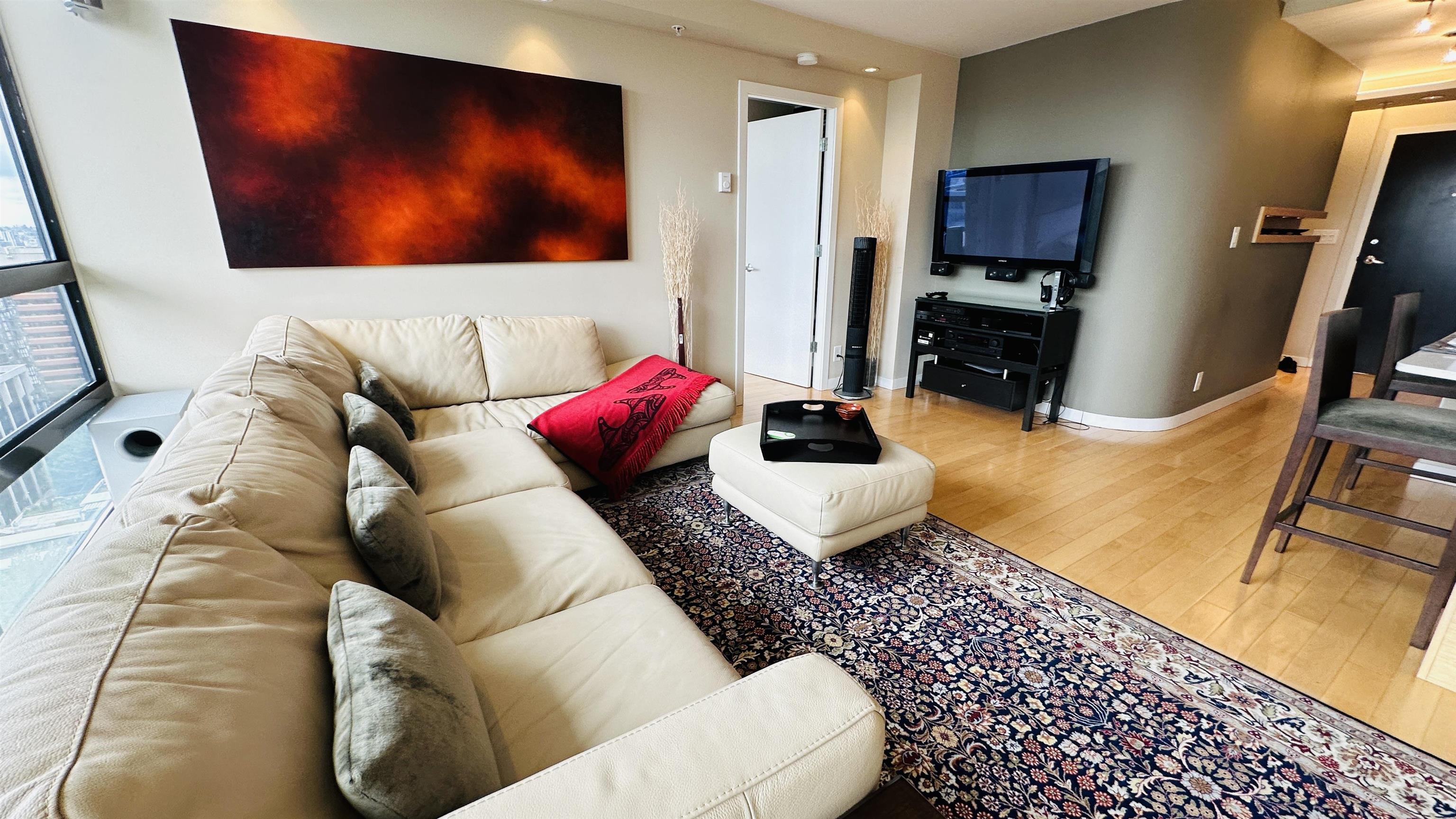 PENTHOUSE. Enjoy spectacular city & some water views from this Customized 2 bedroom unit. This gorgeous unit features a large living and dining room, a Master bedroom with an ensuite, Hardwood floors, Gourmet SS appliances and a wine cooler. The building has 24-hour concierge, gym, party, meeting & theatre rooms. The location is unbeatable, steps away from Burrard station, YMCA, IGA market, Robson Street shops, restaurants & coffee shops.