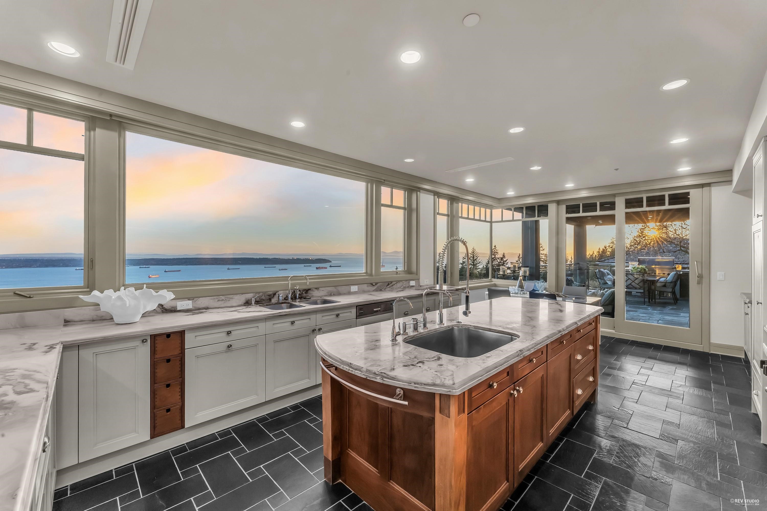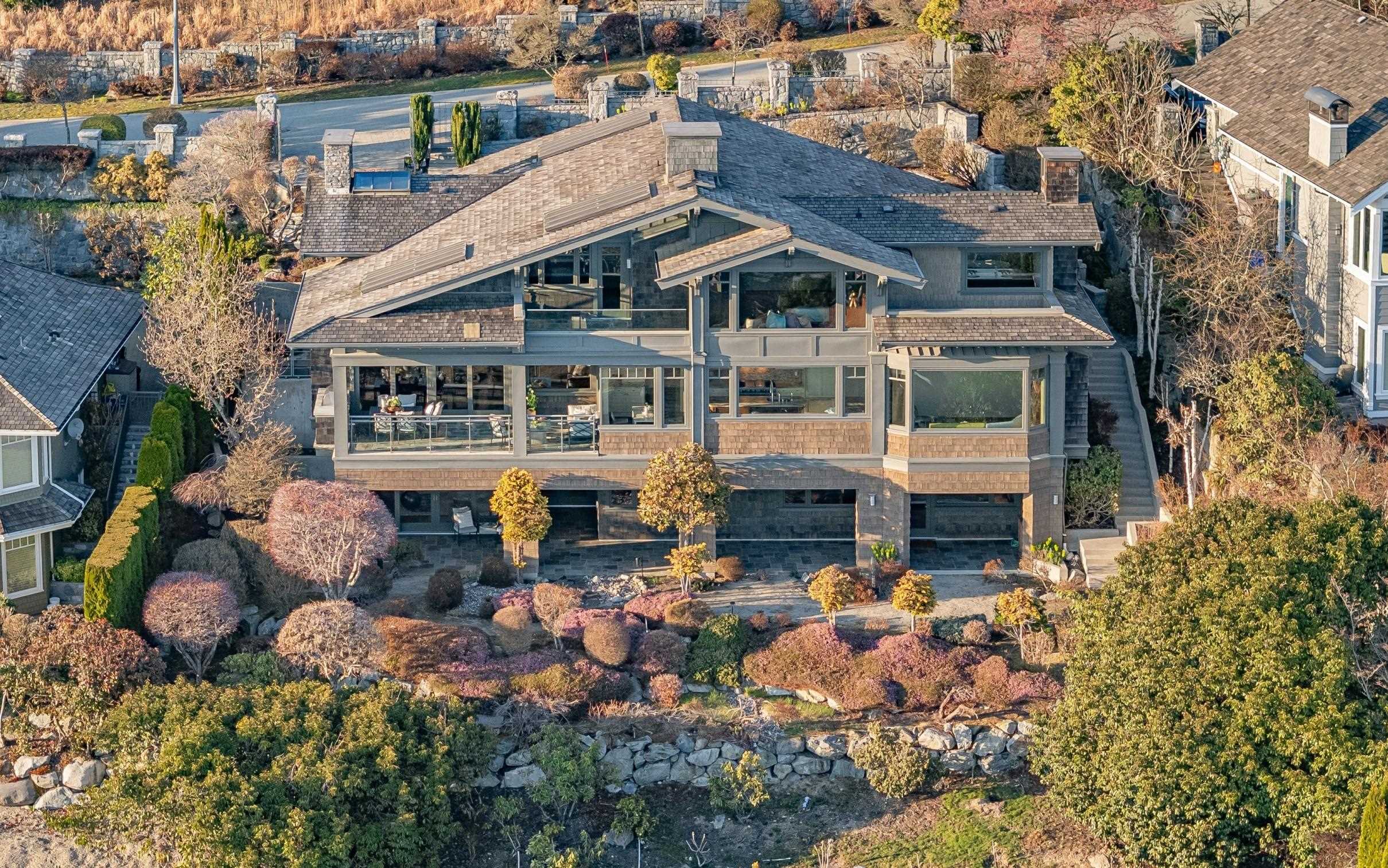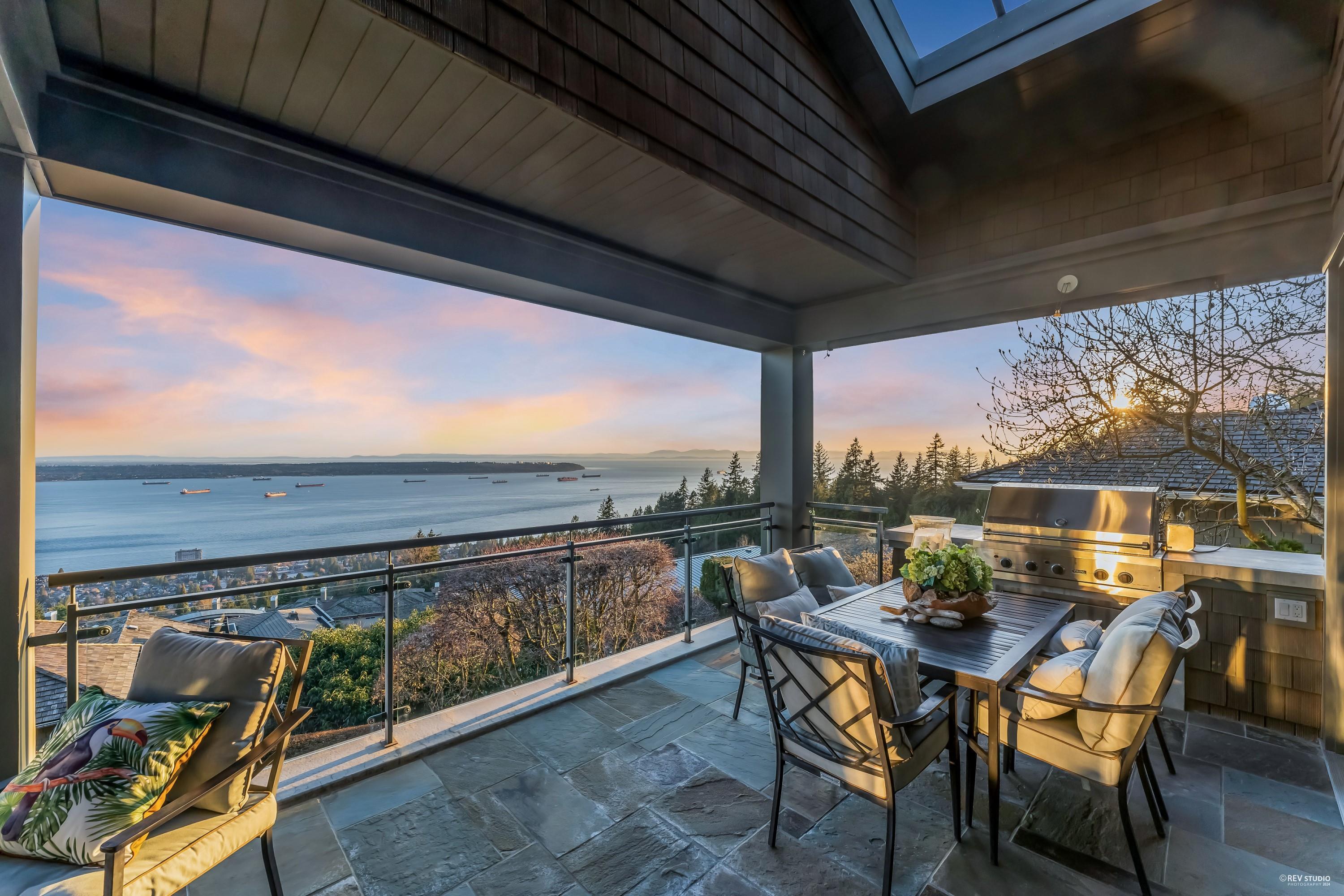 Discover the epitome of luxury in prestigious Whitby Estate West Vancouver. Crafted by Brad Lamoureux & Bradner Homes, this home offers breathtaking ocean & city views from every corner. With three levels of opulent living space, this West Coast contemporary masterpiece boasts top-tier craftsmanship & attention to detail. The double-height foyer leads to spacious formal living & dining rooms w/ a stunning 20-foot stone fireplace. The gourmet kitchen features high-end appliances, central island bar, and opens onto an expansive sundeck with a built-in BBQ. Five bedrooms most with ensuites, include a magnificent master suite w/ a private ocean view terrace. Hardwood floors, deluxe home theatre, gym, electric curtains, three-car garage w/ car lift rack, storage loft & much more.