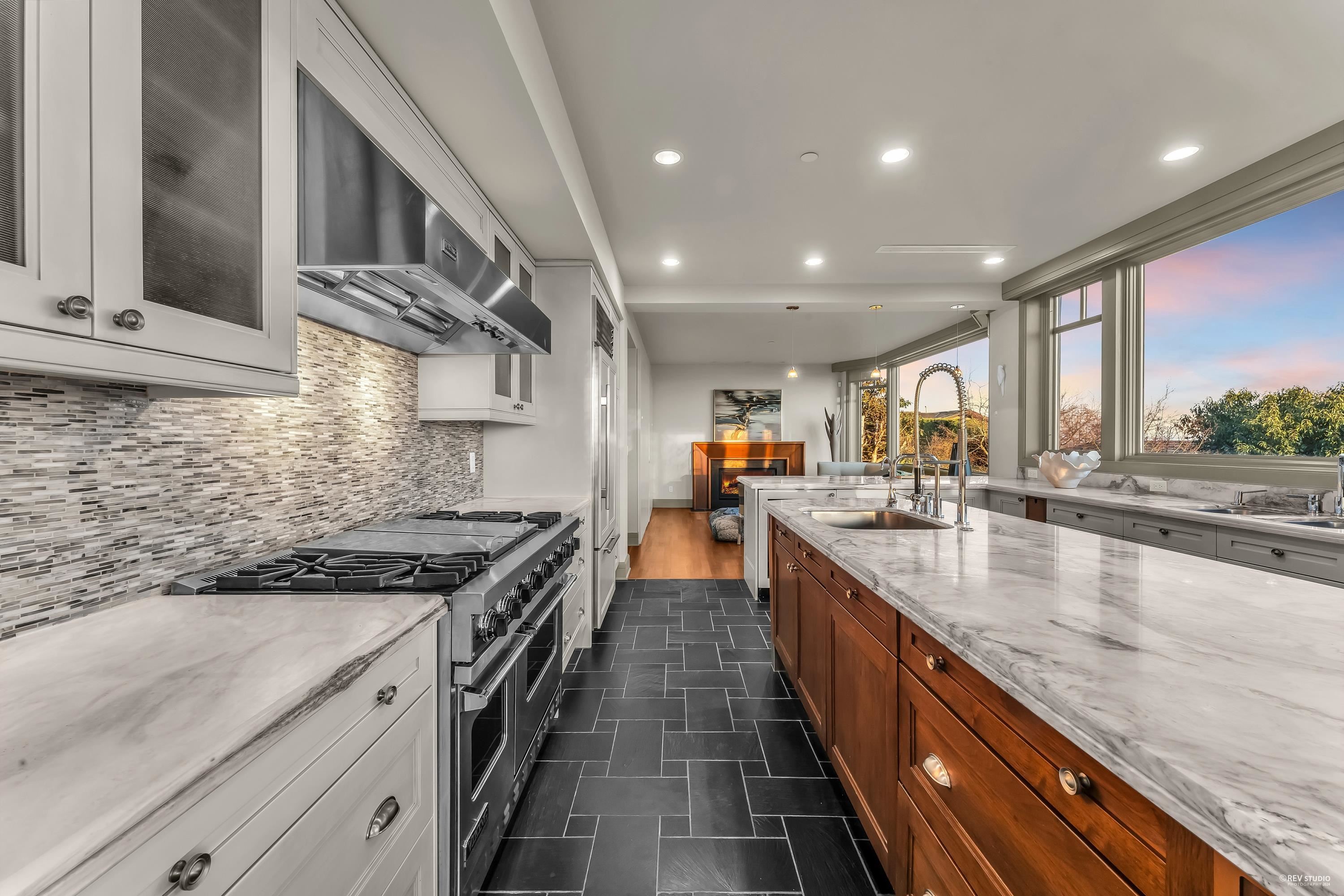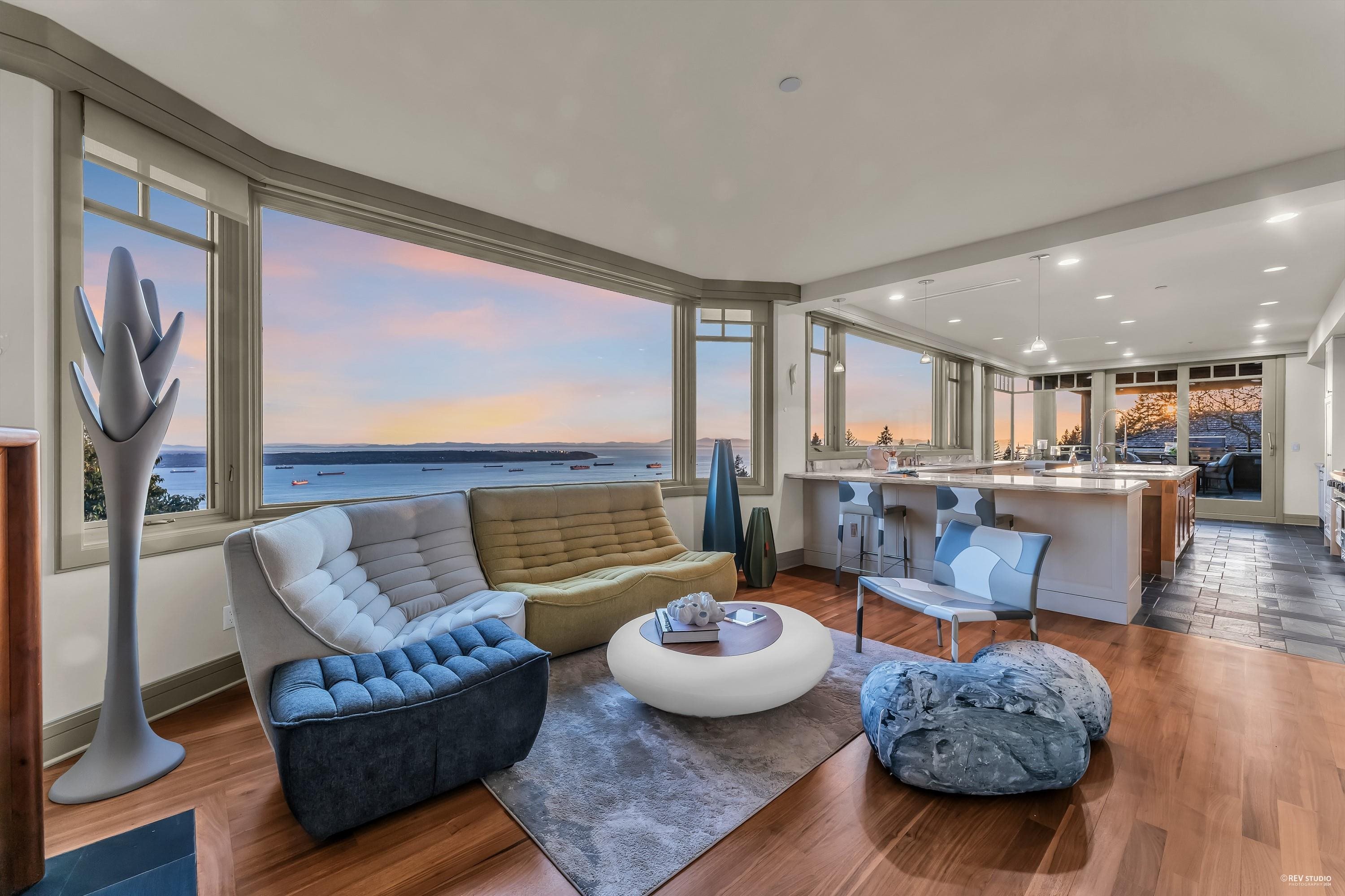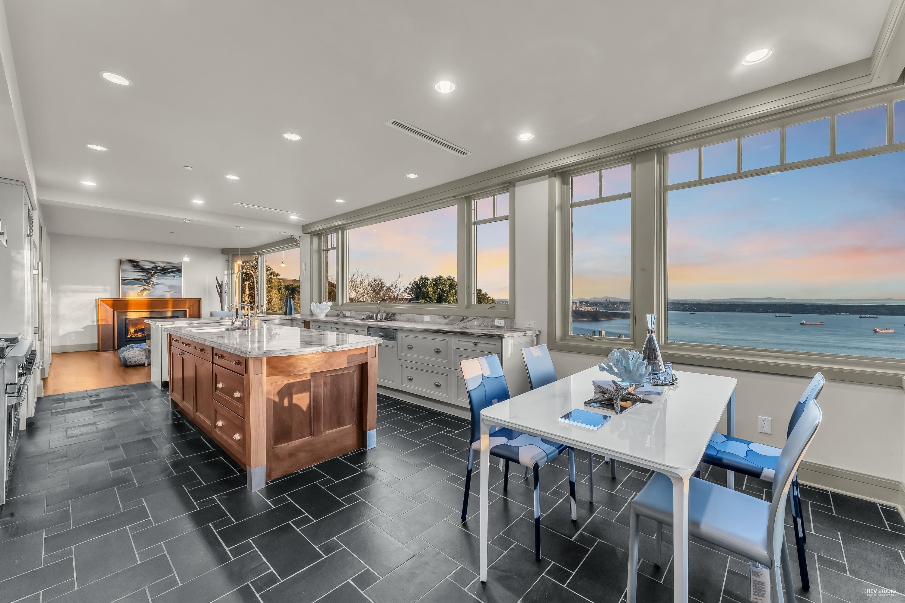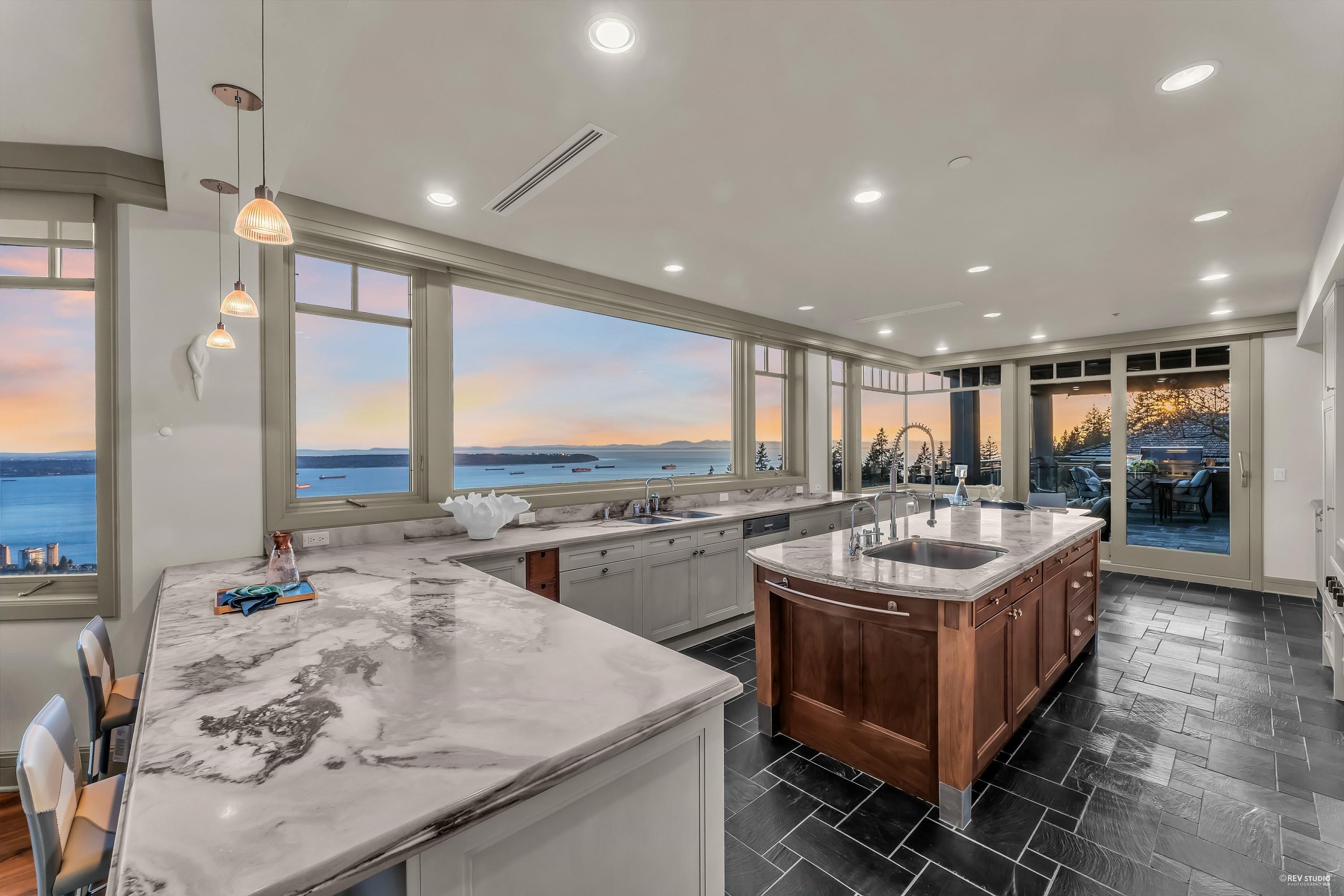 Discover the epitome of luxury in prestigious Whitby Estate West Vancouver. Crafted by Brad Lamoureux & Bradner Homes, this home offers breathtaking ocean & city views from every corner. With three levels of opulent living space, this West Coast contemporary masterpiece boasts top-tier craftsmanship & attention to detail. The double-height foyer leads to spacious formal living & dining rooms w/ a stunning 20-foot stone fireplace. The gourmet kitchen features high-end appliances, central island bar, and opens onto an expansive sundeck with a built-in BBQ. Five bedrooms most with ensuites, include a magnificent master suite w/ a private ocean view terrace. Hardwood floors, deluxe home theatre, gym, electric curtains, three-car garage w/ car lift rack, storage loft & much more.