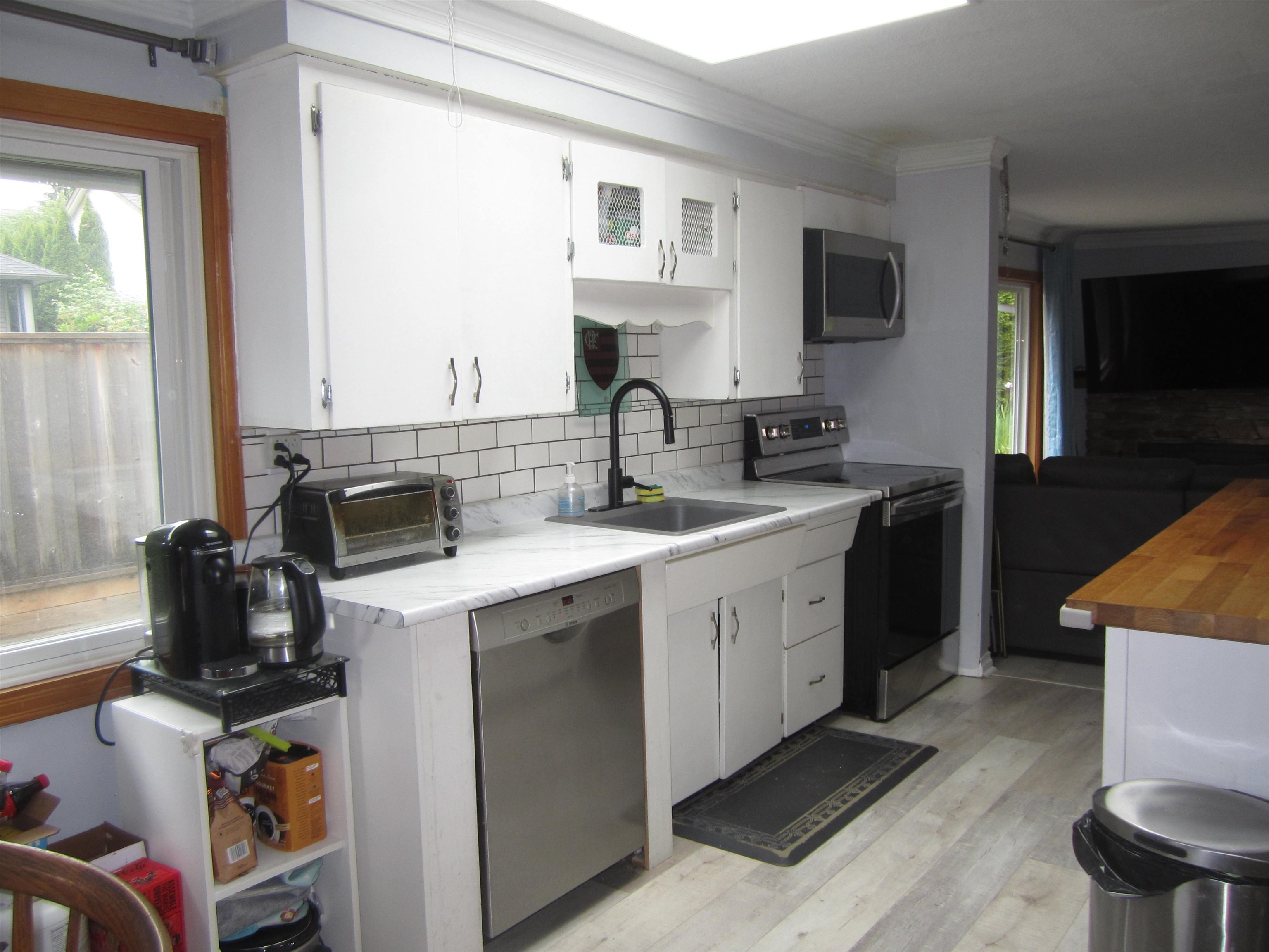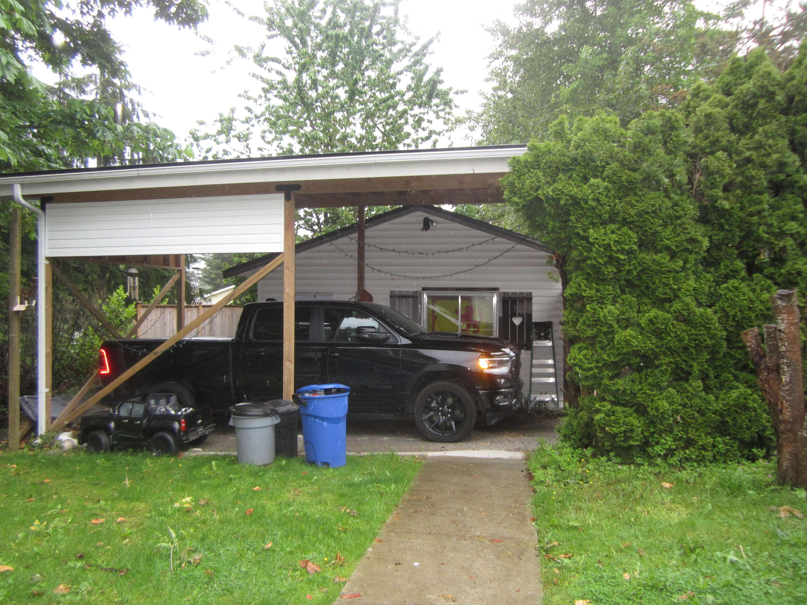 Huge potential for future value in this centrally located 3 bedroom rancher, 2 baths with basement on a 9000 sq.ft. lot - with a detached double garage and huge carport. Future carriage home or duplex developers, zoned for secondary dwelling. Bring ideas so much potential. New 3 pc bath ensuite, newer 4 pc main bath, insulation, new roof, windows, furnace, carport and fence. Trim the hedges to enjoy valley views towards Mount Baker. Lower 6' ft ceiling in the basement used as extra bedroom and office, but really tons of storage area. Master bedroom leads out to the patio 34' x 14' and lovely private yard, welcome gardeners. RV parking. Fenced yard, very private.