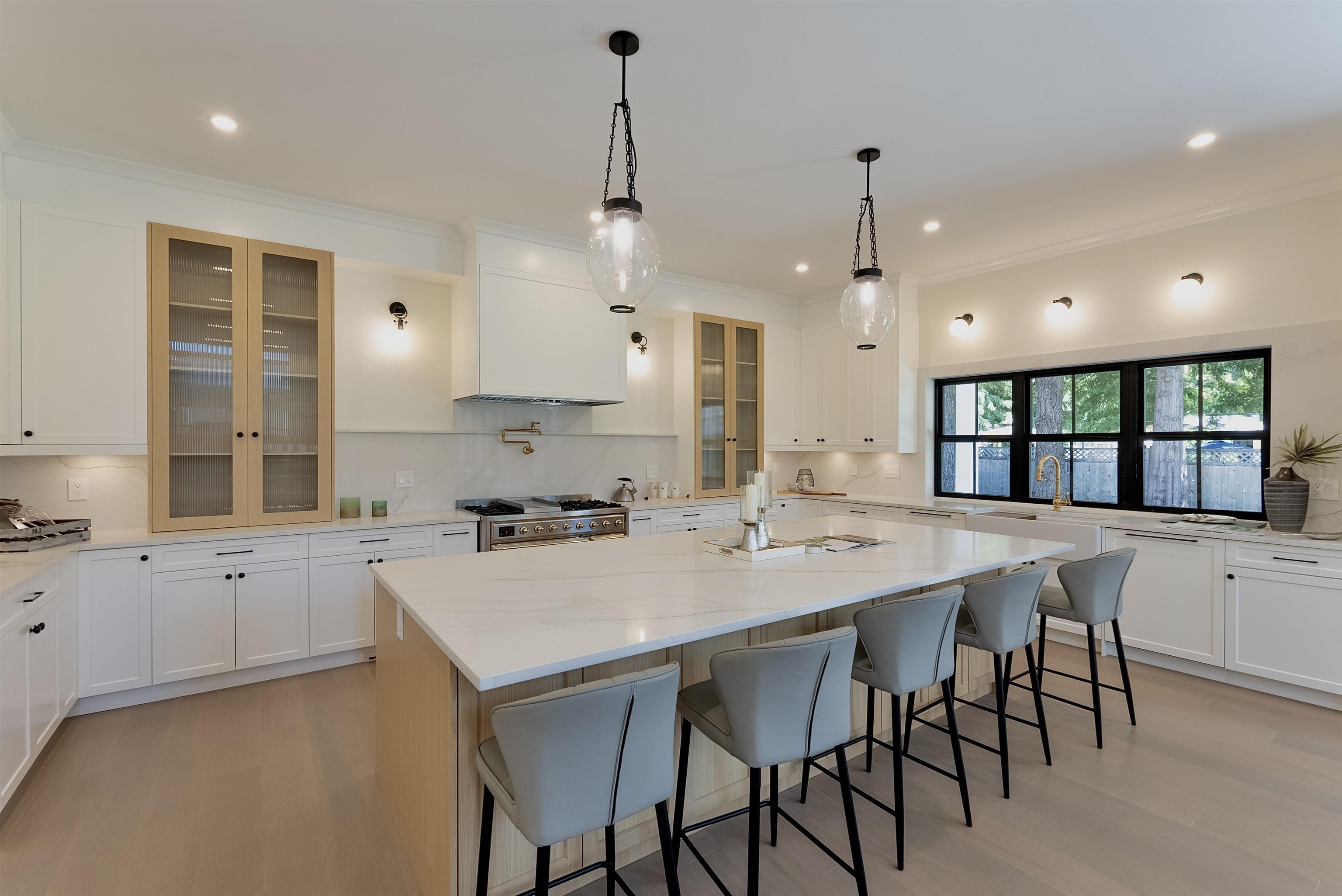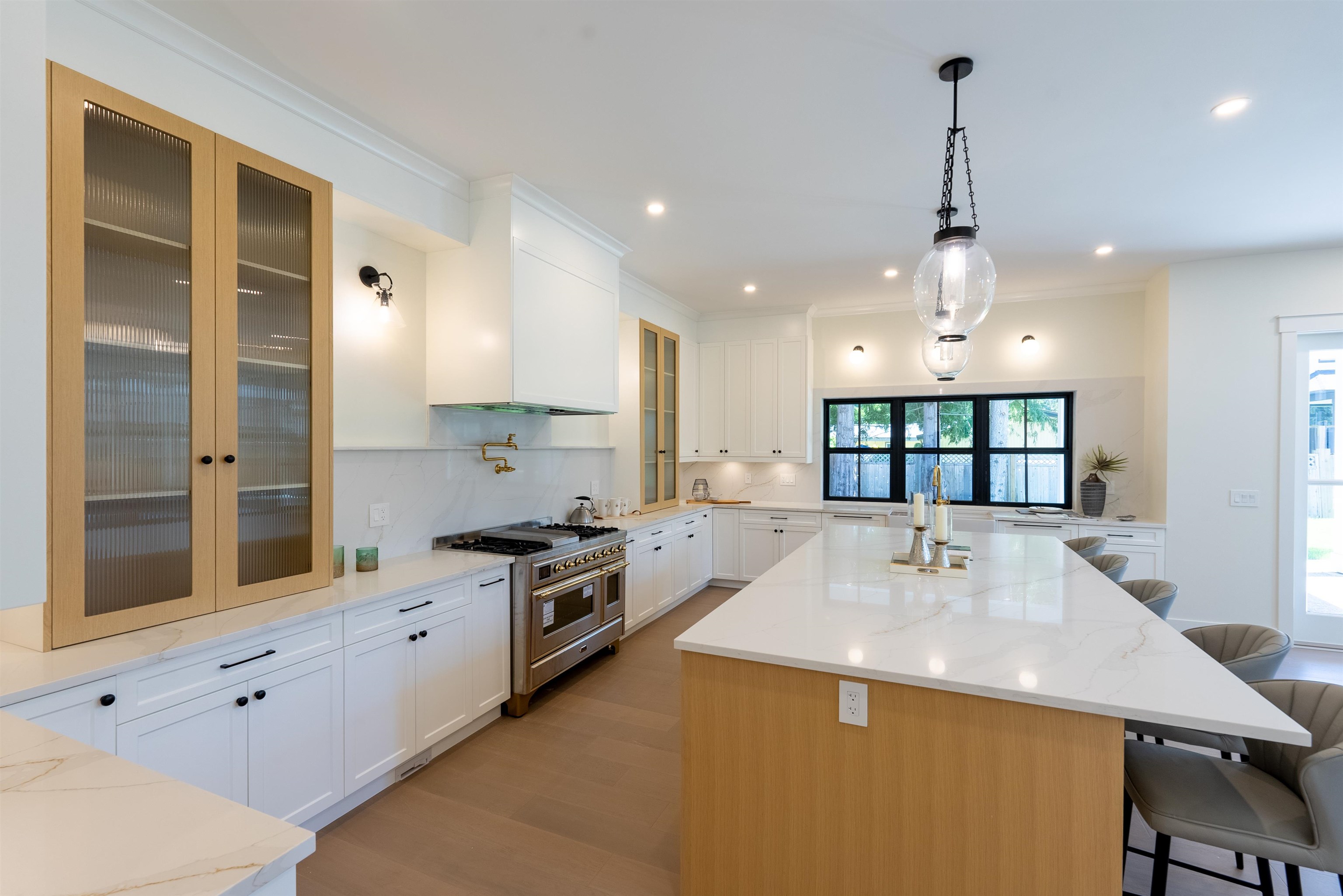 One-of-a-Kind Custom Home in Brookswood! Built by Creative Homes, this luxurious 6-bdrm residence (incl. 2 master bedrooms) blends elegance, functionality, and open-concept living. The double-height family room features 2 levels of windows, flooding the space with natural light. The gourmet kitchen boasts high-end finishes and an Italian made ILVE Majestic stove-the Ferrari of ovens. Designed for seamless entertaining, the home also offers separate living and dining areas for your guests. Upstairs, find four bedrooms, each with its own ensuite, plus a flex room. The primary master suite showcases vaulted ceilings, a spa-like ensuite, and dual walk-in closets. Extras incl. a triple-car garage, radiant in-floor heating, and a 2bdrm legal suite. A true masterpiece - not a cookie-cutter home.