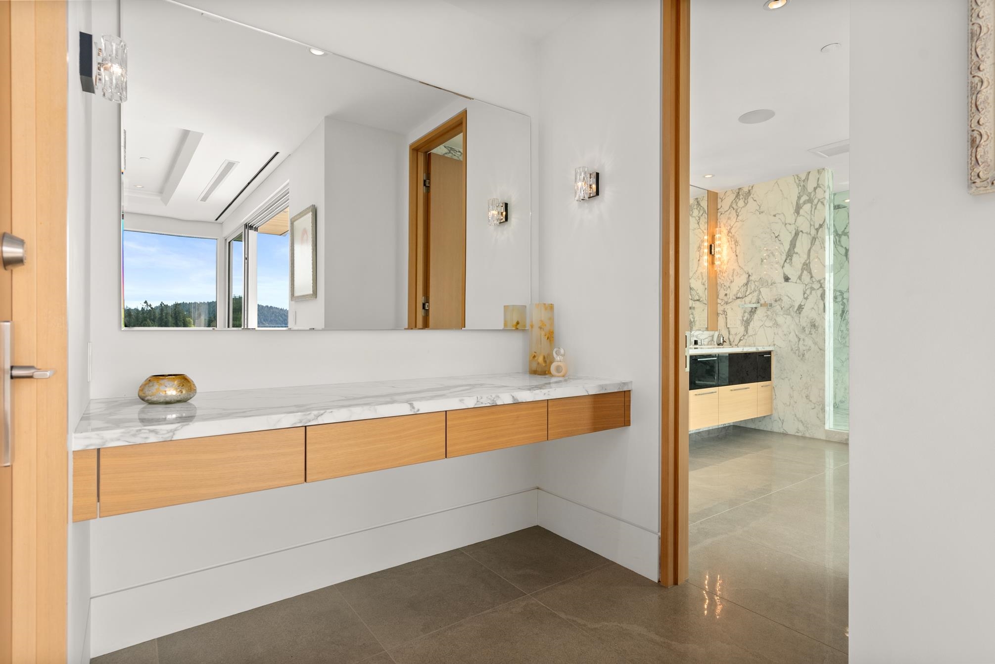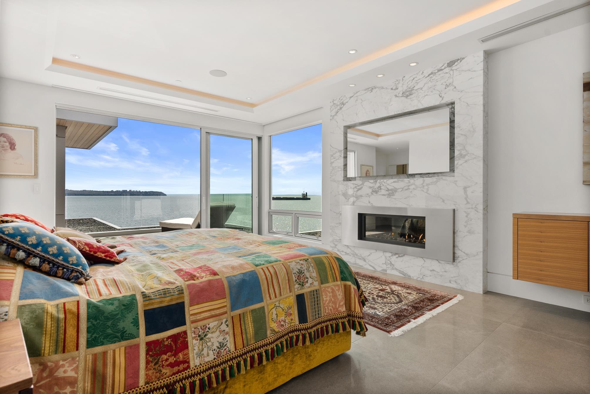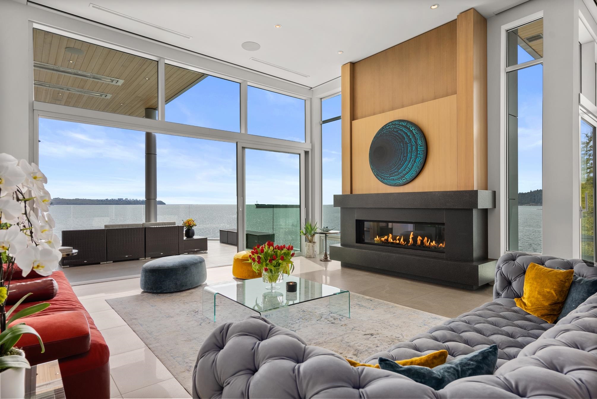 An Ultra Luxury, Private, Gated 149' OCEANFRONT estate in West Vancouvers WEST BAY. Perched on a Spectacular south facing ocean side bluff. Designed by famed Architect Craig Chevalier, and constructed by Goldwood Homes, this stunning home has top of the line appliances and sensational European Poggenpohl custom designed kitchens. 4 bedrooms, 6 bathrooms, generous open-plan kitchen, living and dining areas, rec room. Outdoor dining, lounge & BBQ space to entertain or family to spread out in style. Features include floor to ceiling windows and doors, power blinds, air conditioning, control4 automation & new temp controlled wine cellar. Infinity pool & hot tub and huge covered & heated patios - The Ultimate in Refined Living. Hoist for jet-ski at waters edge.