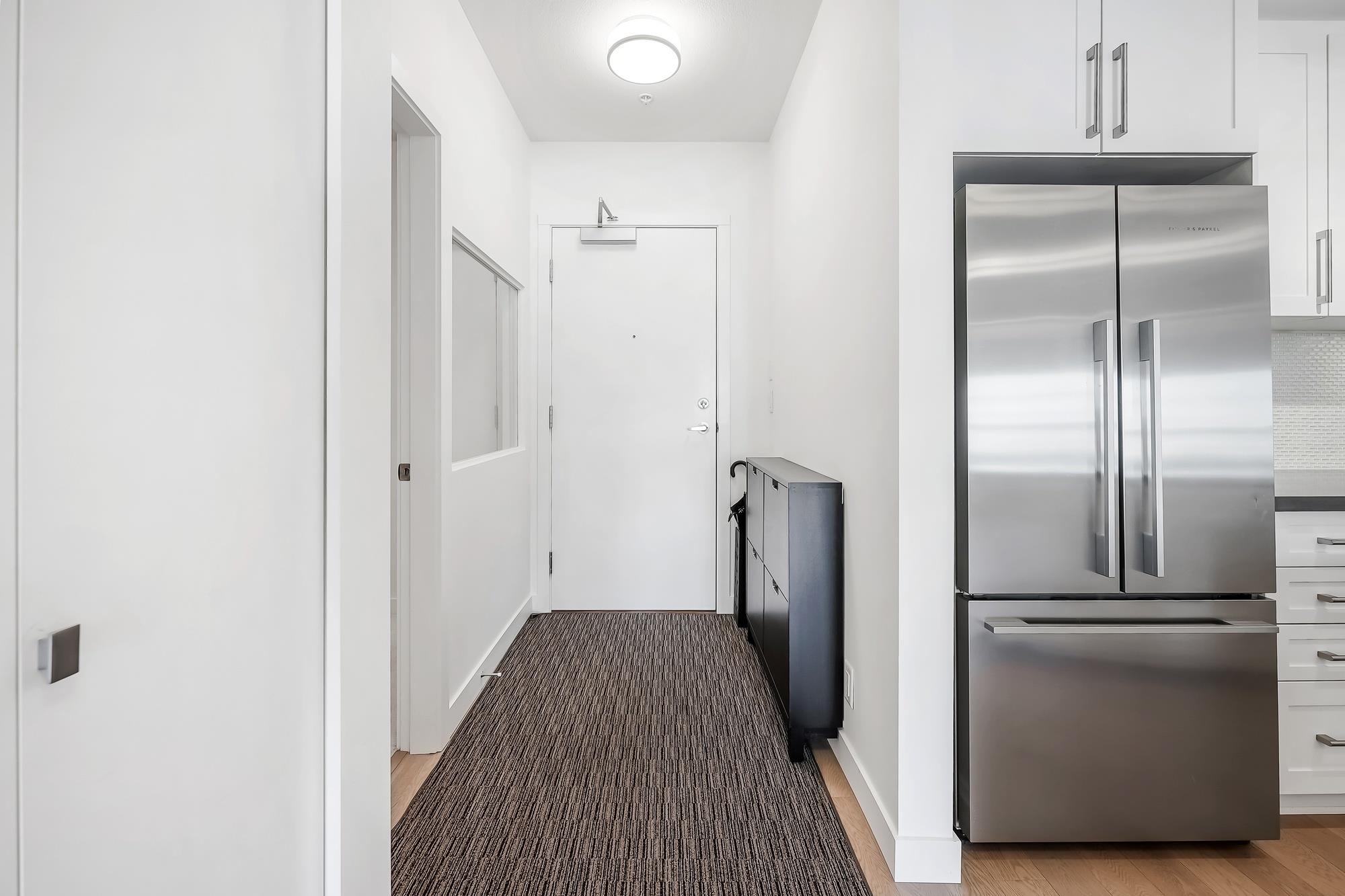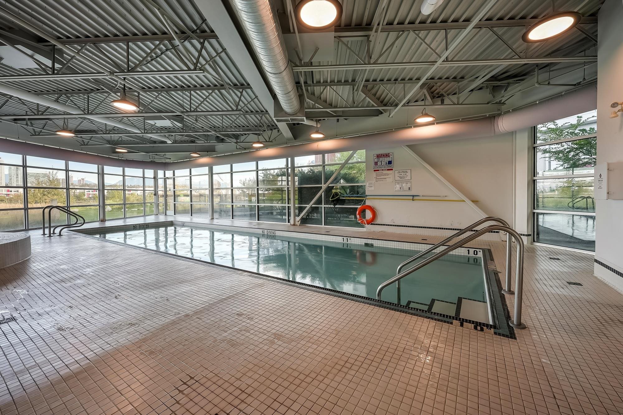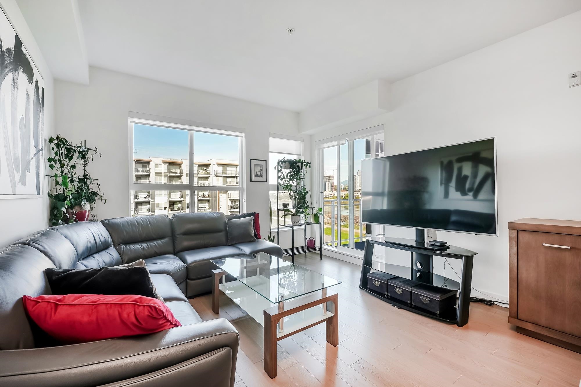 Large, very well kept 2-bedroom plus den condo at Parc Riviera. With over 1100 square feet of living space, this home offers a bright and open floor plan perfect for modern living. The spacious living and dining areas enjoy an abundance of natural light, creating a welcoming atmosphere. The contemporary kitchen features stainless steel appliances, gas cooktop, and ample storage. The primary bedroom has a 4 - piece ensuite bathroom, while two additional bedrooms offer versatility for a family or home office. 2 west facing balconies offer peaceful NW views of the Fraser River. Geothermal heating & cooling keeps you warm in the winter and cool in the summer! Unit comes with two parking spaces! Amenities includie a clubhouse, gym and pool. Measurements by PixlWorks