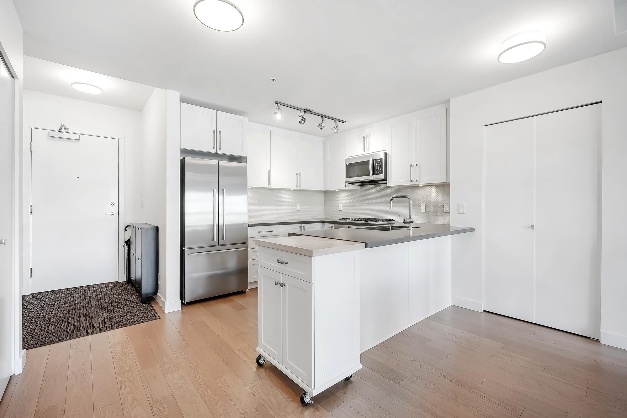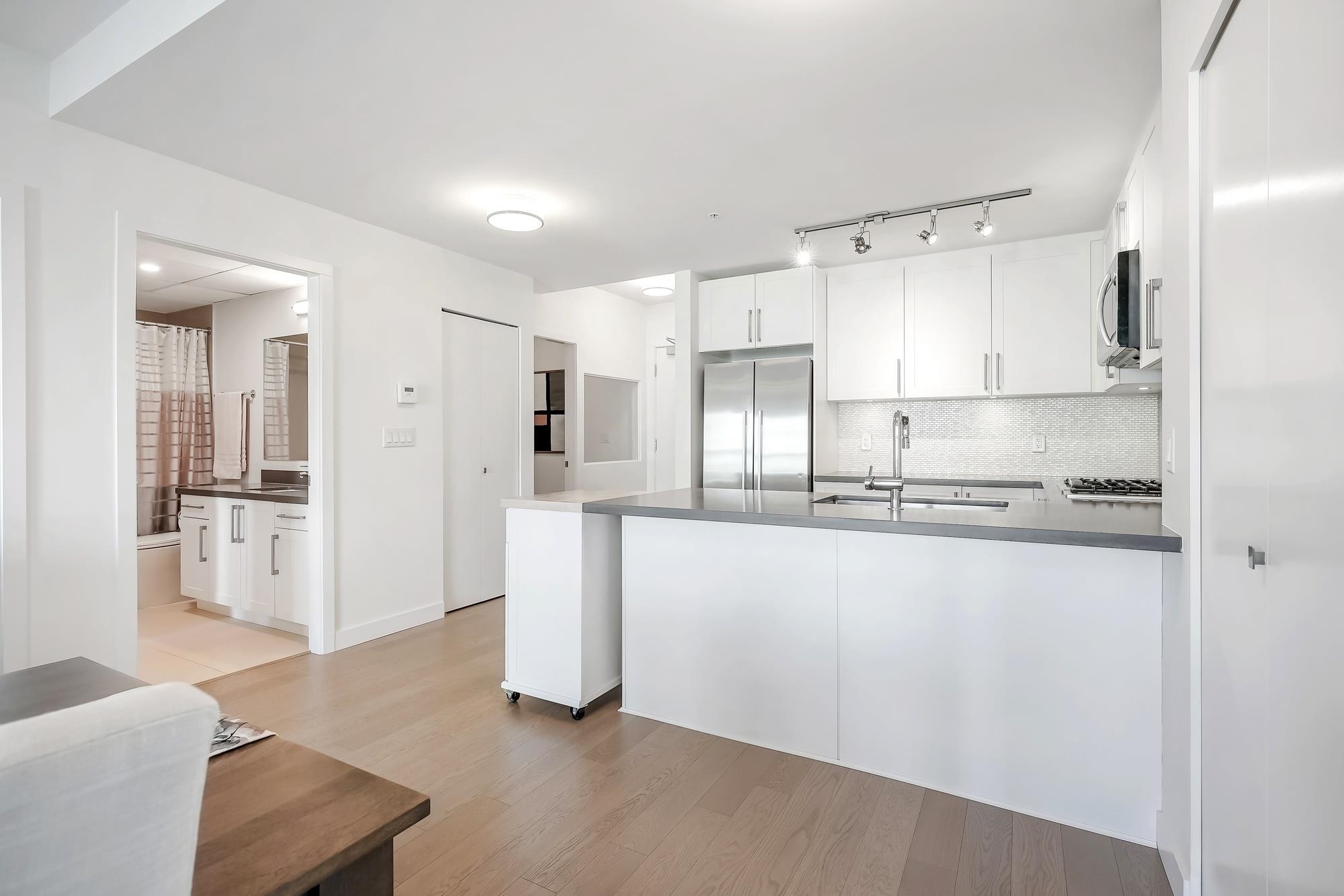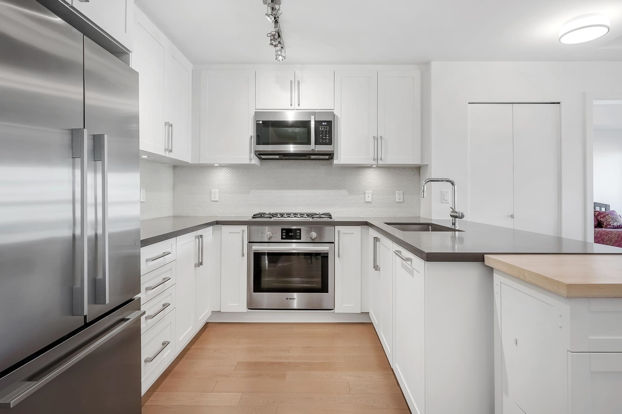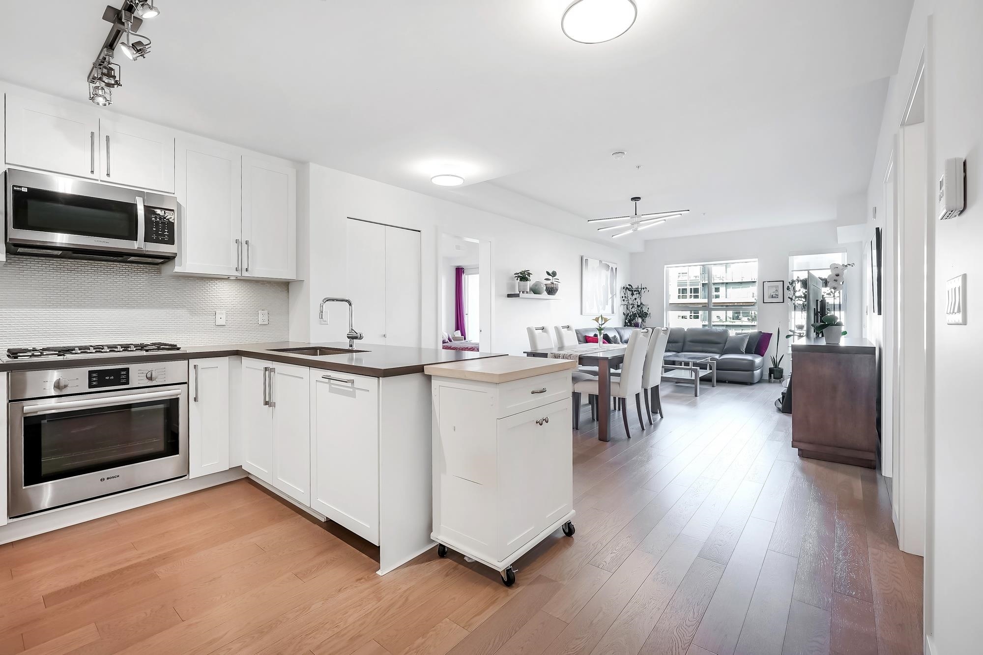 Large, very well kept 2-bedroom plus den condo at Parc Riviera. With over 1100 square feet of living space, this home offers a bright and open floor plan perfect for modern living. The spacious living and dining areas enjoy an abundance of natural light, creating a welcoming atmosphere. The contemporary kitchen features stainless steel appliances, gas cooktop, and ample storage. The primary bedroom has a 4 - piece ensuite bathroom, while two additional bedrooms offer versatility for a family or home office. 2 west facing balconies offer peaceful NW views of the Fraser River. Geothermal heating & cooling keeps you warm in the winter and cool in the summer! Unit comes with two parking spaces! Amenities includie a clubhouse, gym and pool. Measurements by PixlWorks