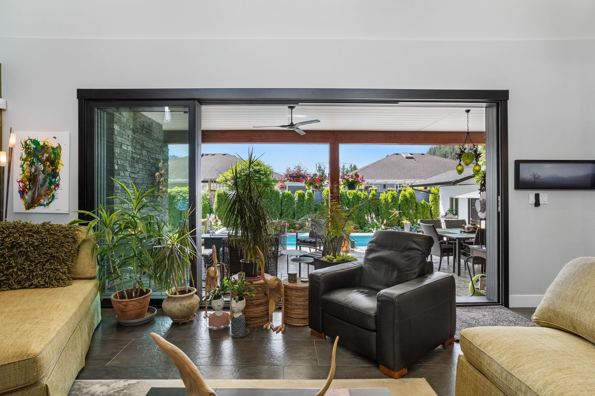 An incredible luxury rancher in Harrison Hot Springs! This dream home has a meticulously planned layout, with bright natural light, & a sought after list of features. Set on a large lot that's just moments to Harrison Lake & a network of forested walking trails, this peaceful retreat is perfectly fit to the areas lifestyle & caters to so many needs. Opening an oversized front door, the dramatic double height ceiling invite you to the main living area & kitchen which transition through 19 foot glass sliding doors to a covered patio & saltwater pool + hot-tub tucked to the side. An extended length double garage has all the space needed to securely store your toys. The double A Cs, radiant in floor heating, hardi/stone siding are just some other high end finishes that distinguish this home.