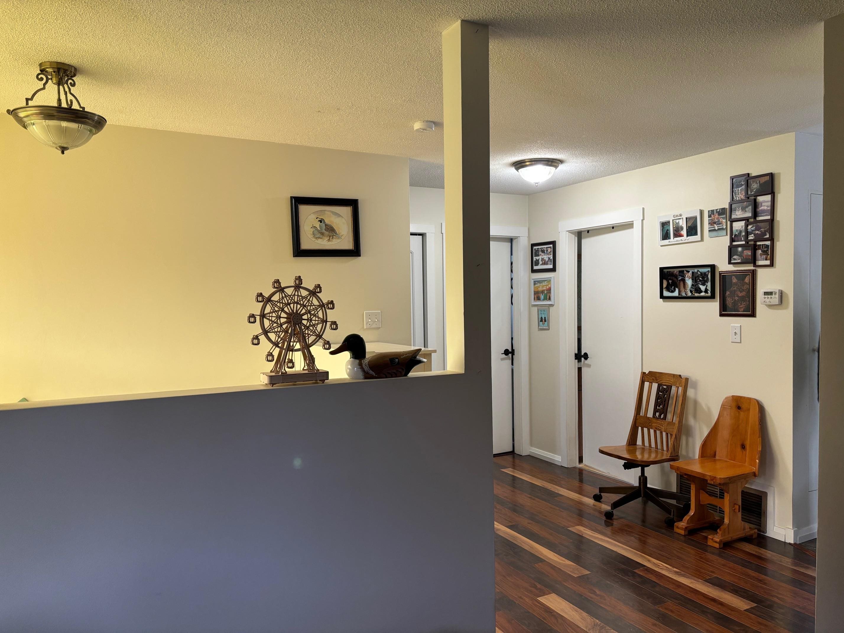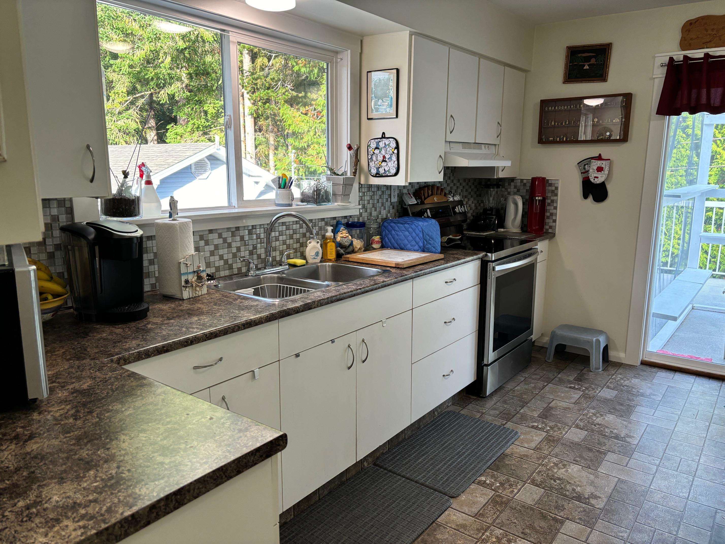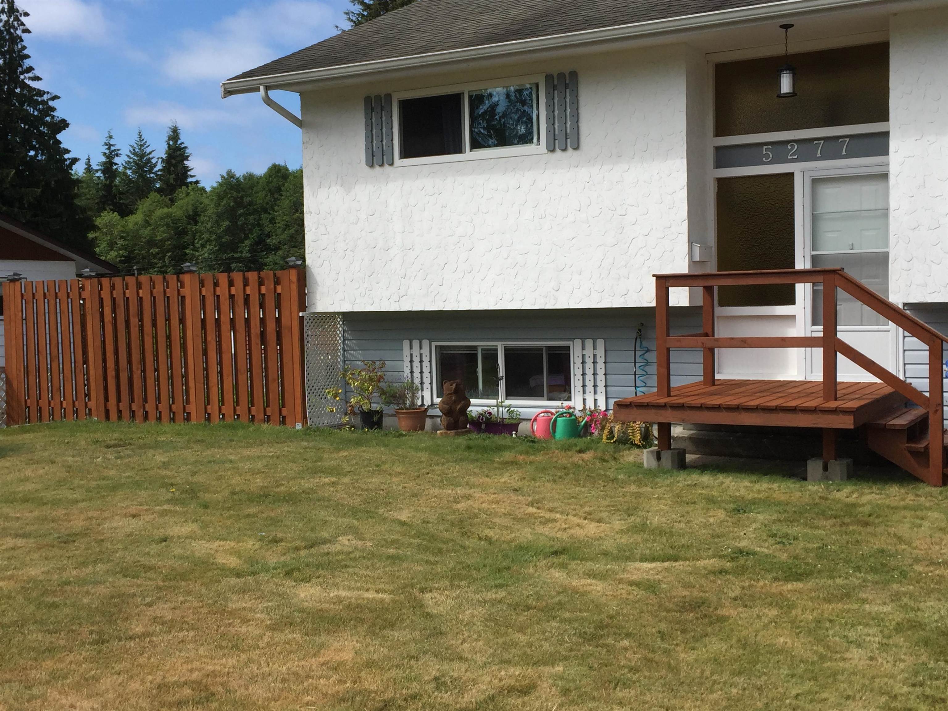 Private, Park-like setting with forest area and creek running thru. Well maintained Family home on 0.9 Acres in central location. Has 2 bdrms Up and a 1 Bdrm Suite with full kitchen and separate entrance down, great for in-laws or as mortgage helper. Plenty of upgrades including: Stainless Steel Appliances, Downstairs Bathroom, new flooring, Gas Stove/fireplace in Living room, Gas Furnace and Gas Hot-water on Demand. Extra Large Sundeck, Carport with mechanics pit. Detached Double Garage. Lots of parking for RVs, boats. 2 Storage Sheds. Fenced raised garden beds. Above Ground Swimming Pool. Close to schools, shopping, recreation centre and hospital.