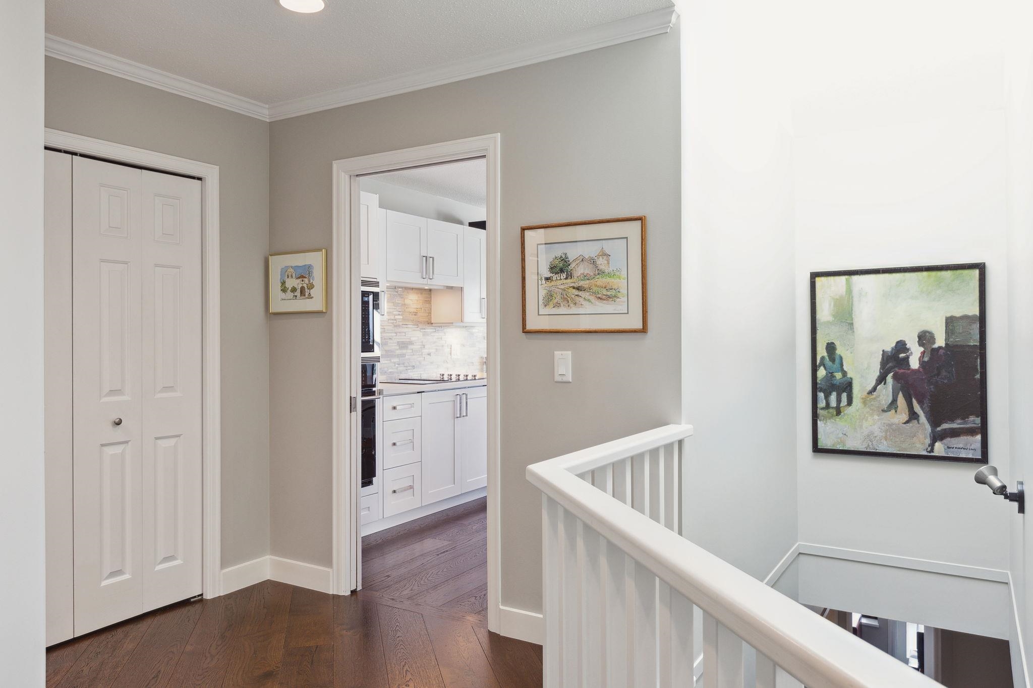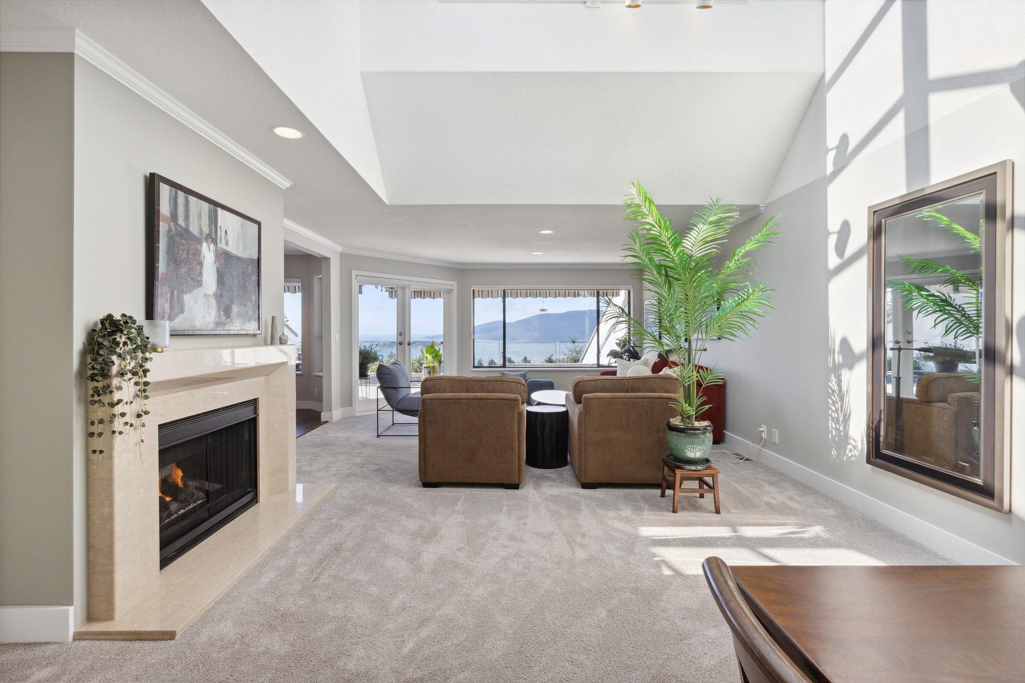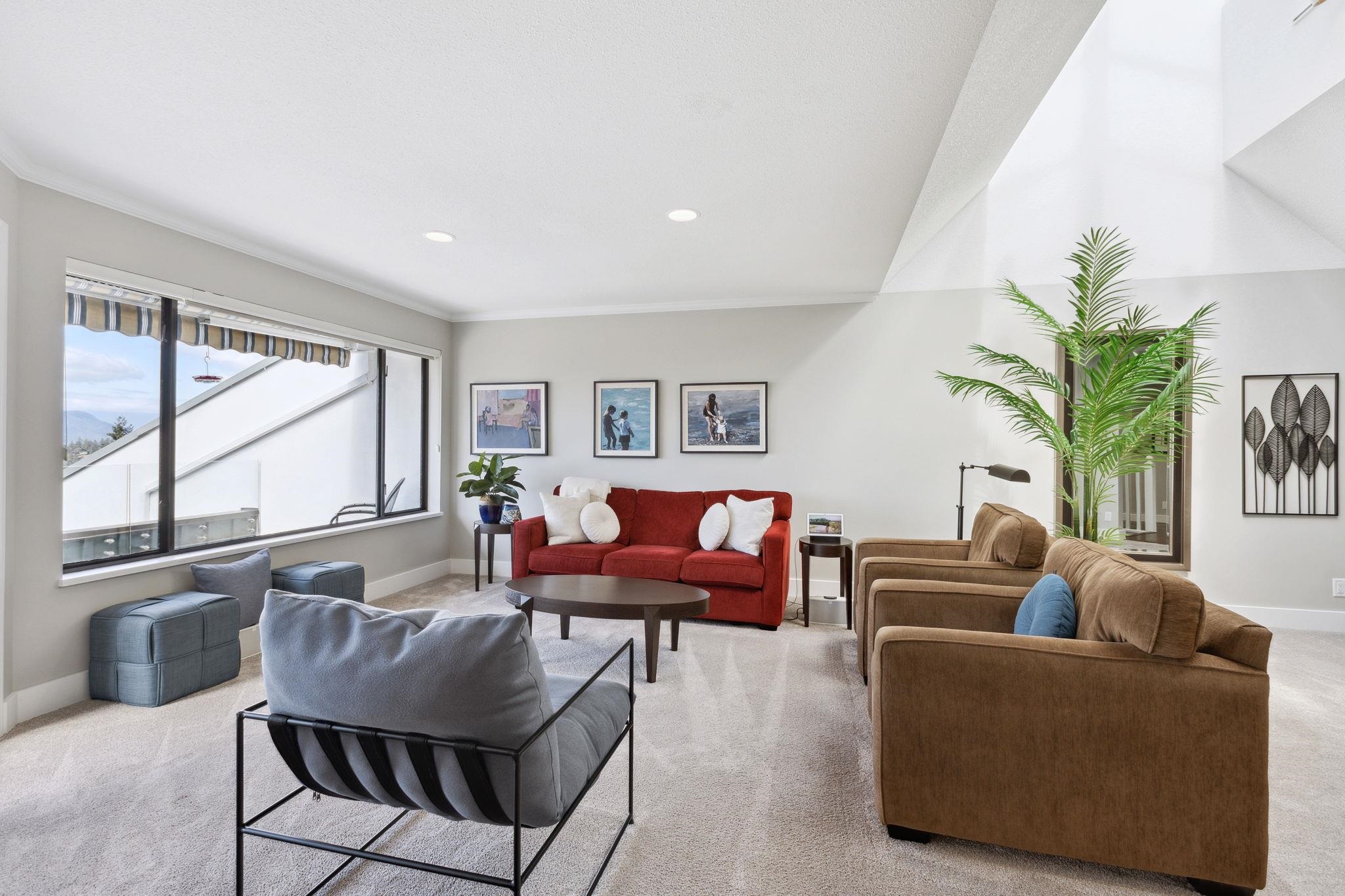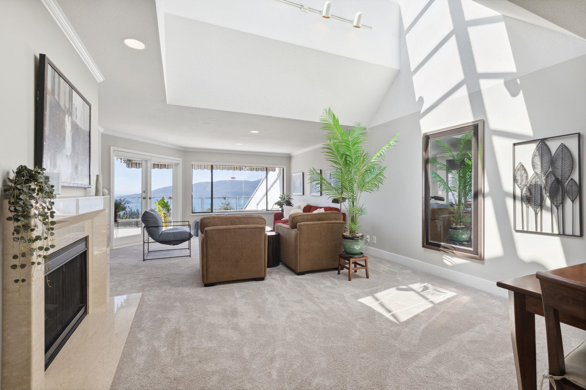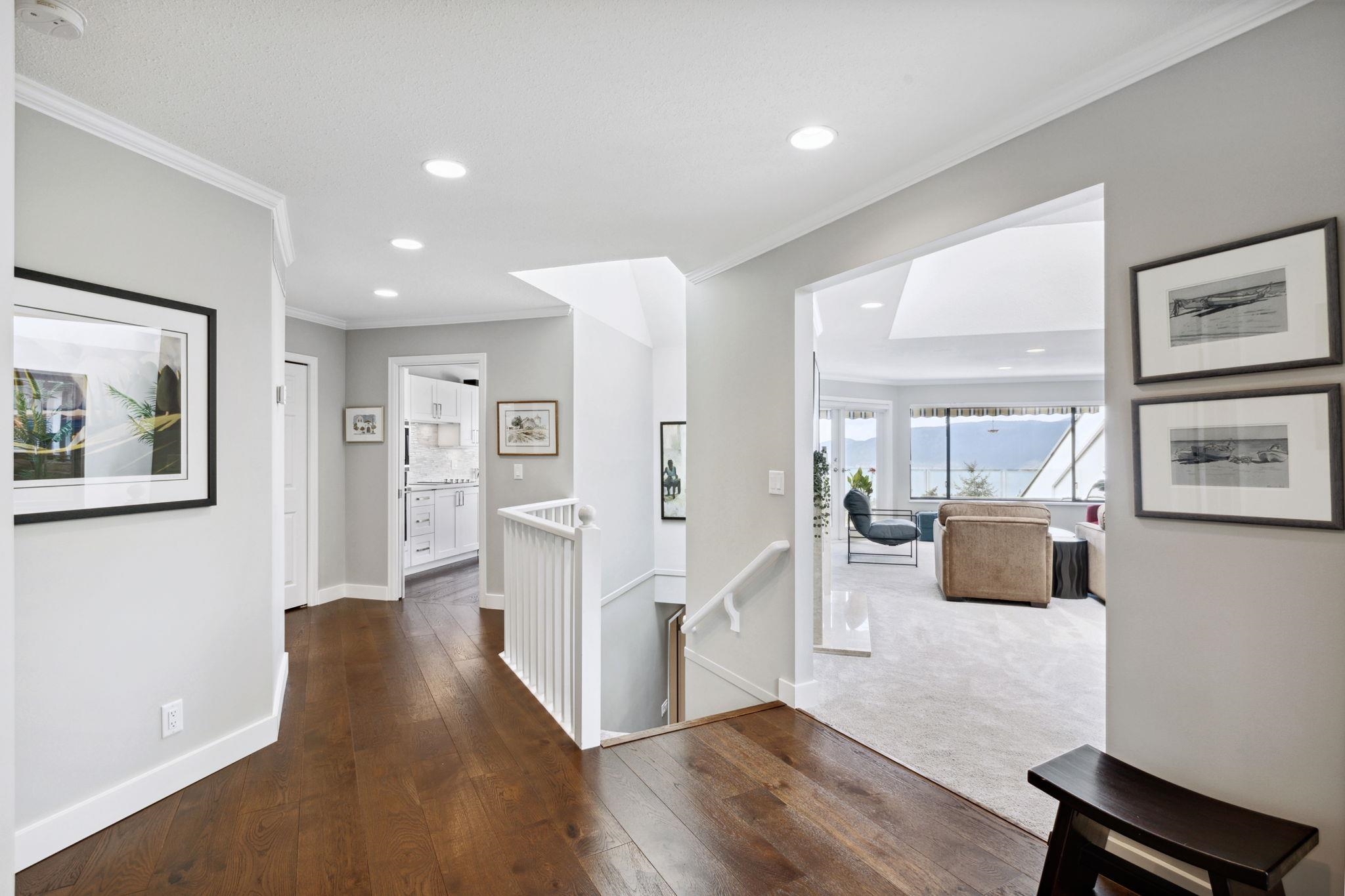 A rarely available "front row" unit in Sahalee! This lovely home was renovated in 2020 & benefits from the best outlook in this unique upper caulfeild community. This 2 story layout features an optional bdrm/den on main w. ALL New kitchen, living, dining, Bathroom. New Carpet & Oak plank HW floor all opens to a beautiful balcony that boasts world class views of Ocean & Islands. Downstairs both bedrooms offer the same as floorplan affords you 2 outdoor spaces with an integrated covered patio leading out to a beautiful small garden. On entry you will pass through a private courtyard that perfectly frames this charming property. This optimal location is only steps from schools, shopping & recreation and offers the comfort of central A/C w 2 car garage & storage. Open Sat. 2-4