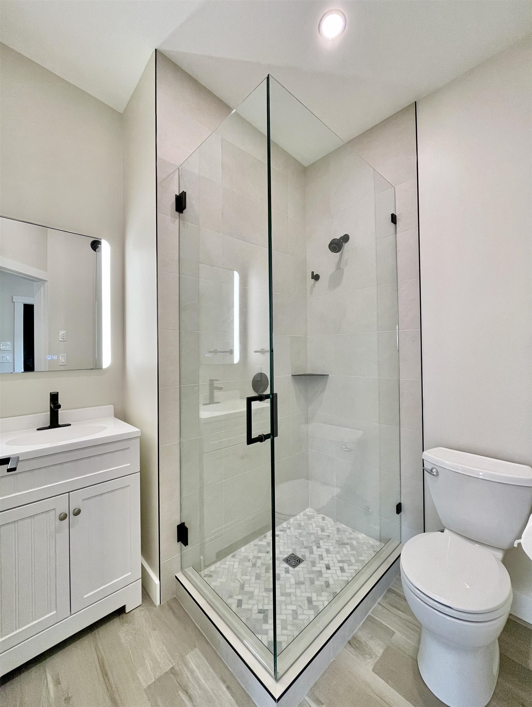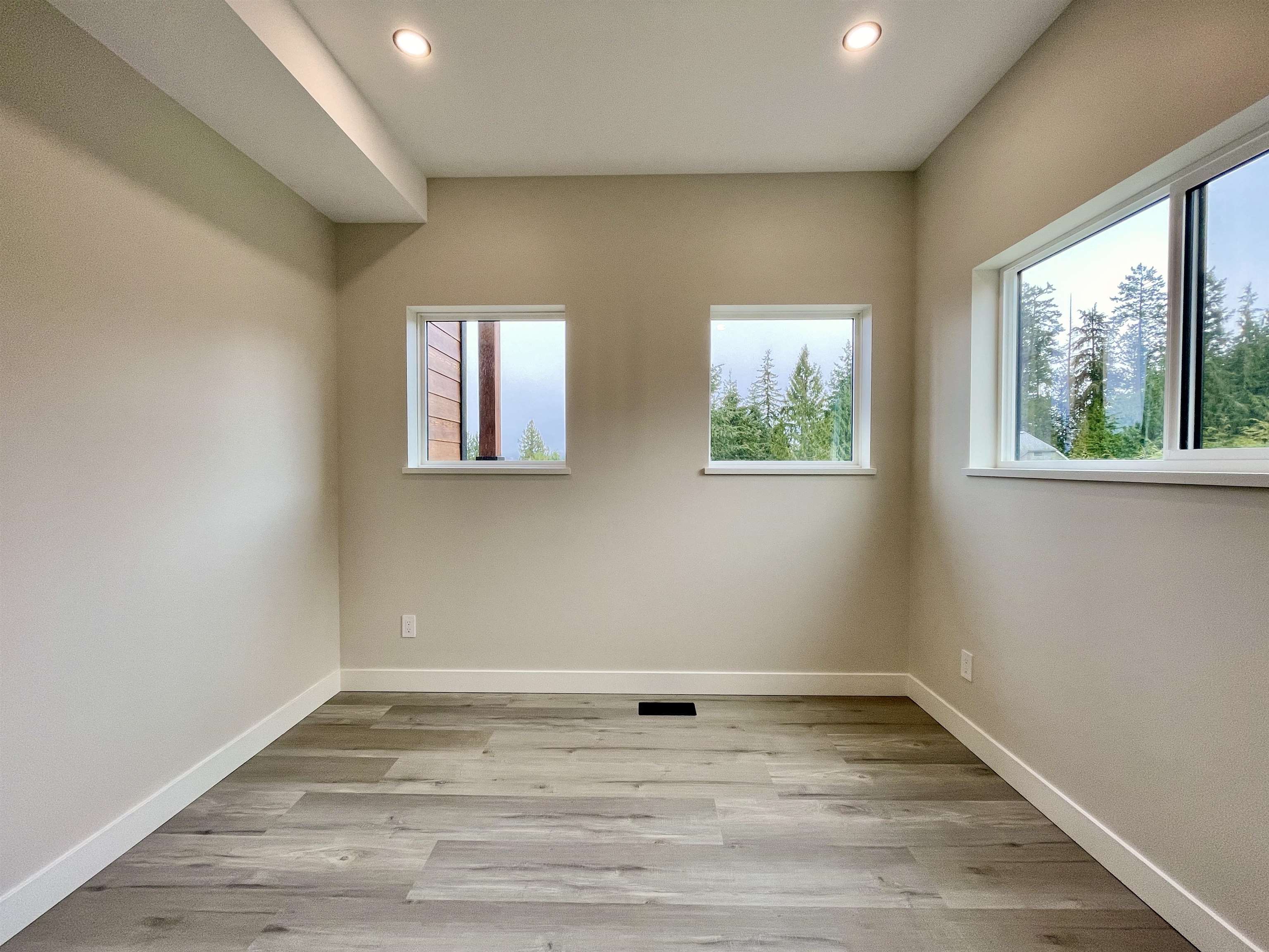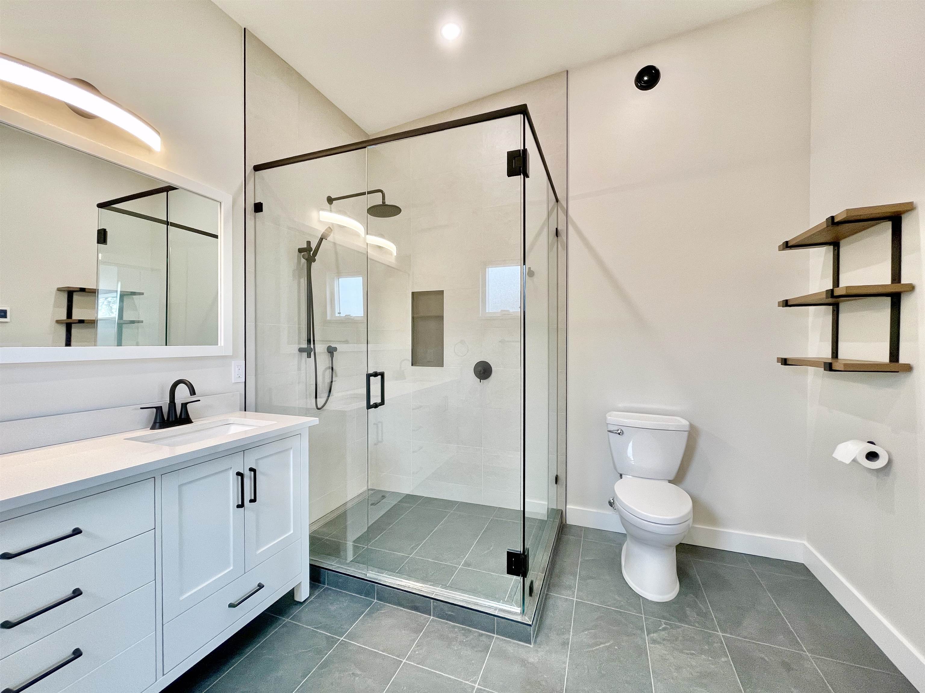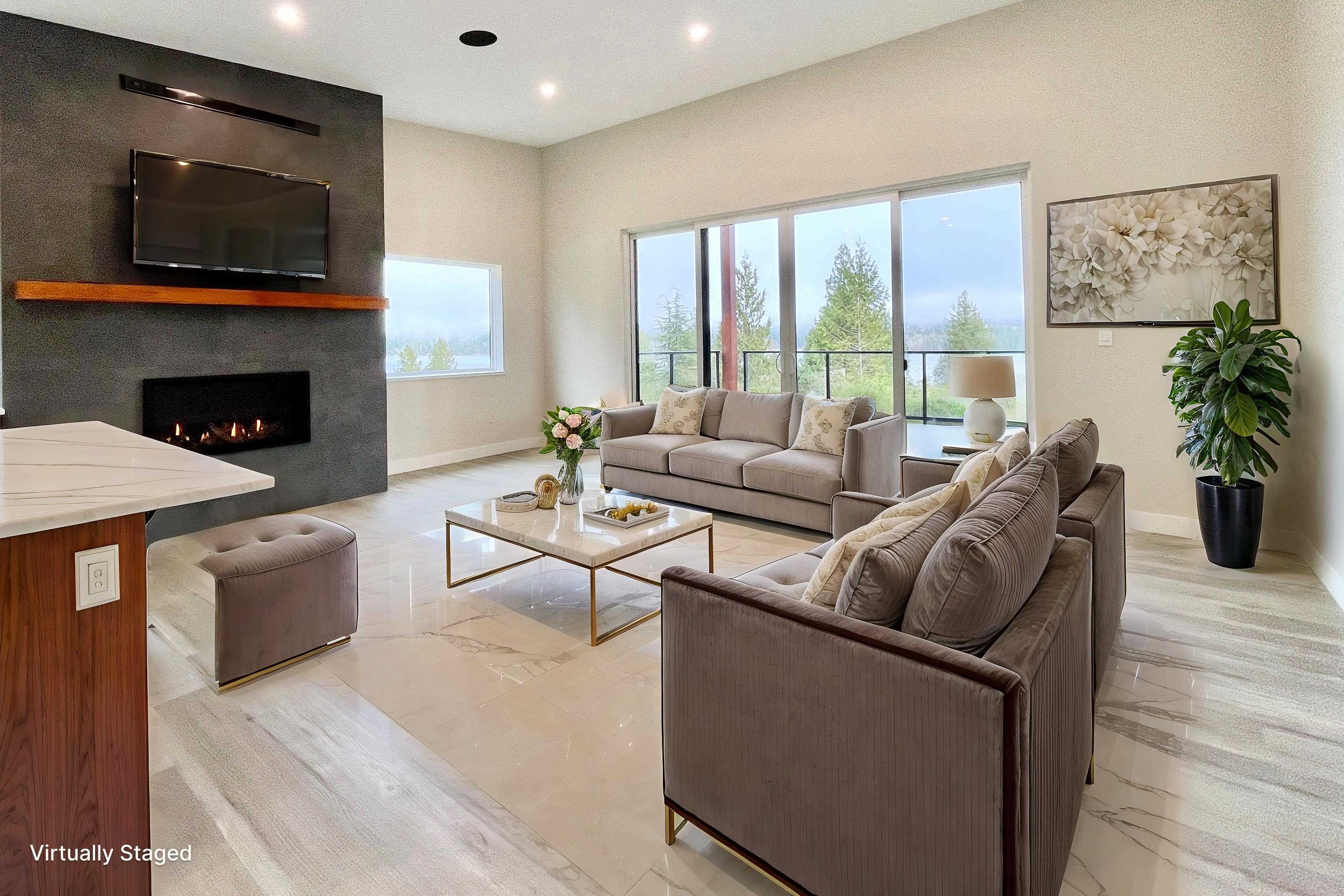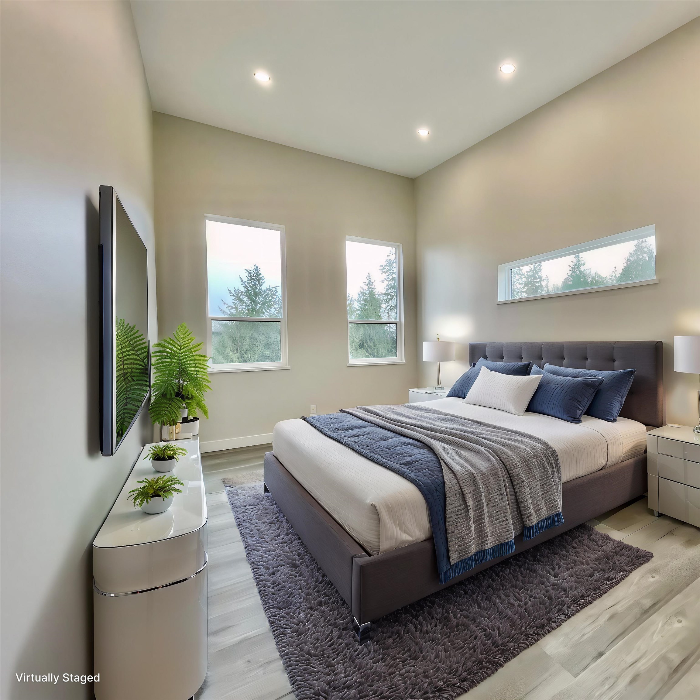 This stunning 3-story home boasts breathtaking ocean and mountain views in a quiet neighborhood. The main residence features 4 beds, 4 baths, and a 788 sq. ft. 1-bed, 1-bath finished legal suite for guests or rental income. Enjoy the 300 sq. ft. balcony with natural gas BBQ hookup, vaulted ceilings, and a 2-story foyer. Highlights include solid wood cabinetry, quartz counters, heat pump, HRV system, 5000L rainwater tank, shed-style roof ready for solar panels, and zoning for a 600 sq. ft. duplex or shop. Close to affordable moorage, this home offers luxury and functionality with a 2/5/10 warranty.