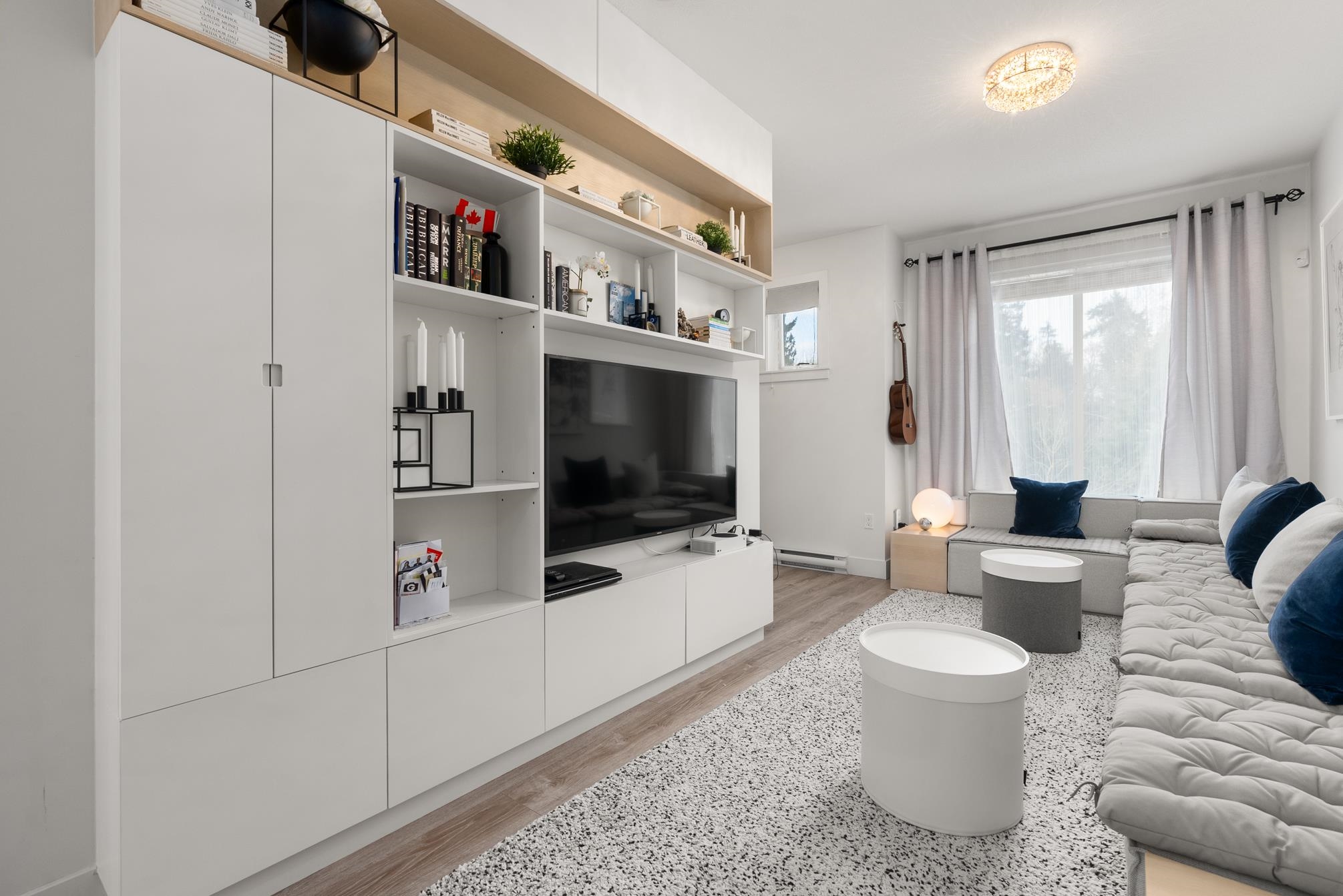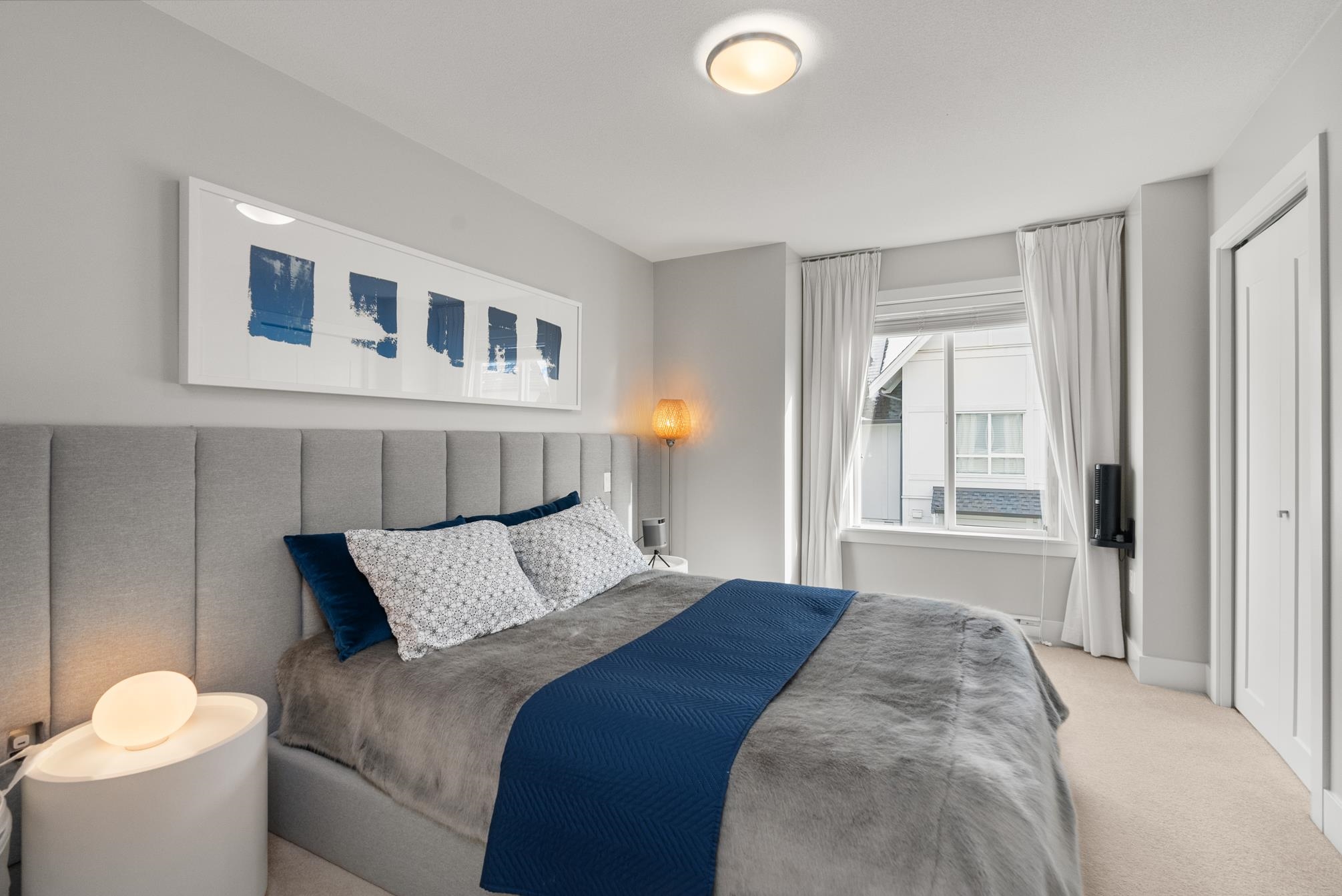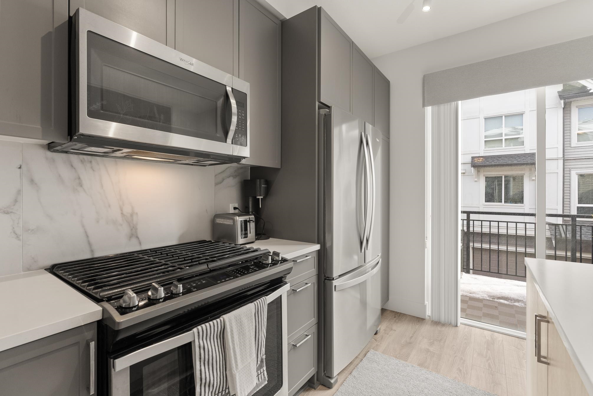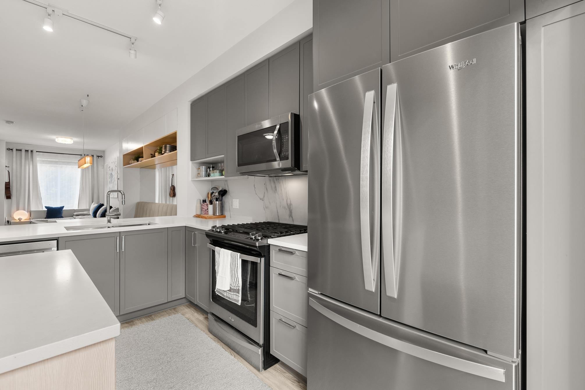 Absolutely stunning 2 bdrm+office/3 bath home with over $50k custom upgrades in a highly desirable complex - Canopy, a remarkable 642-acre green space community, offering the perfect blend of convenience and natural surroundings. Discover a thoughtfully designed modern interior with exclusive built-ins throughout. Open concept layout featuring a massive kitchen with an island, functional living/dining space, large balcony with a gas outlet, generous size two bedrooms upstairs and an outstanding office with custom desk and cabinetry on the ground floor. This home comes fully furnished with high-end fixtures and furniture. Additional features include built-in vacuum, security system, garage with epoxy floors & built-in shelving, carport and front yard.