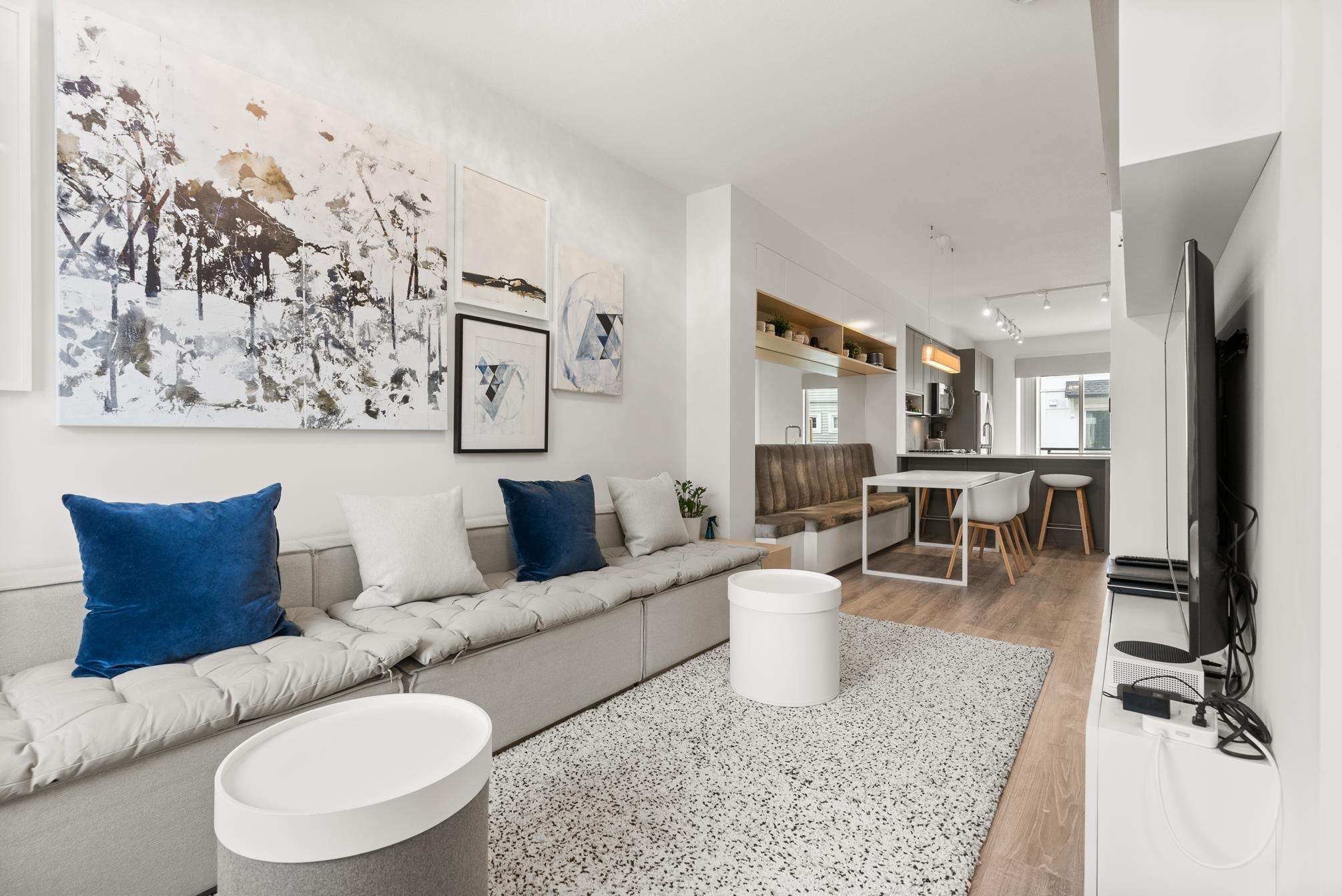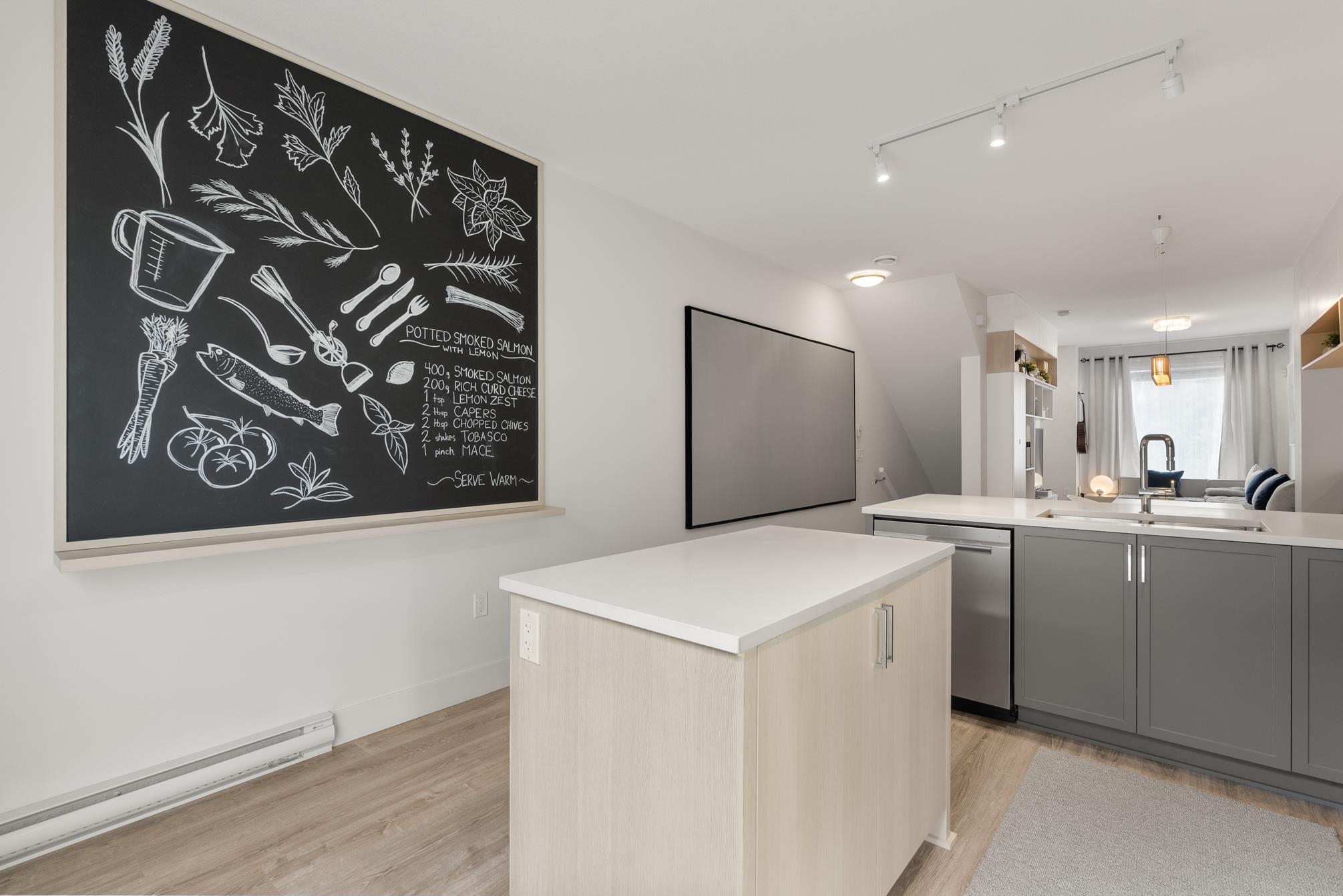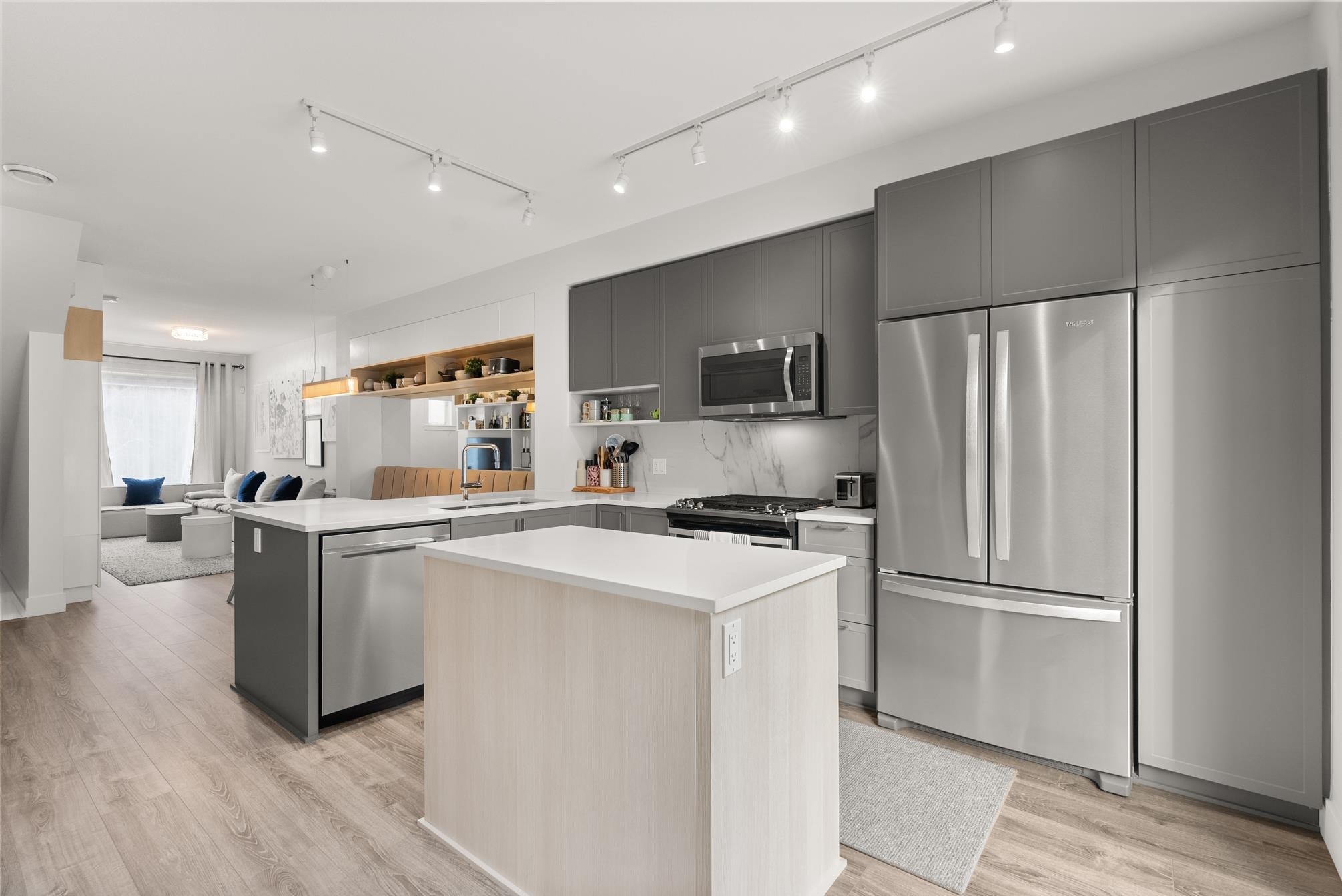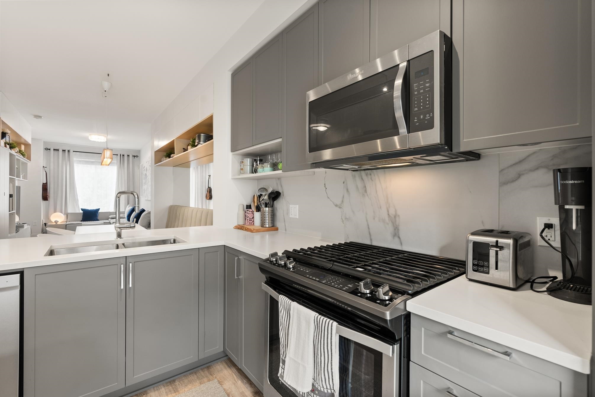 Absolutely stunning 2 bdrm+office/3 bath home with over $50k custom upgrades in a highly desirable complex - Canopy, a remarkable 642-acre green space community, offering the perfect blend of convenience and natural surroundings. Discover a thoughtfully designed modern interior with exclusive built-ins throughout. Open concept layout featuring a massive kitchen with an island, functional living/dining space, large balcony with a gas outlet, generous size two bedrooms upstairs and an outstanding office with custom desk and cabinetry on the ground floor. This home comes fully furnished with high-end fixtures and furniture. Additional features include built-in vacuum, security system, garage with epoxy floors & built-in shelving, carport and front yard.