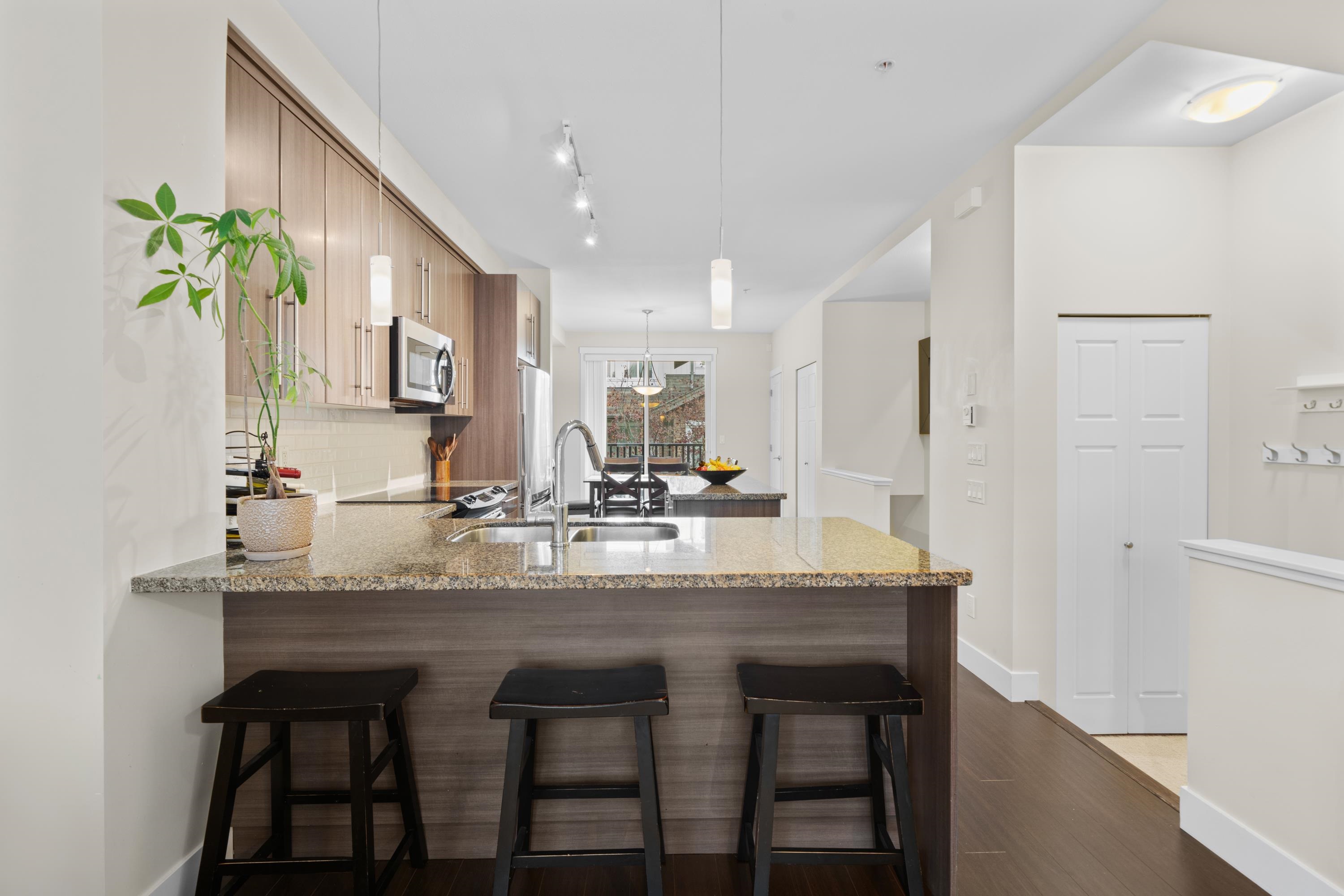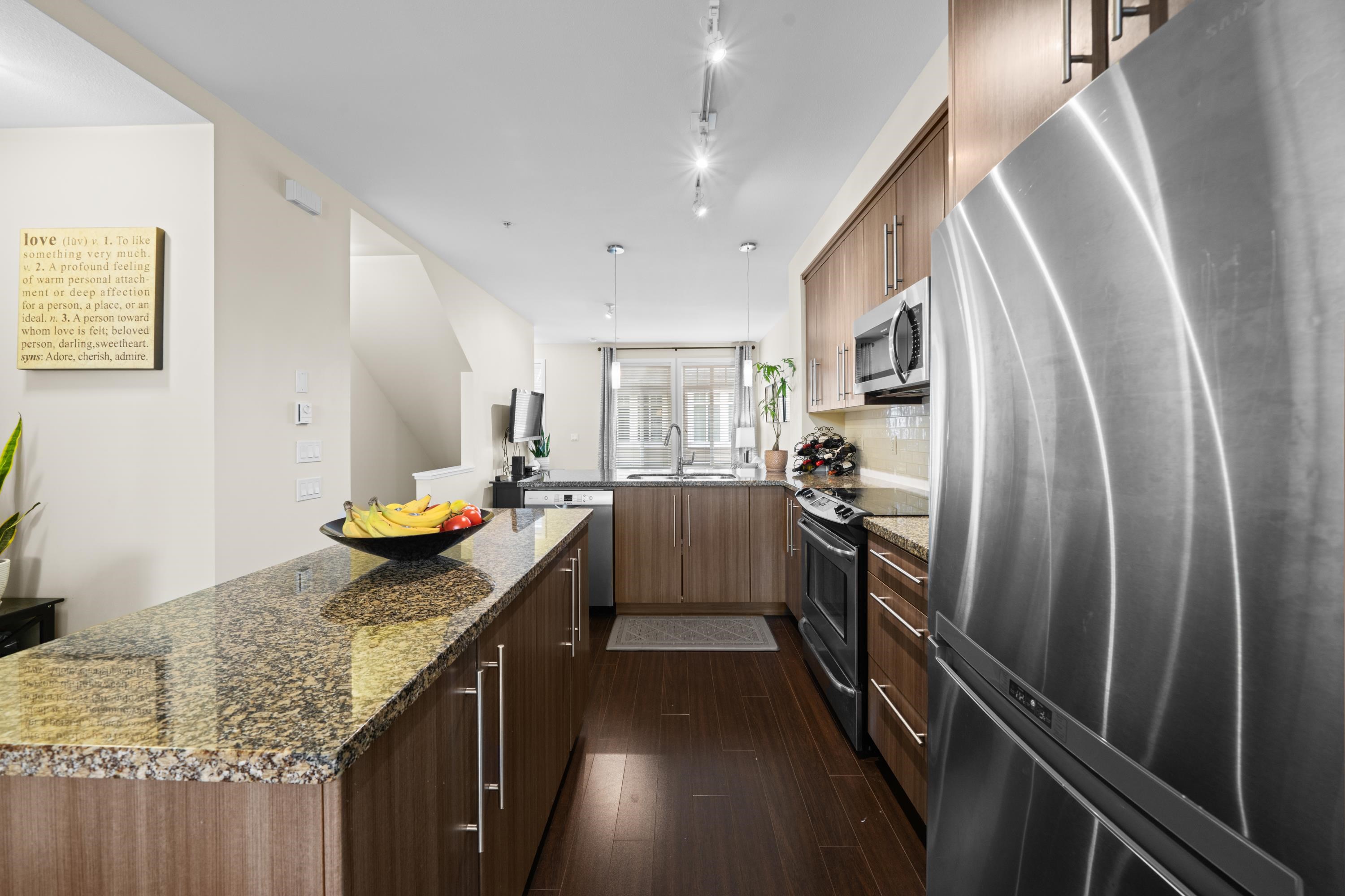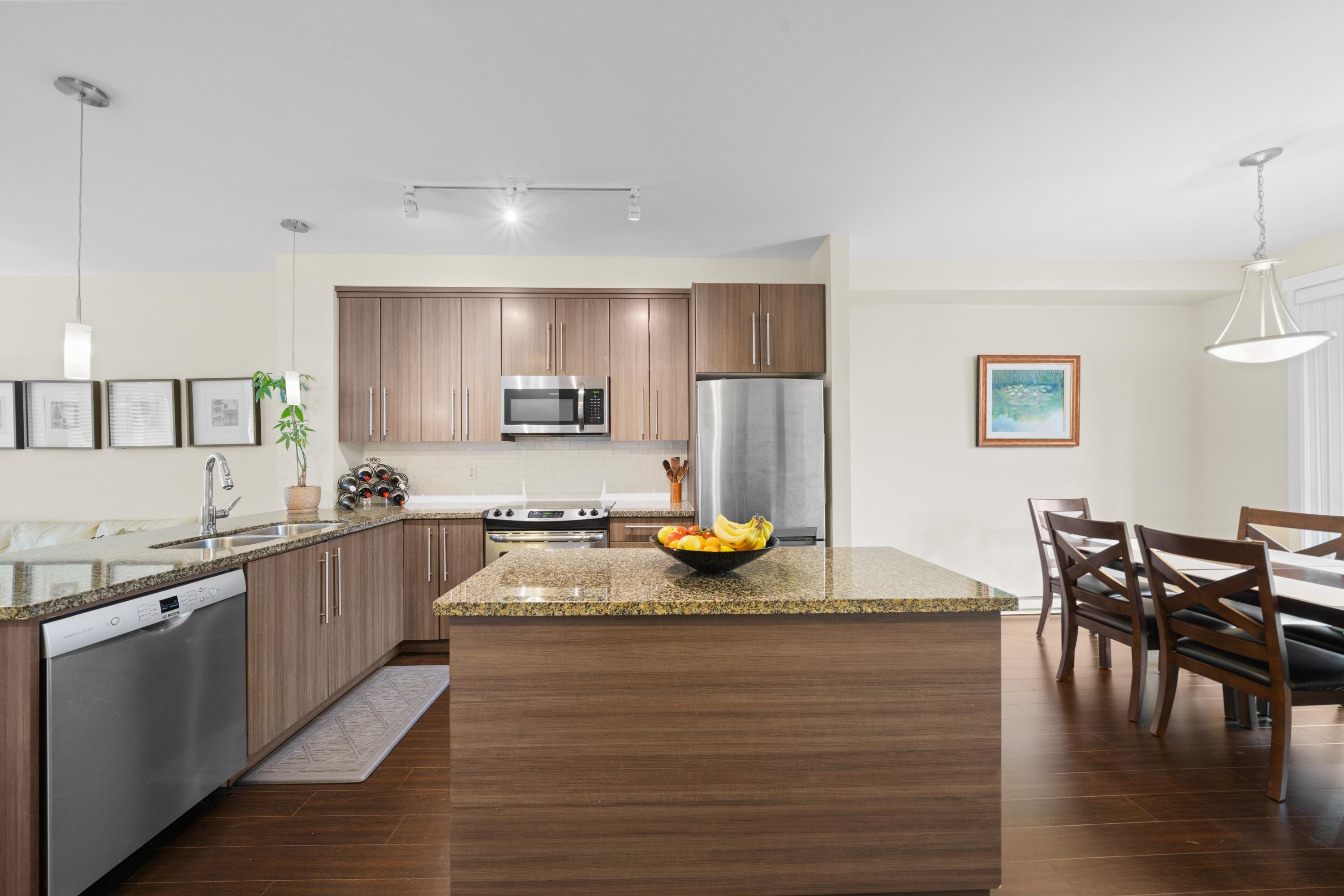 Welcome to Outlook! This lovely 2 bedroom, 3 bathroom townhome offers a perfect combination of comfort and style. The open concept layout features 9ft ceilings, creating a bright and airy feel throughout. Laminate floors and a stunning kitchen that boasts beautiful granite countertops, stainless steel appliances, and a generous island with lots of counter space, ideal for meal prep and casual dining. The sundeck off the dining area is the perfect spot for relaxing. Upstairs, find 2 generous bedrooms, including a primary bedroom with a 3 piece ensuite for added privacy. With a single garage, covered carport, an unbeatable location within steps to Lynn Fripps Elementary, affordable maintenance fees and a new hot water tank, this townhome is the perfect place to call home!