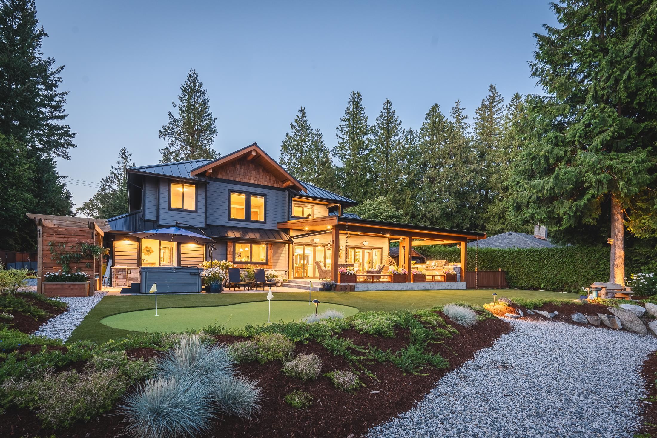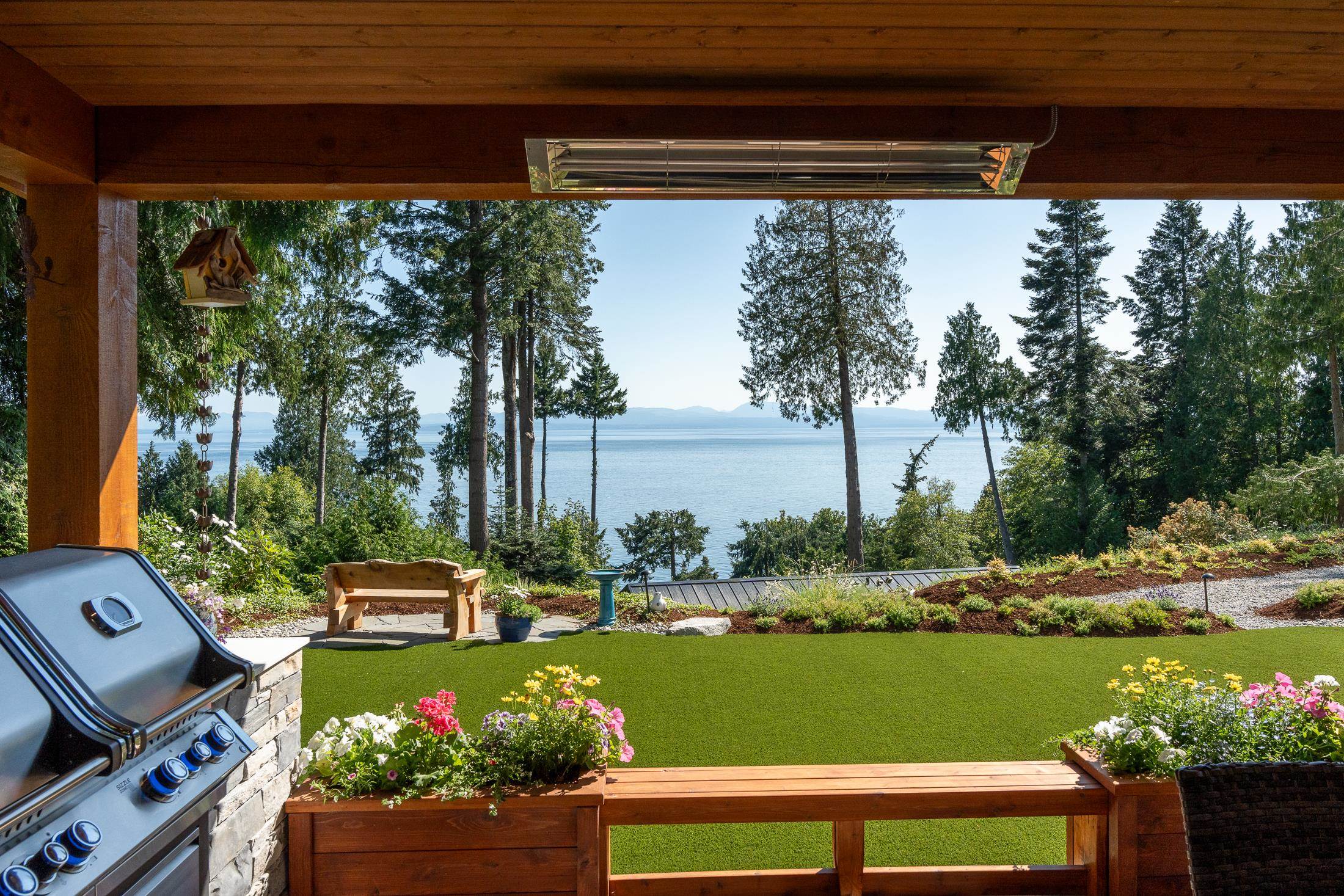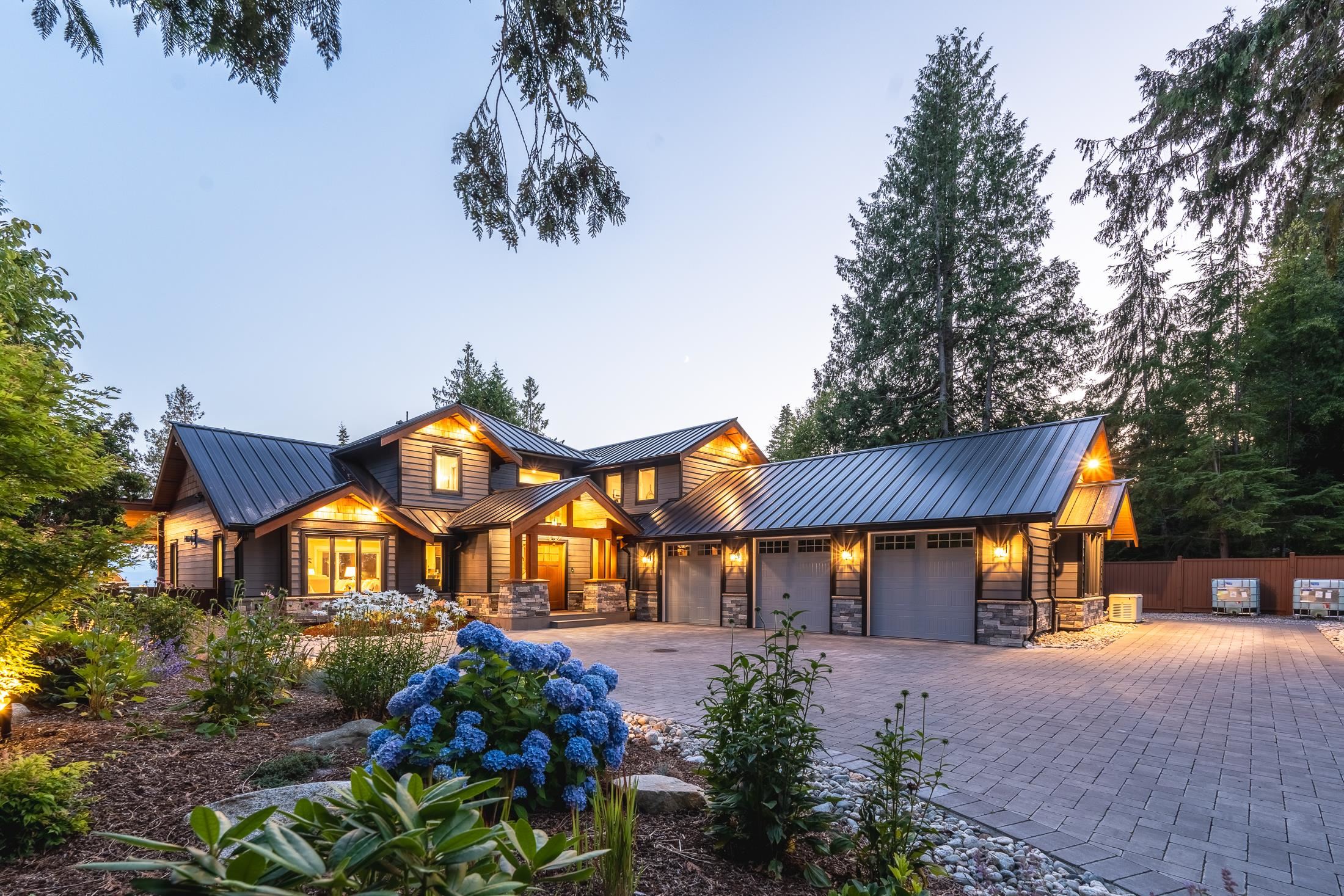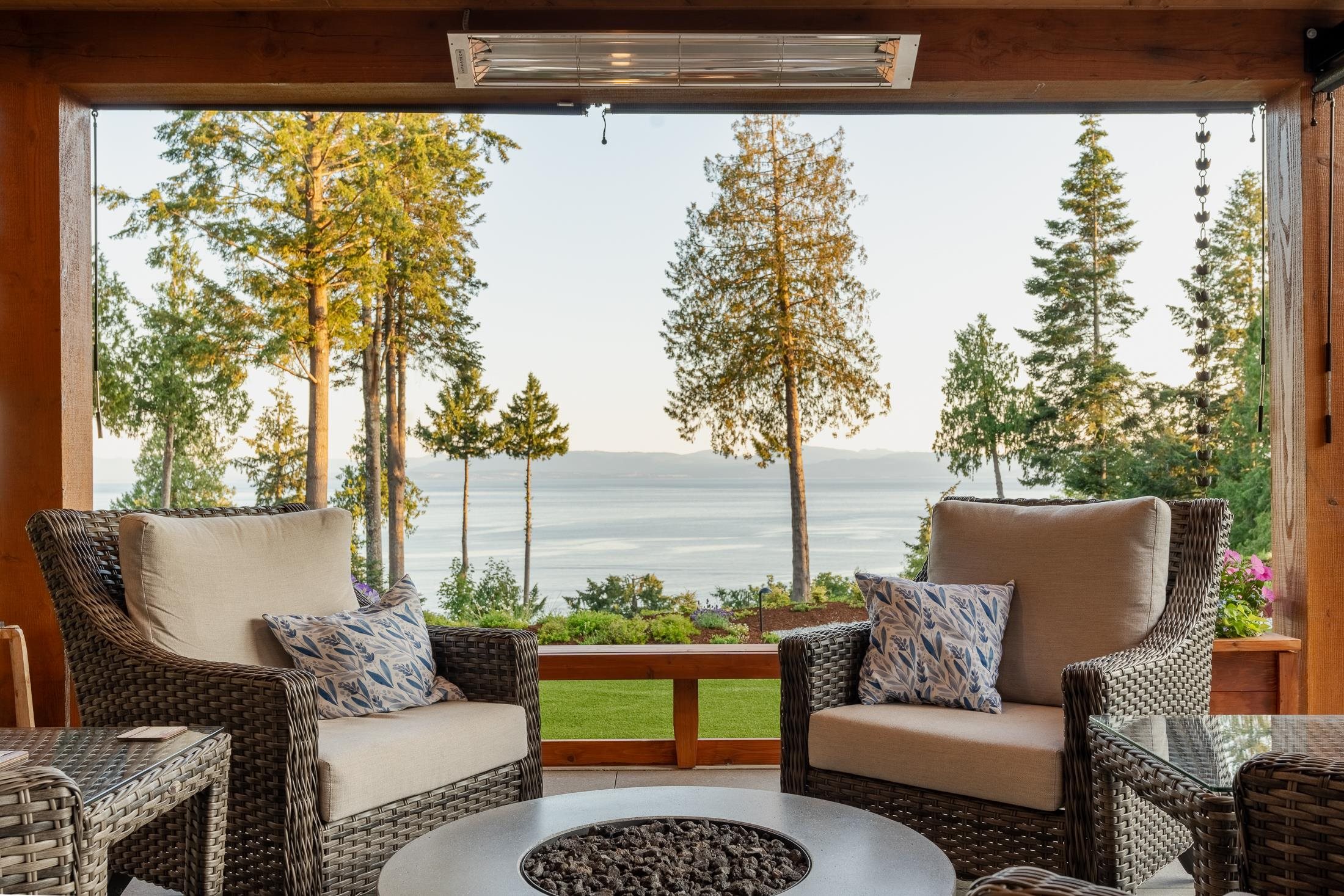 Imagine waking to ocean views, step into your gourmet kitchen and grab an espresso from your coffee bar, head to your 3 hole putting green to practice your short game. The sun is warm, you get a drink from the outdoor kitchen fridge and enjoy views of the Salish Sea from your timber frame covered patio, w/ heaters and fans, it's a space you'll love year round. This 3-4 bed with primary on the main is perfect to raise a family and enjoy for decades to come. Hardwood floor, interlock driveway, 3 car garage, heat pump, AC, RV parking, workshop, hot tub, remote gate, mature landscaping, metal roof. Second home on property is a brand new modular with views, its own yard and all the updates. This luxury home has been meticulously crafted and ready for you to live your dreams!