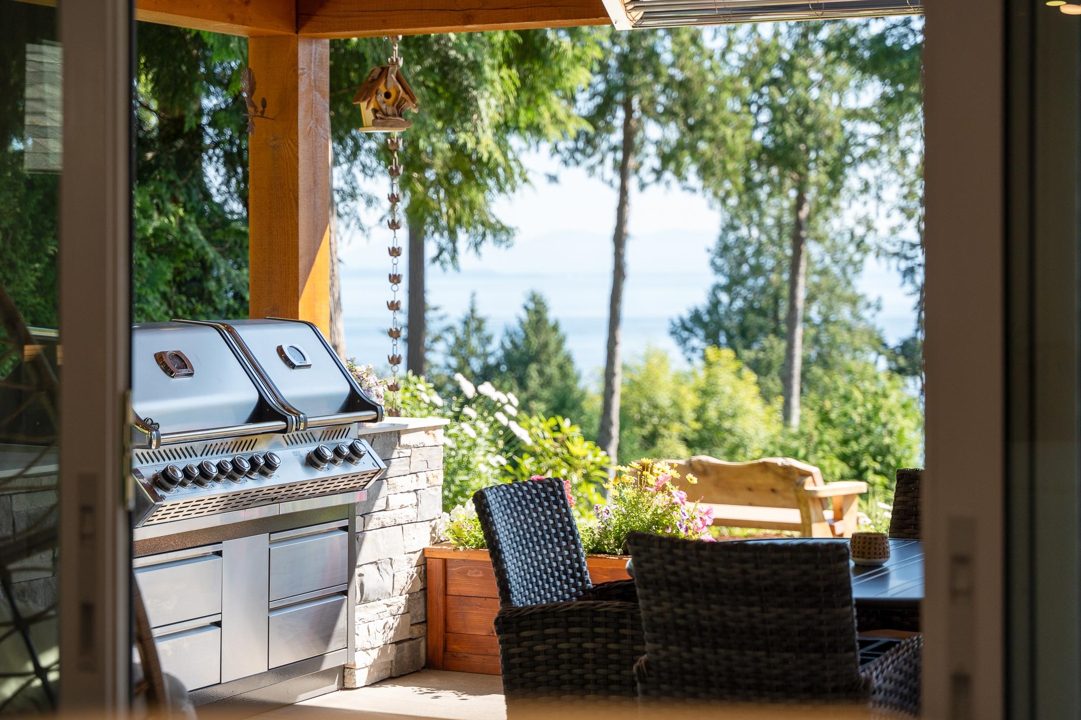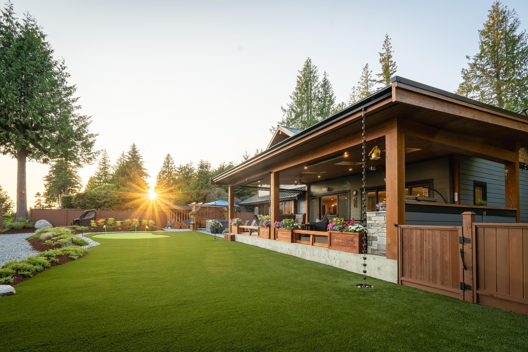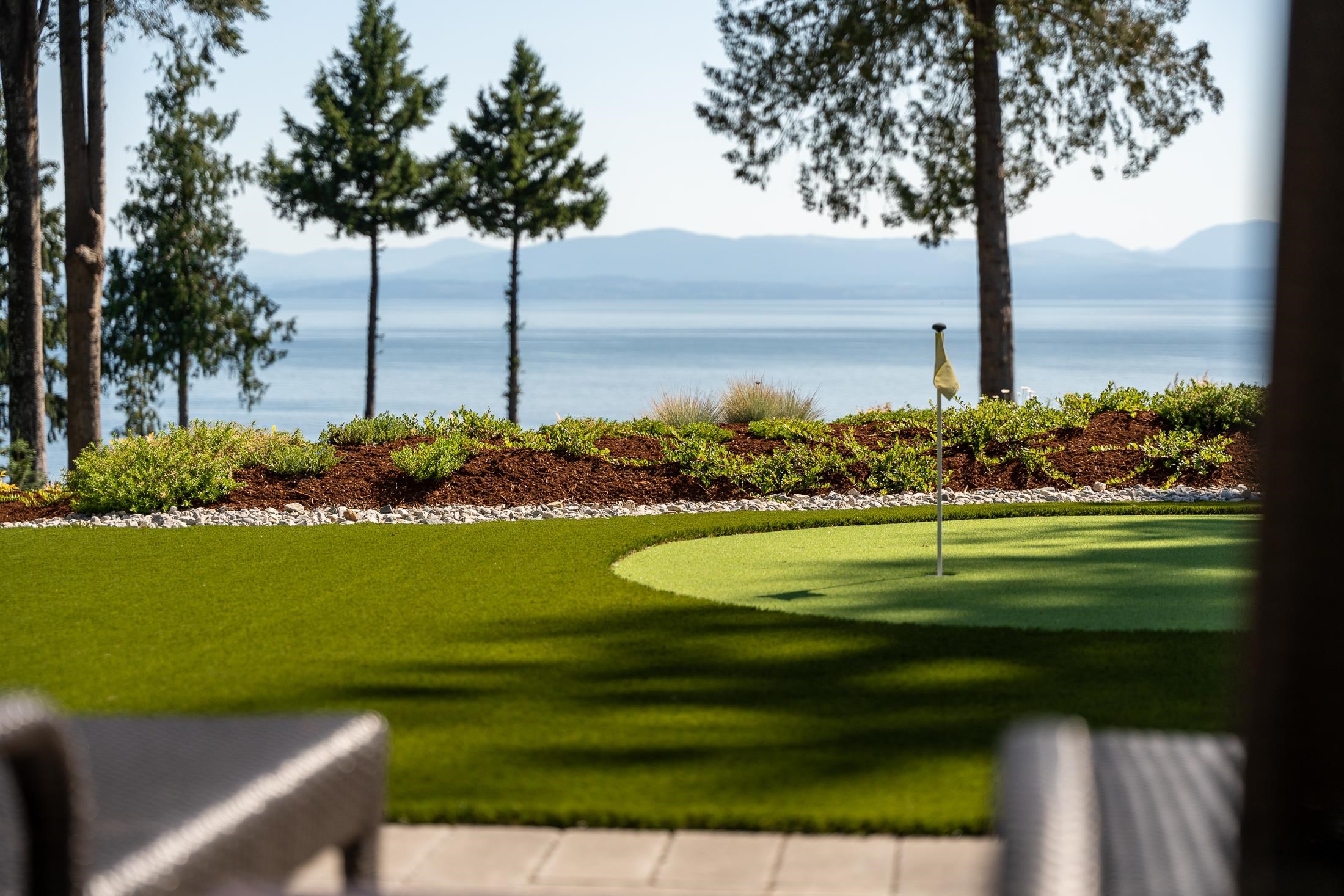 Imagine waking to ocean views, step into your gourmet kitchen and grab an espresso from your coffee bar, head to your 3 hole putting green to practice your short game. The sun is warm, you get a drink from the outdoor kitchen fridge and enjoy views of the Salish Sea from your timber frame covered patio, w/ heaters and fans, it's a space you'll love year round. This 3-4 bed with primary on the main is perfect to raise a family and enjoy for decades to come. Hardwood floor, interlock driveway, 3 car garage, heat pump, AC, RV parking, workshop, hot tub, remote gate, mature landscaping, metal roof. Second home on property is a brand new modular with views, its own yard and all the updates. This luxury home has been meticulously crafted and ready for you to live your dreams!