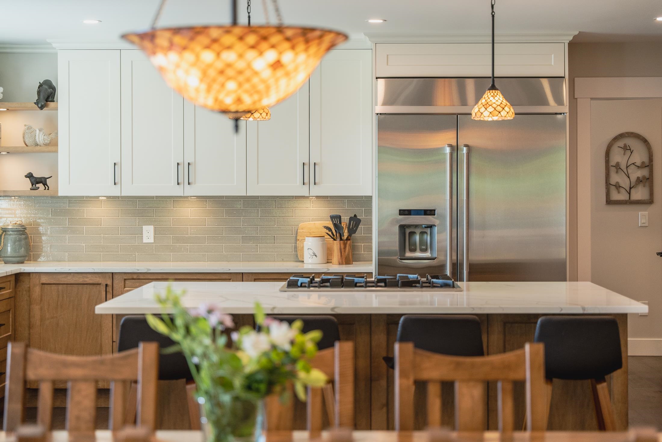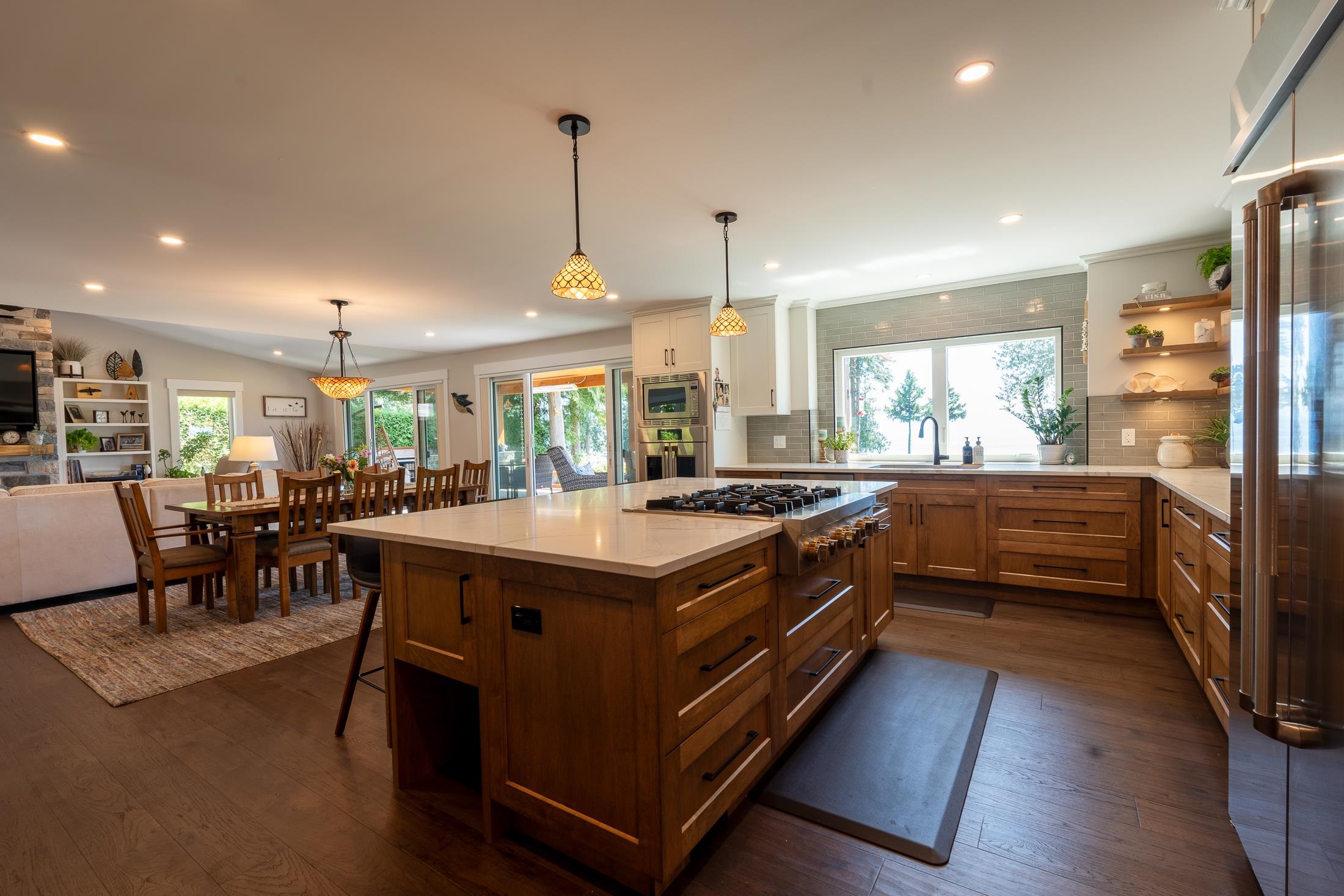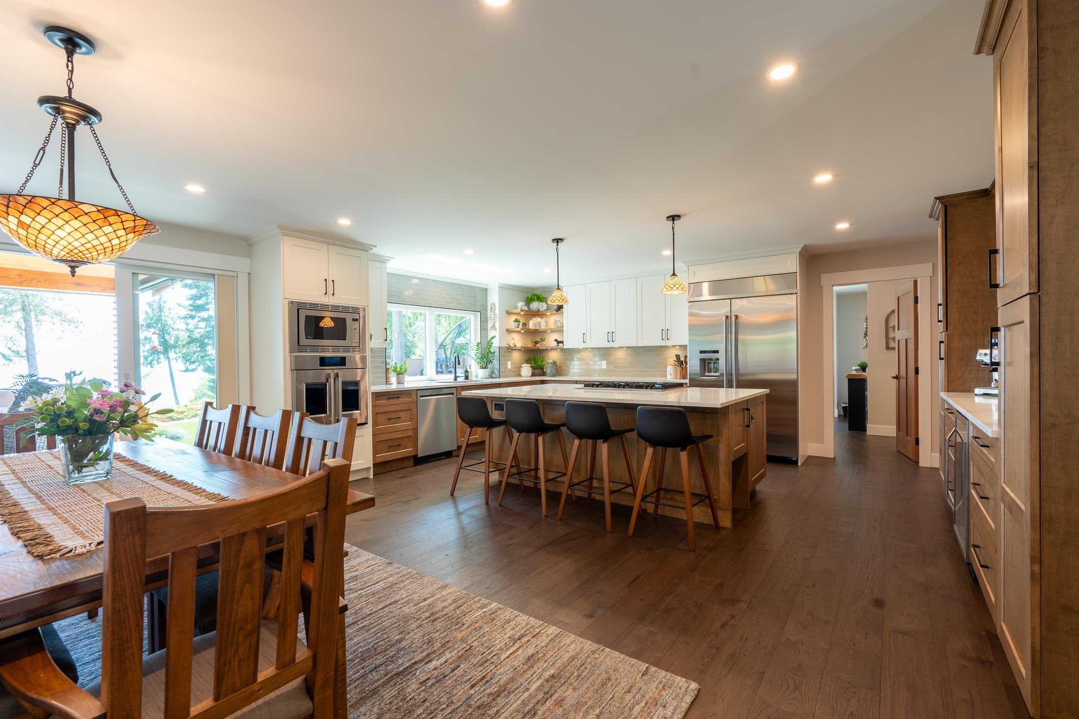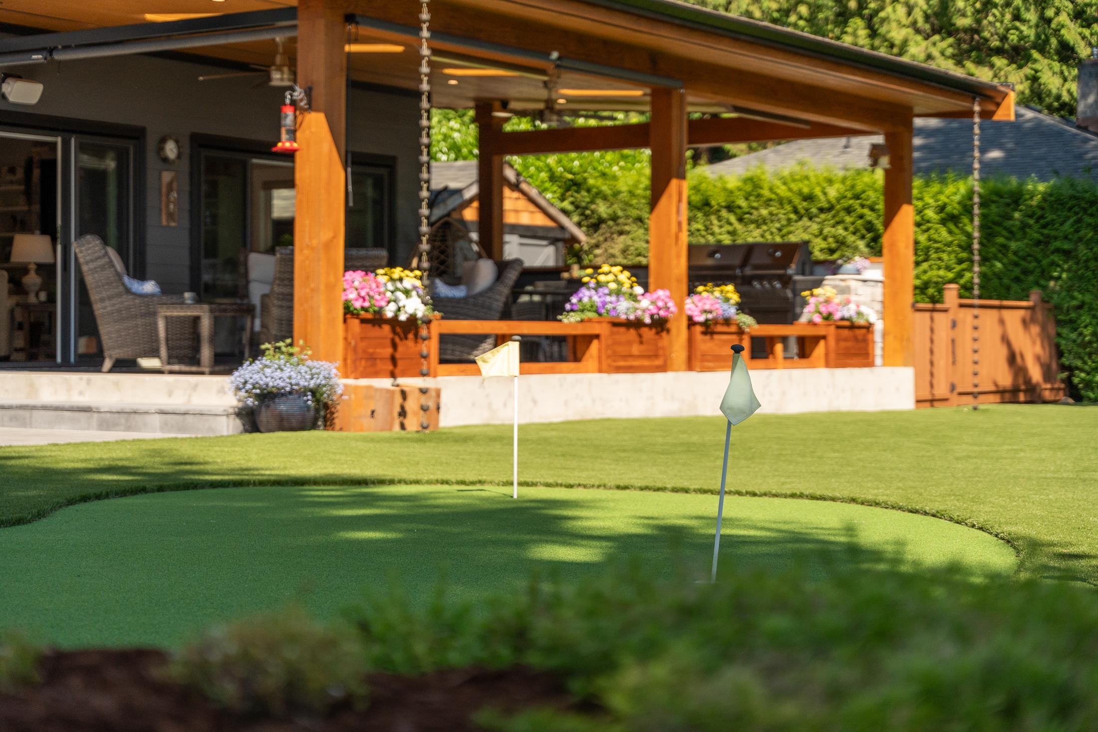 Imagine waking to ocean views, step into your gourmet kitchen and grab an espresso from your coffee bar, head to your 3 hole putting green to practice your short game. The sun is warm, you get a drink from the outdoor kitchen fridge and enjoy views of the Salish Sea from your timber frame covered patio, w/ heaters and fans, it's a space you'll love year round. This 3-4 bed with primary on the main is perfect to raise a family and enjoy for decades to come. Hardwood floor, interlock driveway, 3 car garage, heat pump, AC, RV parking, workshop, hot tub, remote gate, mature landscaping, metal roof. Second home on property is a brand new modular with views, its own yard and all the updates. This luxury home has been meticulously crafted and ready for you to live your dreams!