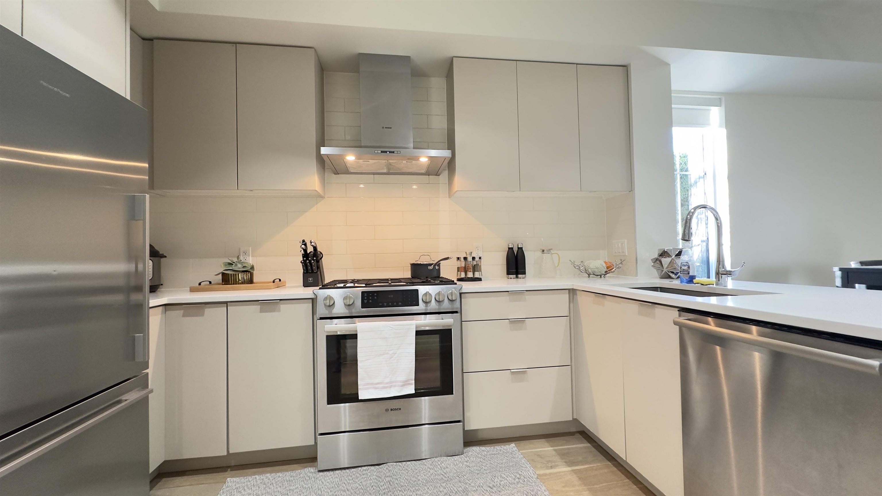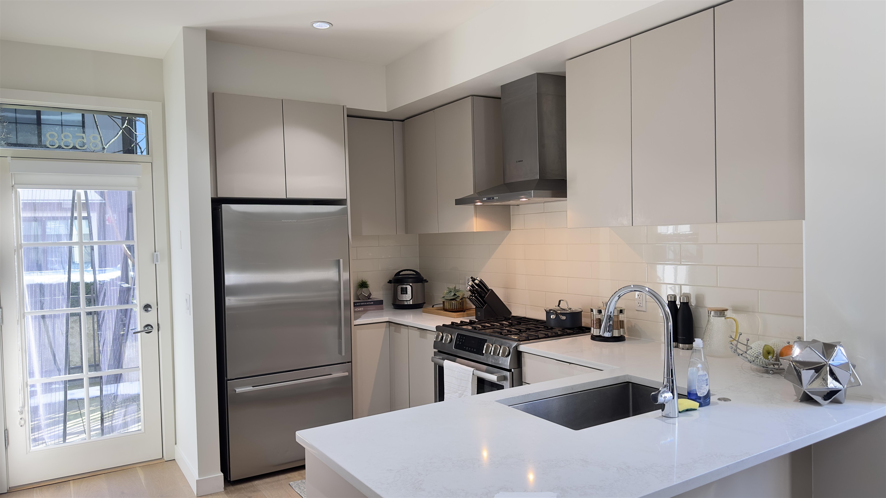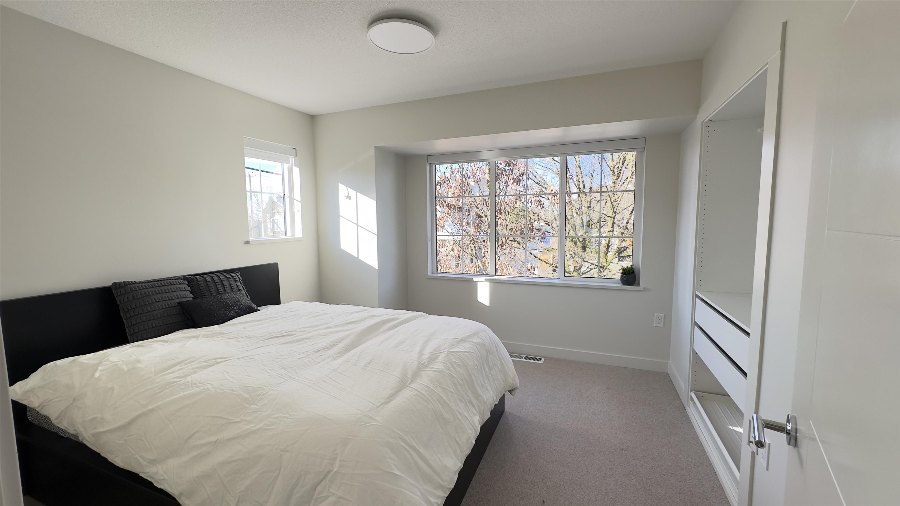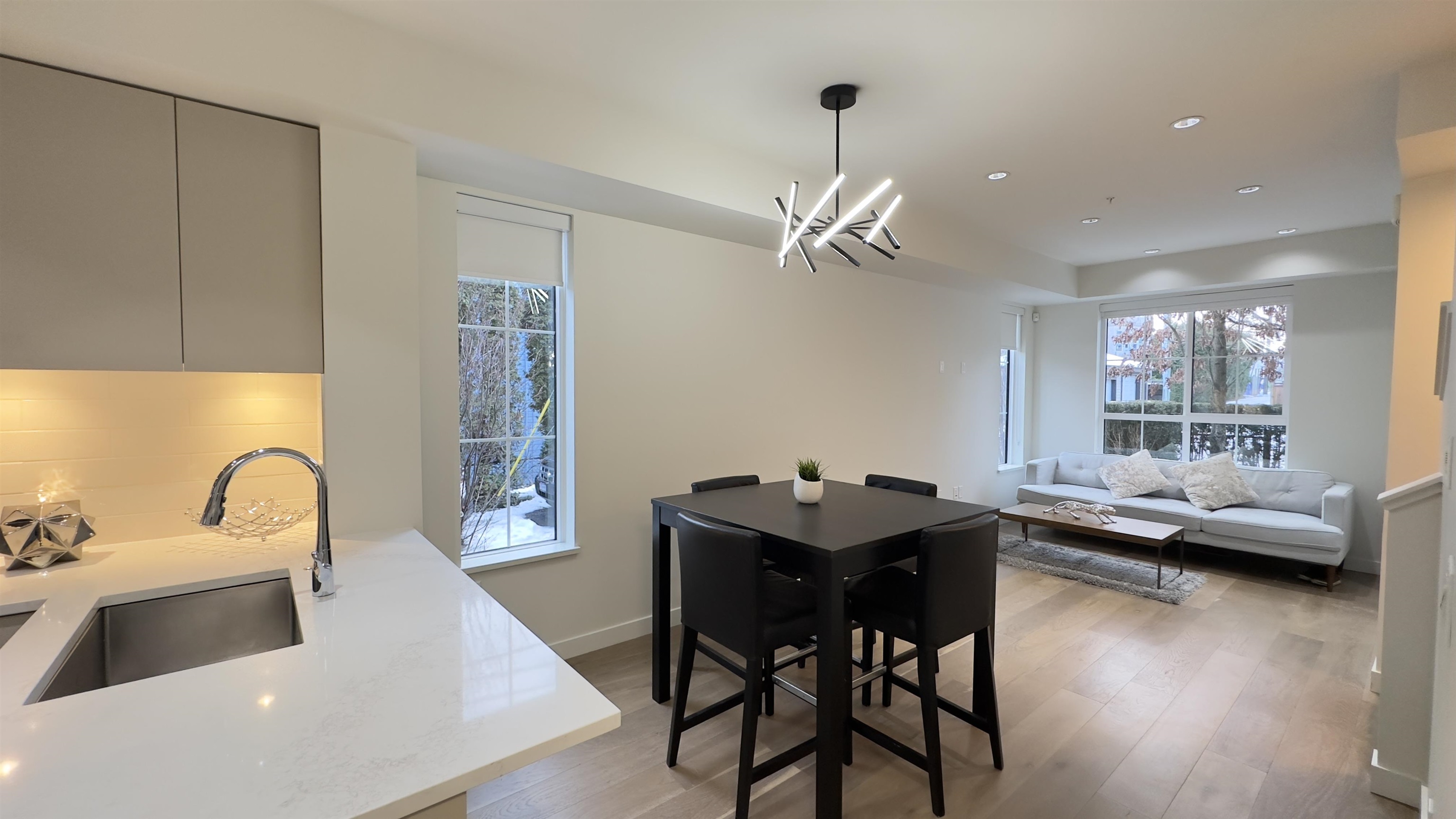 An outstanding, modern corner townhome on a peaceful, tree-lined street in Westside. Built with quality craftsmanship by Alabaster Homes, this 3-bedroom + den residence boasts a spacious design with 9’ ceilings on the main floor. A spacious primary bedroom with its own balcony, and a sleek open-concept kitchen equipped with premium Bosch appliances. Enjoy the comfort of A/C and the 2 parking stalls, 1 of which is equipped with an EV charging outlet. Just minutes from Churchill High School with its renowned IB program, as well as convenient access to transportation, shopping and foods.