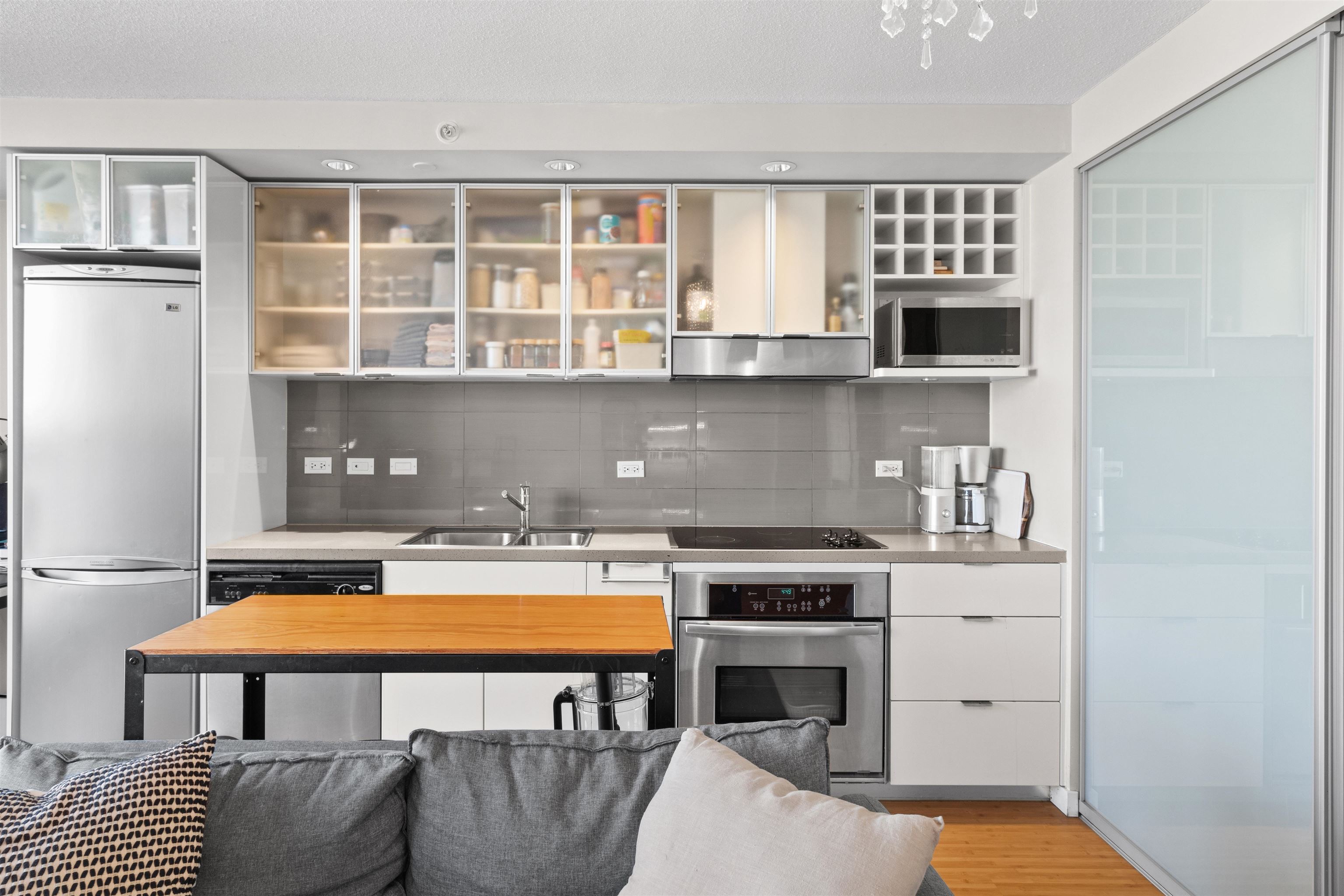 Open concept living on the top floor, at an incredible price, and just a 2min walk from the heart of Gastown. You will love this floorplan, so versatile - big open living space that makes a great WFH office, wonderful for hosting friends, or even push that sofa aside and you have a dance or artist studio for yourself. Gym with squat rack, and a small workshop area that you can use for DIY projects. In suite laundry, parking available to rent within the building directly from developer. Quality build from a reputable developer - Concord Pacific. Nearby are all the amazing coffee shops, restaurants, retail and night life of Gastown. Open House Saturday March 1st, 2-4pm.