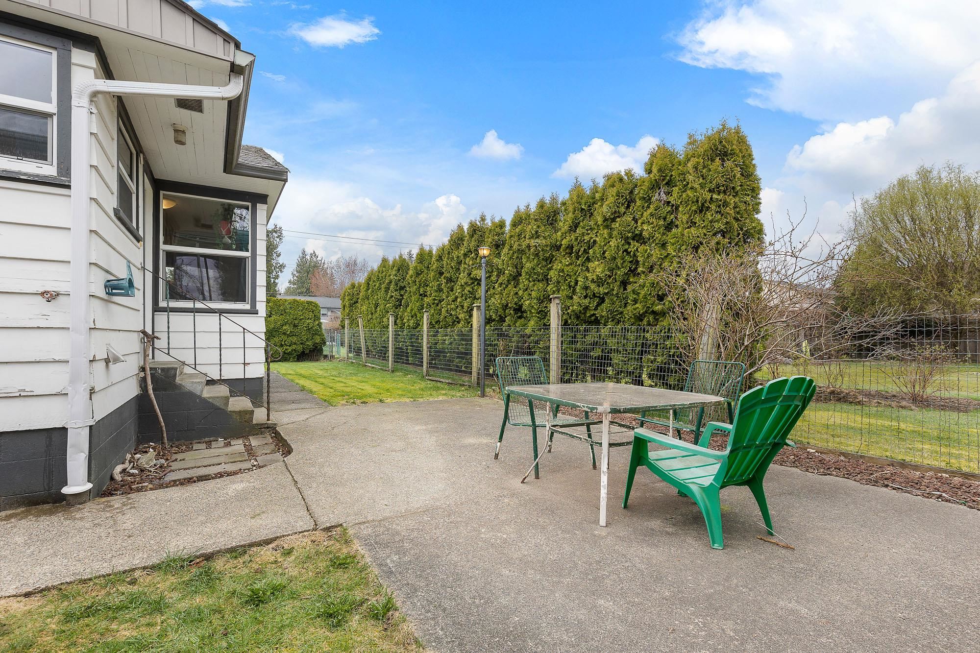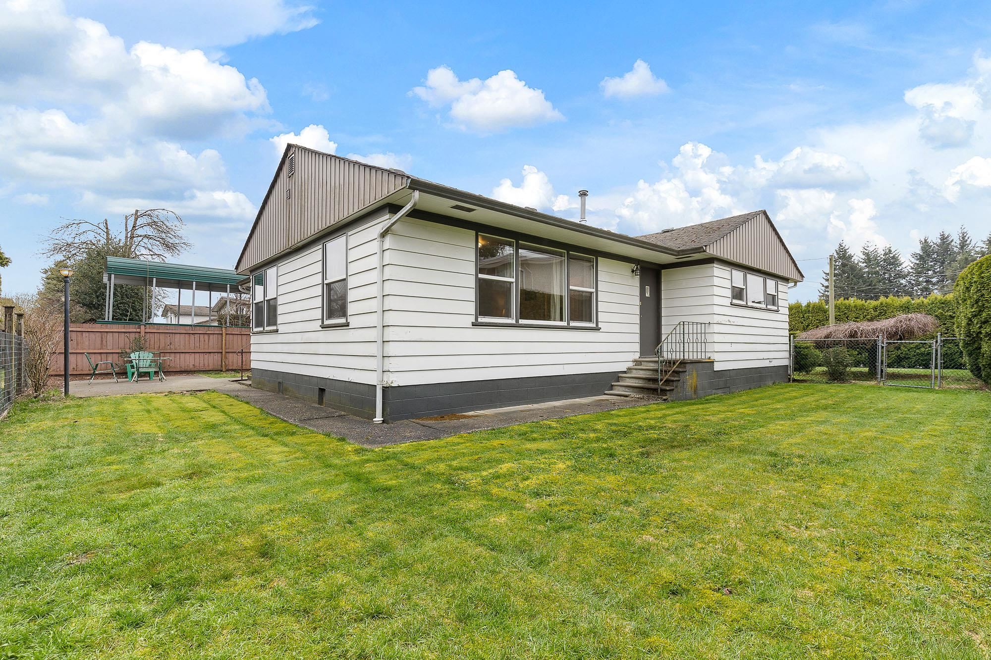 RANCHER on LARGE PRIVATE lot (70' FRONTAGE!) on QUIET DEAD END street! GREAT HOLDING VBALUE & VERY CLEAN HOUSE! This remarkably kept home & property have under gone all major updates including ELECTRICAL, ROOF, N/G FURNCE, HW TANK, VINYL WINDOWS & more! Step inside to Hardwood flooring & CLEAN character with 3 Good size bedrooms + 1 spacious bathroom. Kitchen has Newer SS appliances with a nice flow into BRIGHT dining room with lots of windows & NATURAL LIGHT gazing towards Mt Cheam beyond. This is a perfect home for first time purchasers or future development potential with new density legislation + 70' of FRONTAGE & all MUNICIPAL SERVICES connected! Centrally situated minutes from HWY 1, seconds to amenities, schools and beautiful LITTLE MOUNTAIN outdoor recreation. Call 604-316-9807